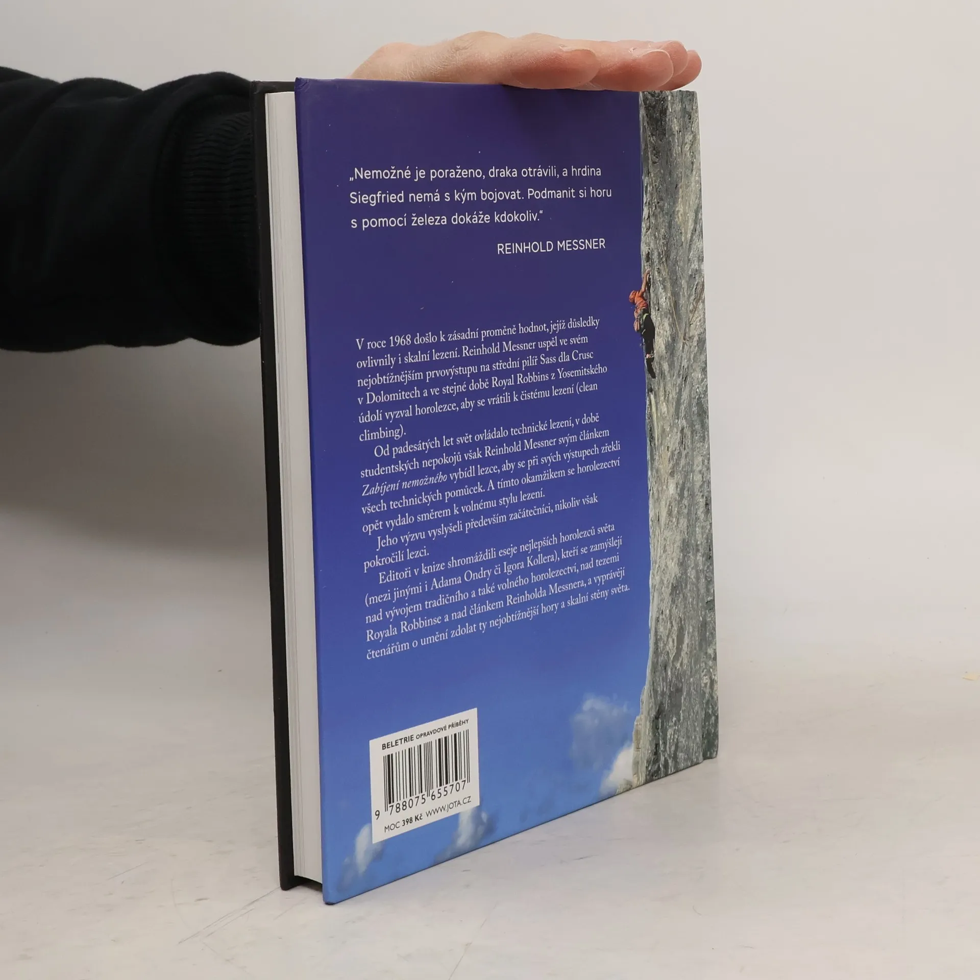 „Podmanit si horu s pomocí železa dokáže kdokoliv.“ Reinhold Messner. Nejlepší lezci světa diskutují o hranicích alpinismu. V roce 1968 došlo k zásadní proměně hodnot, jejíž důsledky ovlivnily i skalní alpinismus, Reinhold Messner uspěl ve svém nejobtížnějším prvovýstupu na střední pilíř Sasso dla Crusc v Dolomitech a ve stejné době Royal Robbins z Yosemite Valley vyzval k návratu k čistému horolezectví (clean climbing). Od padesátých let svět ovládalo horolezectví umělé, v roce studentských nepokojů však Reinhold Messner svým článkem Zabíjení nemožného vybídl lezce, aby se zřekli při svých výstupech všech technických pomůcek. A tímto okamžikem se horolezectví opět vydalo směrem k volnému stylu lezení. Jeho výzvu však vyslyšeli především začátečníci, nikoliv pokročilí lezci. Editoři v knize shromáždili eseje nejlepších horolezců světa (mezi jinými i Adama Ondry či Igora Kollera), kteří se zamýšlejí nad vývojem tradičního a také volného horolezectví, nad tezemi Royala Robbinsona a nad článkem Reinholda Messnera, a vyprávějí čtenářům o umění zdolat ty nejobtížnější hory a skalnaté stěny světa.