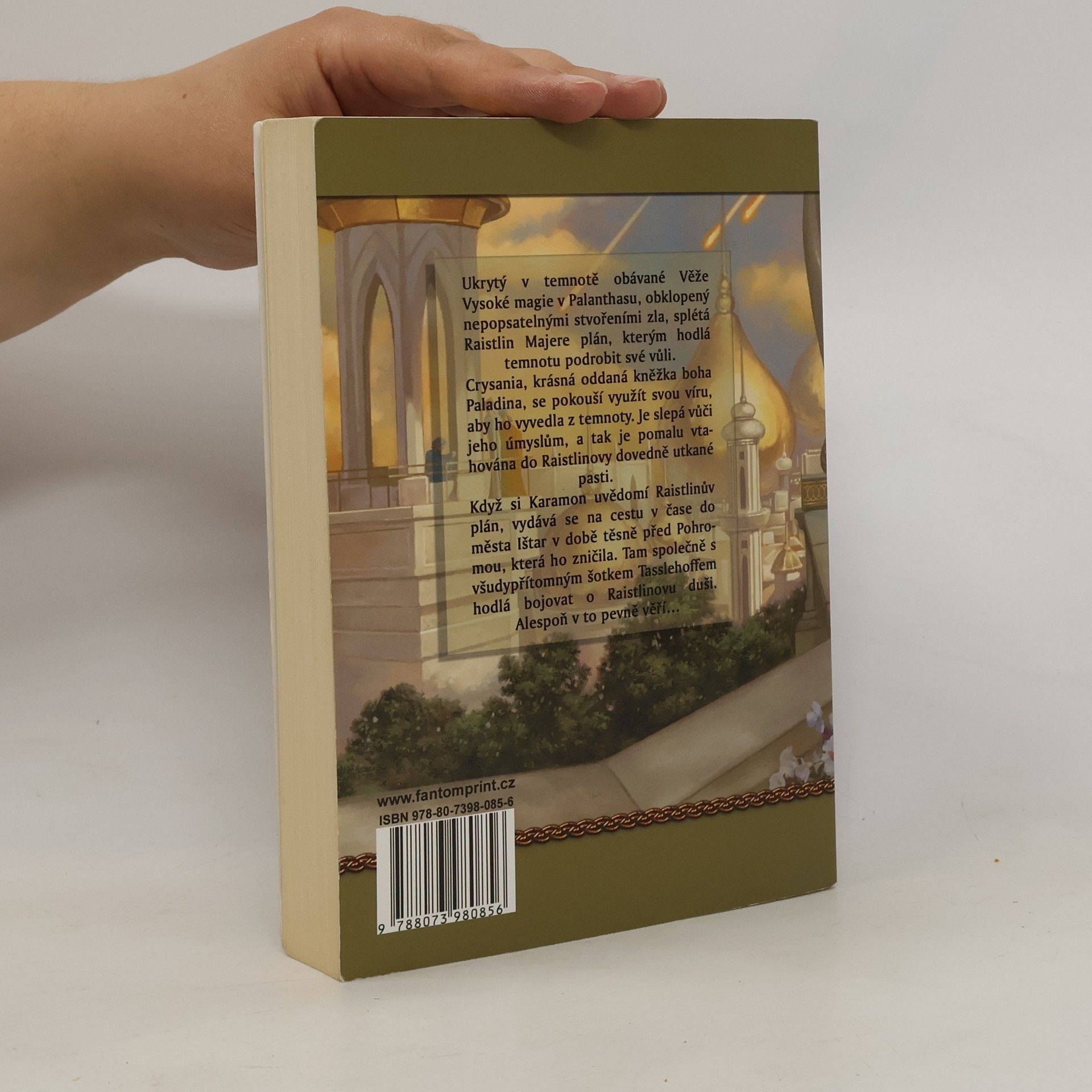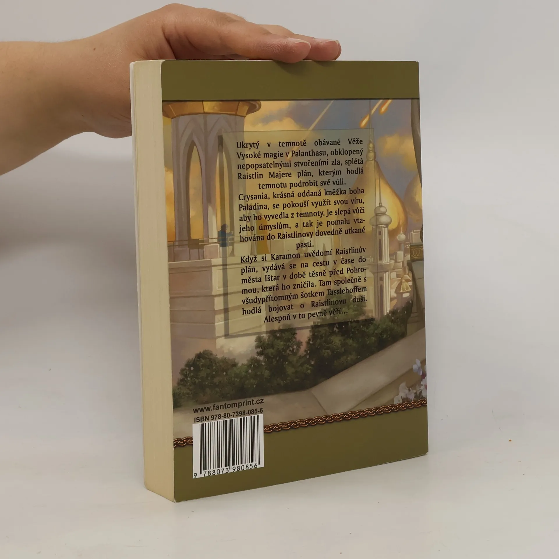 1. díl série: DragonLance – Legendy (celkově 4. kniha) Ukrytý v temnotě obávané Věže Vysoké magie v Palanthasu, obklopený nepopsatelnými stvořeními zla, splétá Raistlin Majere plán, kterým hodlá temnotu podrobit své vůli. Crysania, krásná oddaná kněžka boha Paladina, se pokouší využít svou víru, aby ho z té temnoty vyvedla. Je slepá vůči jeho úmyslům, a tak je pomalu vtahována do Raislinovy úhledně utkané pasti. Když si Karamon uvědomí Raistlinův plán, vydává se na cestu v čase do města Ištar v době těsně před Pohromou, která ho zničila. Tam společně s všudypřítomným šotkem Tasslehoffem hodlá bojovat o Raistlinovu duši. Alespoň v to pevně věří…