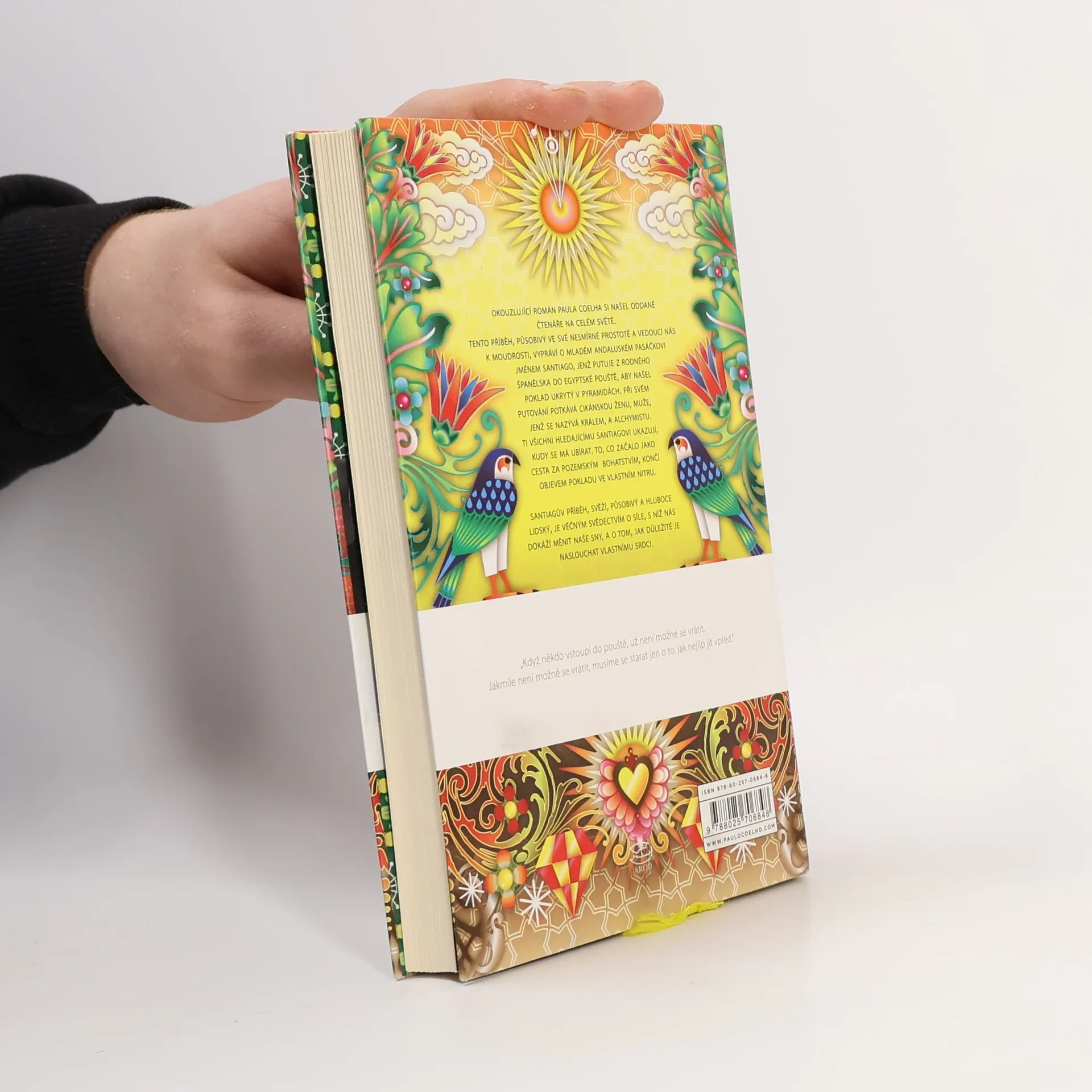 Román Alchymista – největší brazilský bestseller všech dob – byl dosud přeložen do 34 jazyků a prodalo se ho na 10 milionů výtisků. Takřka pohádkové vyprávění o cestě španělského pastýře za zakopaným pokladem, vycházející z příběhu o splněném snu ze sbírky Tisíc a jedna noc, je zároveň výzvou k naplnění vlastního osudu i poznáním posvátnosti světa, v němž žijeme. Na cestě za oním dvojím pokladem, plné zkoušek a důležitých setkání, je třeba dbát všech znamení a s neustálou trpělivostí a odvahou (jako alchymista sledující proměnu obyčejného kovu ve zlato) přetvořit samu svou osobnost.