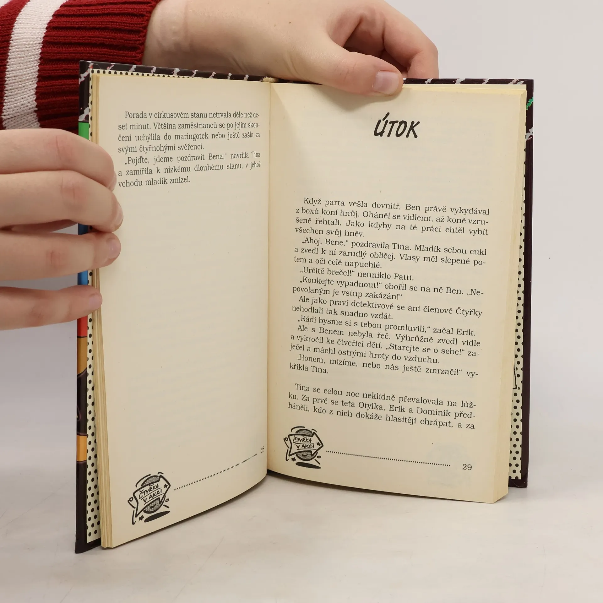 Nový případ čtveřice neohrožených detektivů nás zavede do cirkusového šapitó. V cirkuse Fantastico vládne strach. Kdosi pustí z klece tygra, těžce zraní hrocha, otráví tuleně, a co hůř, i artisté a akrobaté jsou v ohrožení života. Kdykoli se stane nějaké neštěstí, je nablízku záhadný Černý rytíř, a vždy na místě činu zanechá lístek se vzkazem: Přijdu zas. Naši čtyři známí ale vše perfektně vyřeší.