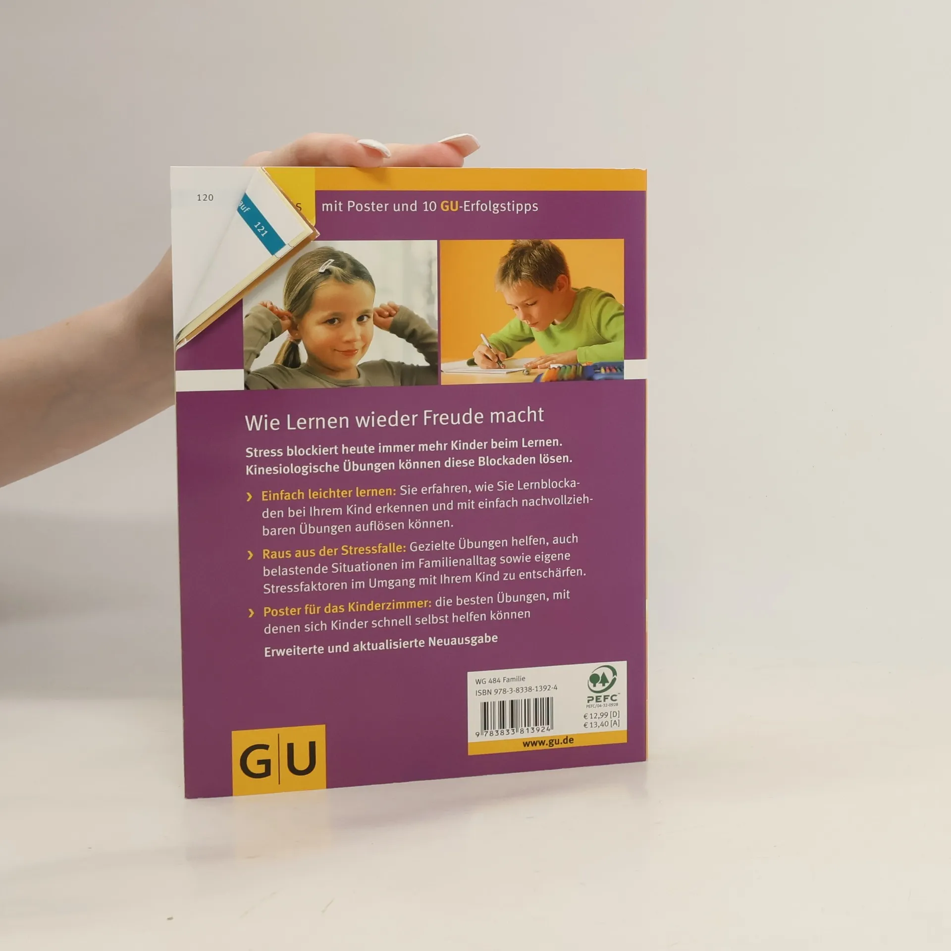 Die Kinesiologie (Lehre von der Bewegung) geht davon aus, dass Bewegung, körperlich-seelisches Wohlbefin-den sowie die Denkfähigkeit eng zusammenhängen. Kinesiologie für Kinder, der Bestseller zu diesem Thema, zeigt Eltern, Lehrern und Erziehern, wie sie Lern- und Denkblockaden bei Kindern erkennen und mit gezielten kinesiologischen Übungen auflösen können: So macht das Lernen wieder Freude! Aber auch belastende Situ-ationen im Familienalltag können Eltern mit diesen Übungen spielerisch entschärfen. Viele Mütter und Väter sind beim Lernen mit ihrem Kind oft angespannt - hier finden Sie konkrete Übungen, mit denen Sie eigene innere Blockaden auflösen und so Ihr Kind wieder erfolgreich unterstützen können. Mit Poster für das Kinderzimmer: die besten Übungen auf einen Blick.