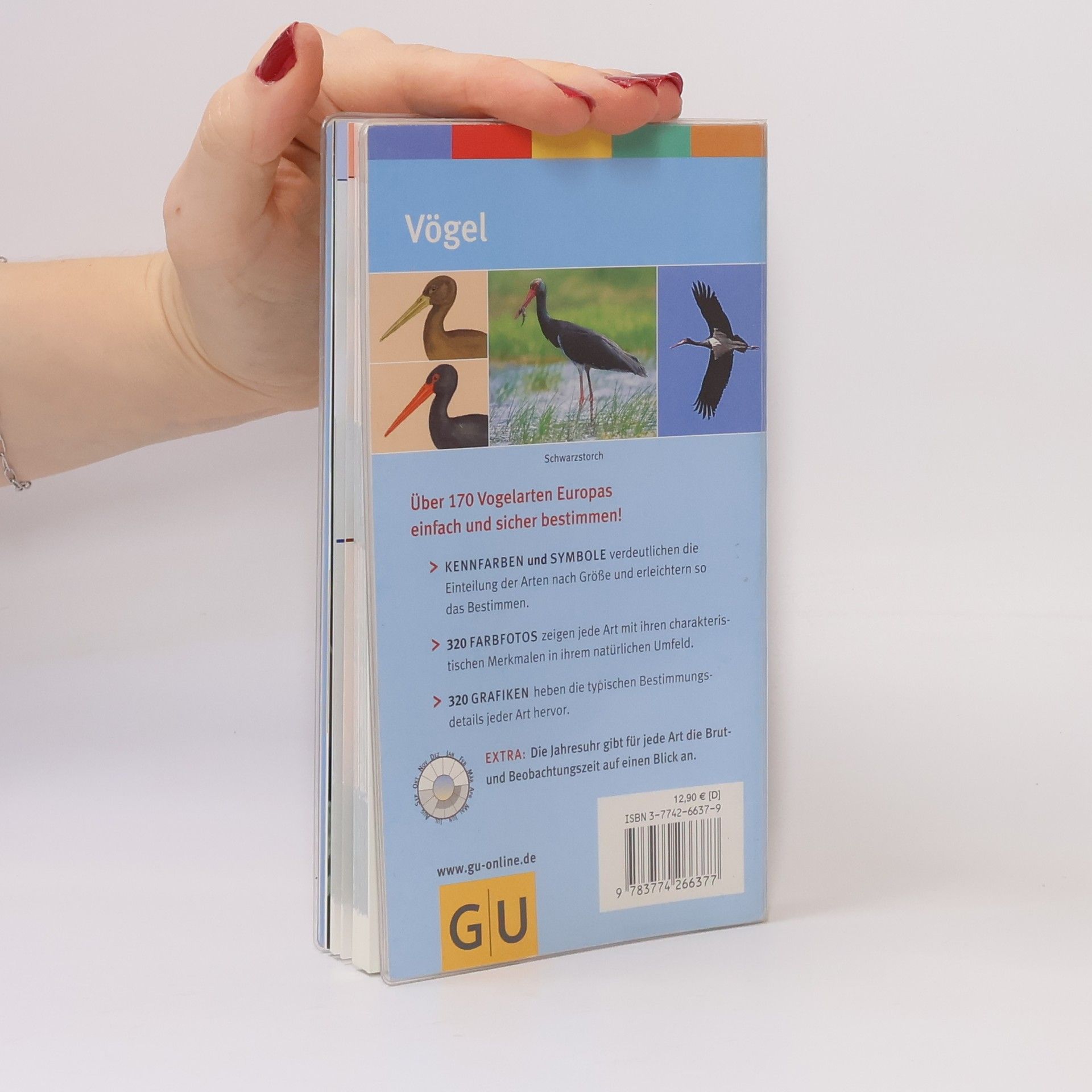 Der neue Naturführer „Vögel“ macht das Bestimmen von über 170 europäischen Vogelarten noch einfacher und sicherer durch: - 320 Grafiken, die die typischen Bestimmungsdetails jeder Art deutlicher als Fotos zeigen; - 320 Farbfotos, die jede Art in ihrem natürlichen Umfeld zeigen und jeweils ein charakteristisches Merkmal abbilden; - Kennfarben-Code mit Symbolen, der die Suche nach Vögeln in fünf Größenklassen ermöglicht; - Extra: Mithilfe der Jahresuhr können Sie auf einen Blick feststellen, wann Sie die Vögel beobachten können und wann Sie wegen der Brutzeit zurückhaltender sein sollten.