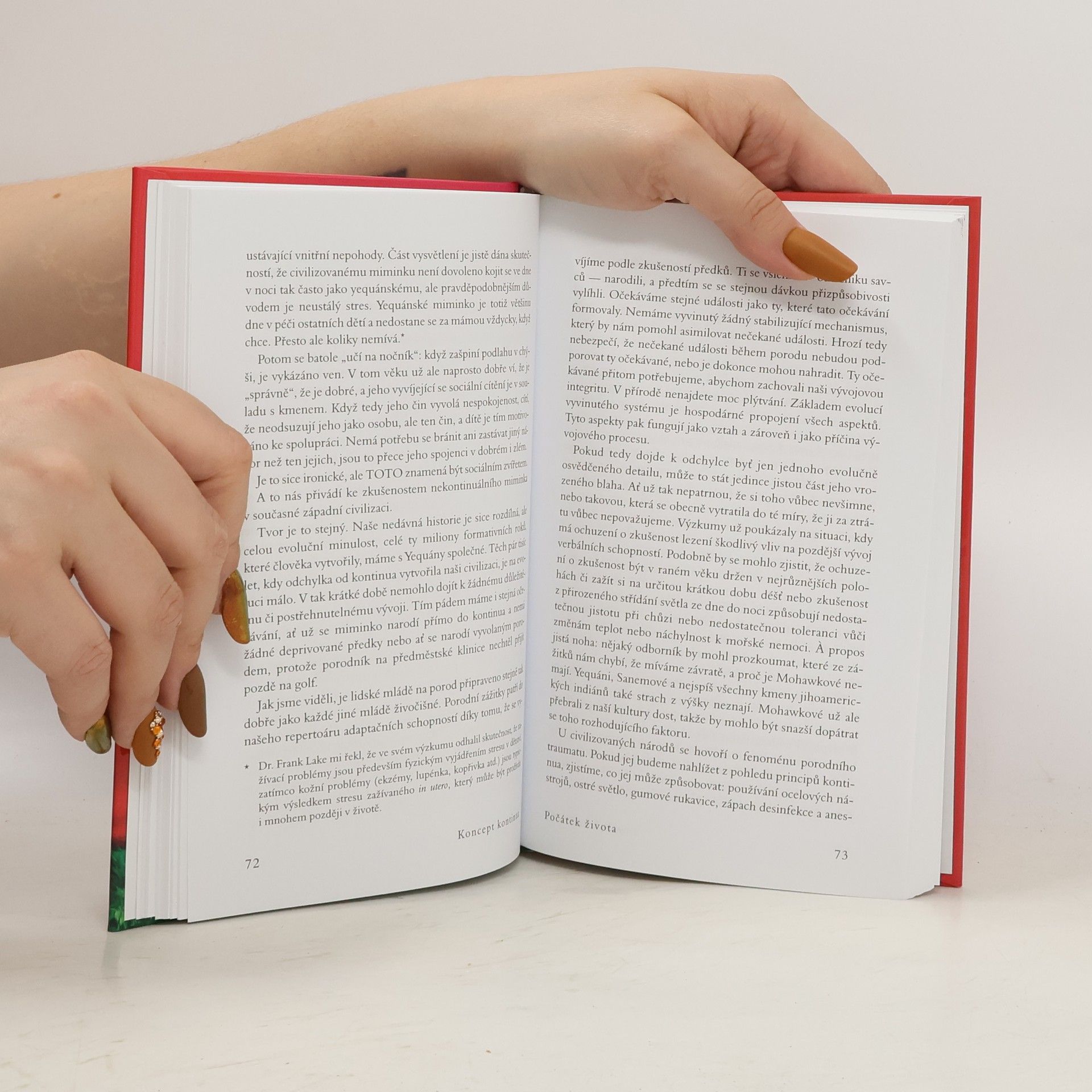 Autorka ve své světově proslulé knize odhaluje, proč jsou lidé žijící na Západě tak nespokojení a často nešťastní. Po několika expedicích mezi jihoamerické indiány rozpoznala, že tyto pocity mohou pramenit z neuspokojených potřeb miminek a malých dětí, které se na Západě snažíme vychovávat podle všemožných teorií, jen ne podle vlastní intuice a evolucí vytvořených jednoduchých pravidel a očekávání. V knize, kterou napsala již v r. 1975, velmi jasně a přesvědčivě vysvětluje, jak je potřeba zacházet s našimi nejmenšími, aby z nich vyrostly spokojené a samostatné děti a posléze dospělí lidé, kteří si nepotřebují „léčit“ své deprivace z dětství všemi možnými způsoby, počínaje drogovou závislostí a konče nezdravými partnerskými vztahy, a jsou schopni vést plnohodnotný život, jenž nebude naplněn věčnou nespokojeností a hledáním „něčeho“, co nalézt nelze. Našemu vlastnímu životu tak dává úplně nový rozměr a pomáhá lidem najít jednoduchou, a přitom málo předvídatelnou odpověď na často kladenou otázku – proč nejsme šťastní.