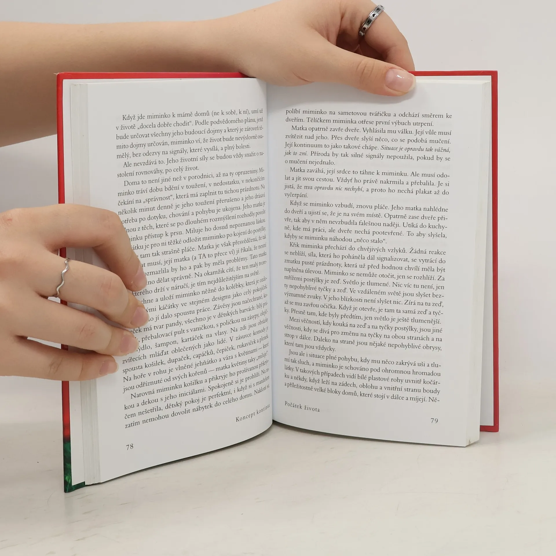 Autorka ve své světově proslulé knize odhaluje, proč jsou lidé žijící na Západě tak nespokojení a často nešťastní. Po několika expedicích mezi jihoamerické indiány rozpoznala, že tyto pocity mohou pramenit z neuspokojených potřeb miminek a malých dětí, které se na Západě snažíme vychovávat podle všemožných teorií, jen ne podle vlastní intuice a evolucí vytvořených jednoduchých pravidel a očekávání. V knize, kterou napsala již v r. 1975, velmi jasně a přesvědčivě vysvětluje, jak je potřeba zacházet s našimi nejmenšími, aby z nich vyrostly spokojené a samostatné děti a posléze dospělí lidé, kteří si nepotřebují „léčit“ své deprivace z dětství všemi možnými způsoby, počínaje drogovou závislostí a konče nezdravými partnerskými vztahy, a jsou schopni vést plnohodnotný život, jenž nebude naplněn věčnou nespokojeností a hledáním „něčeho“, co nalézt nelze. Našemu vlastnímu životu tak dává úplně nový rozměr a pomáhá lidem najít jednoduchou, a přitom málo předvídatelnou odpověď na často kladenou otázku – proč nejsme šťastní.