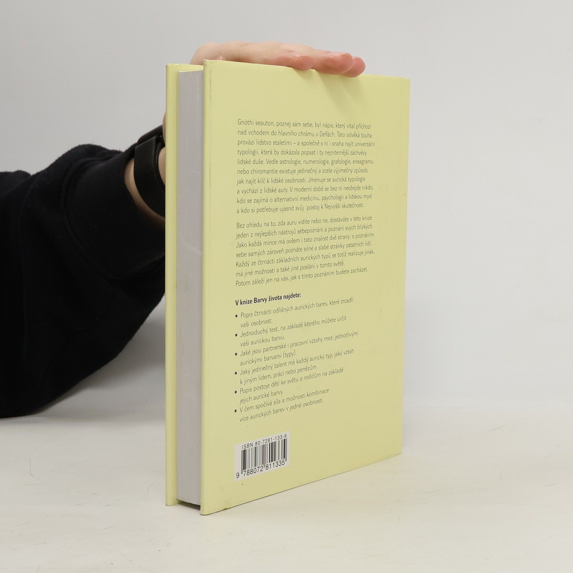 Legendární kniha přední americké psychoterapeutky popisuje aurické typy na základě speciálního psychologického testu, který umožňuje poznat svou auru i bez jejího bezprostředního vnímání. Ve čtrnácti základních skupinách přibližuje tajemství kombinací aurických barev a jejich vzájemné působení v mezilidských a pracovních vztazích. Obsahuje vynikající test, díky němuž každý může určit barvu své aury a aury svých blízkých. Autorka, známá esoterická učitelka a konzultantka, pracuje na základě znalostí aury a pořádá semináře pro odborníky v oblasti psychologie, vzdělávání a zdraví. Její výzkumy byly uznány Mezinárodní asociací pro nové vědy. V knize najdete popis čtrnácti aurických barev, jednoduchý test pro určení vaší aurické barvy, analýzu partnerských a pracovních vztahů mezi různými aurickými typy, jedinečné talenty jednotlivých typů a jejich vztah k ostatním lidem, práci a penězům. Dále se dozvíte o postoji dětí k světu a rodičům na základě jejich aurické barvy a o síle kombinace více aurických barev v jedné osobnosti.