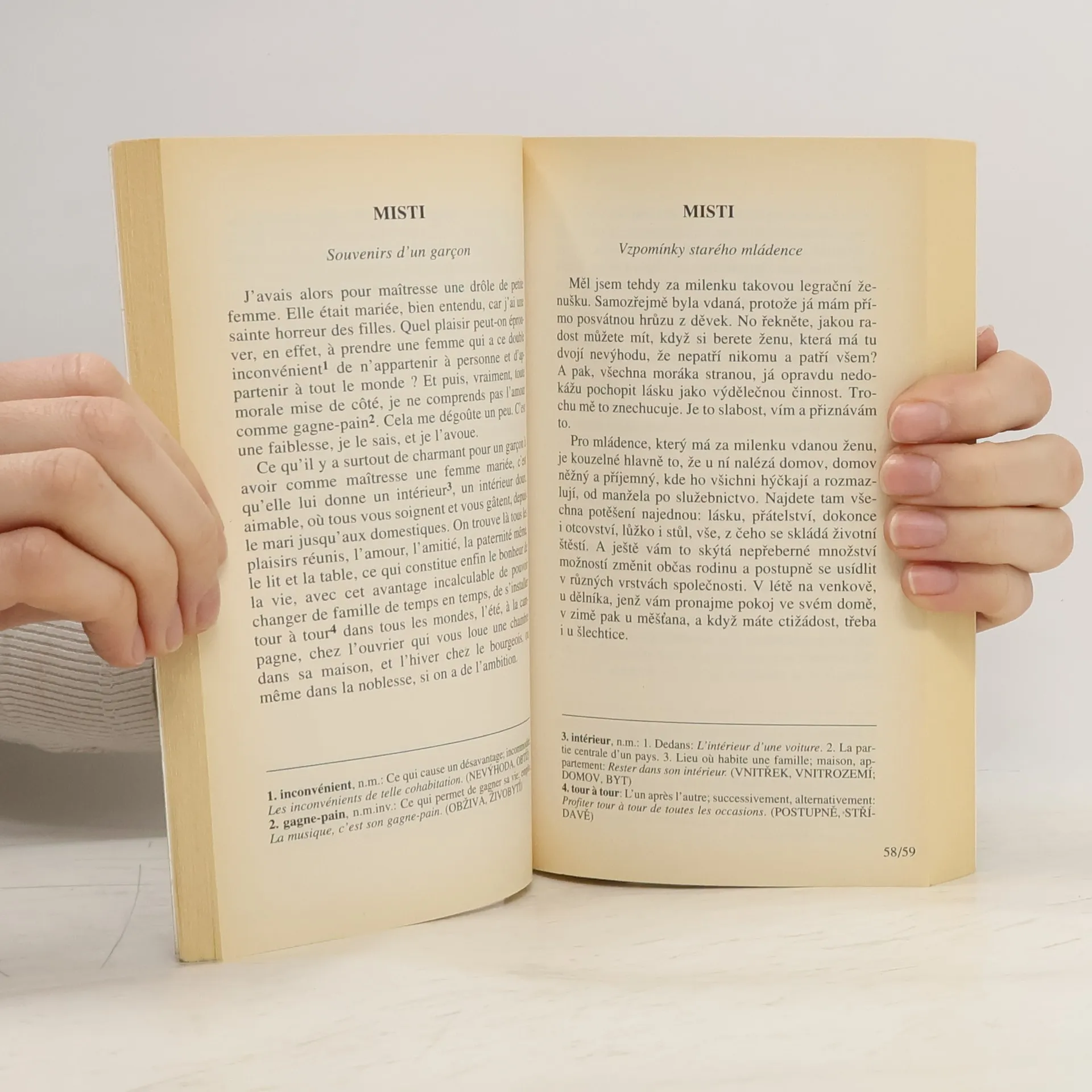 Výbor z bohaté povídkové tvorby slavného francouzského prozaika Guy de Maupassanta. Dvojjazyčná, francouzsko-česká verze, nezkrácený text. Stejně jako ve své románové tvorbě i v povídkách akcentuje autor, který usiloval o to, aby jeho díla působila jako "kurzy lidské existence vyrvané ze skutečnosti", erotické vztahy, pojímané v duchu naturalismu.