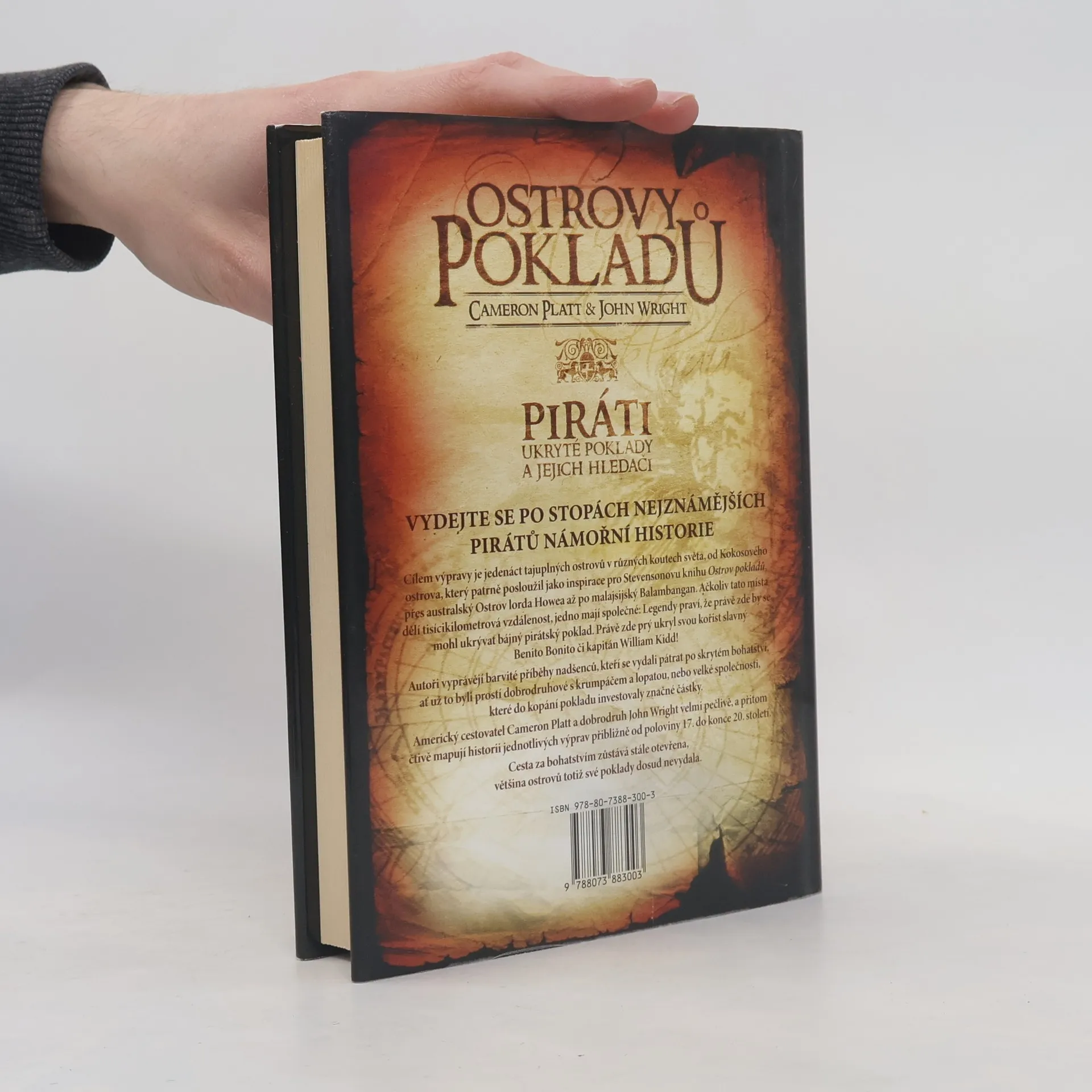 Piráti, ukryté poklady a jejich hledači. Vydejte se po stopách nejznámějších pirátů námořní historie. Cílem výpravy je jedenáct tajuplných ostrovů v různých koutech světa, od Kokosového ostrova, který patrně posloužil jako inspirace pro Stevensonovu knihu Ostrov pokladů, přes australský ostrov Lorda Howea až po malajsijský Balambangan. Ačkoliv tato místa dělí tisícikilometrová vzdálenost, jedno mají společné: Legendy praví, že právě zde by se mohl ukrývat bájný pirátský poklad. Právě zde prý snad ukryl svou kořist slavný Benito Bonito či kapitán William Kidd! Autoři vyprávějí barvité příběhy nadšenců, kteří se vydali pátrat po skrytém bohatství, ať už to byli prostí dobrodruhové s krumpáčem a lopatou, nebo velké společnosti, které do kopání pokladu investovaly značné částky. Americký cestovatel Cameron Platt a dobrodruh John Wright velmi pečlivě, a přitom čtivě mapují historii jednotlivých výprav přibližně od poloviny 17. do konce 20. století. Cesta za bohatstvím zůstává stále otevřena, většina ostrovů totiž své poklady dosud nevydala. Navštívíte místa, kde se mohou skrývat poklady nesmírné hodnoty, ukryté piráty v dávných dobách. Záleží jen na vás, zda doma, v pohodlném křesle nebo se autory necháte zlákat k dobrodružným výpravám v jejich stopách.