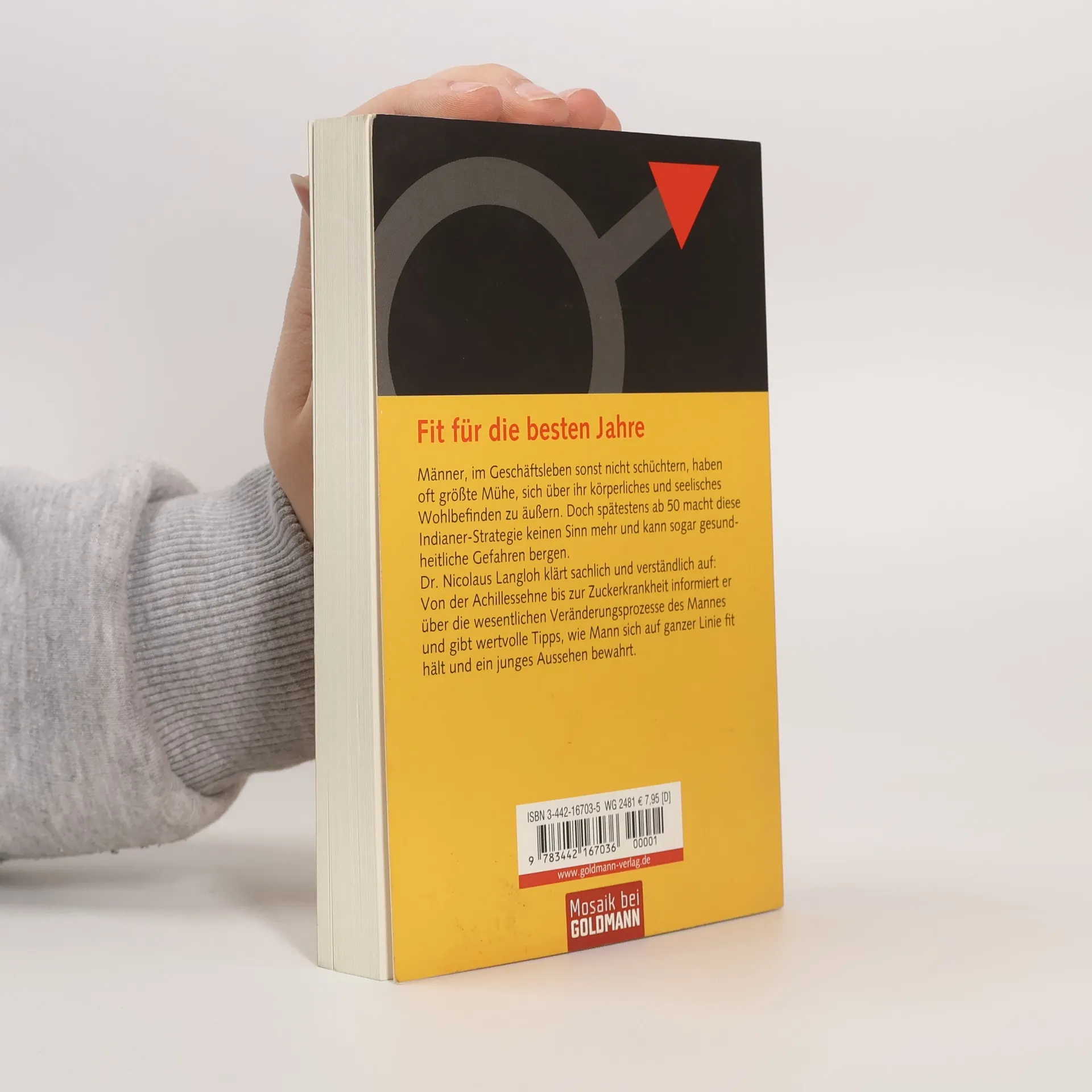 So bleiben Männer ab 50 länger fit!Männer, vor allem erfolgreiche Männer, die mit beiden Beinen im Leben stehen, können nur schwer zugeben, wenn mit ihnen etwas nicht stimmt - körperlich, wie seelisch. Doch spätestens ab 50 mache dieses Verhalten keinen Sinn mehr, meint Autor Dr. Nicolaus Langloh. Immerhin machen altersbedingte Krankheiten, wie Verschleiß, Diabetes oder psychische Leiden auch vor dem stärksten Mann nicht halt.Dr. Nicolaus Langloh klärt die 50-plus-Männer auf und verrät in seinem Buch Tipps und Tricks, wie Männer ab 50 länger fit, gesund und jung bleiben.Dr. Nicolaus Langloh, geboren 1938, ist ein US-amerikanischer Medizinier. Er studierte Medizin an der Columbia University in New York, Chirurgie an der Stanford University in Kalifornien und machte schließlich seinen Facharzt für Othopädie und Rheumatologie an den Mayo-Kliniken in Rochester. Außerdem arbeitete er als Oberarzt in München. Heute wohnt er in der Schweiz und arbeitet als Facharzt sowie als medizinischer Gutachter.