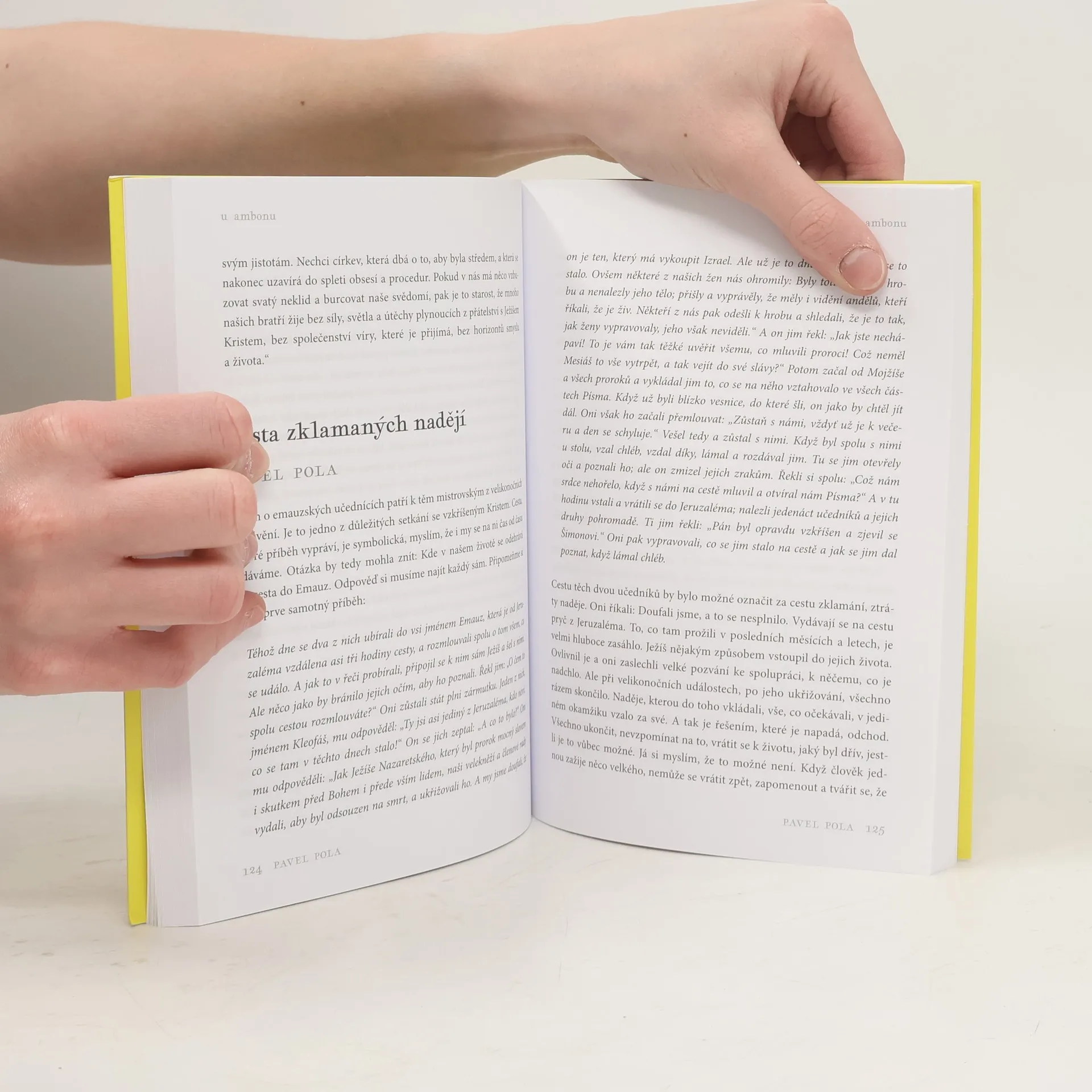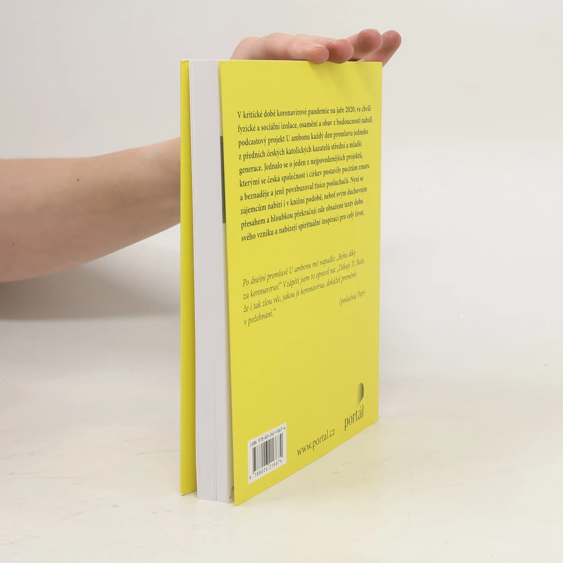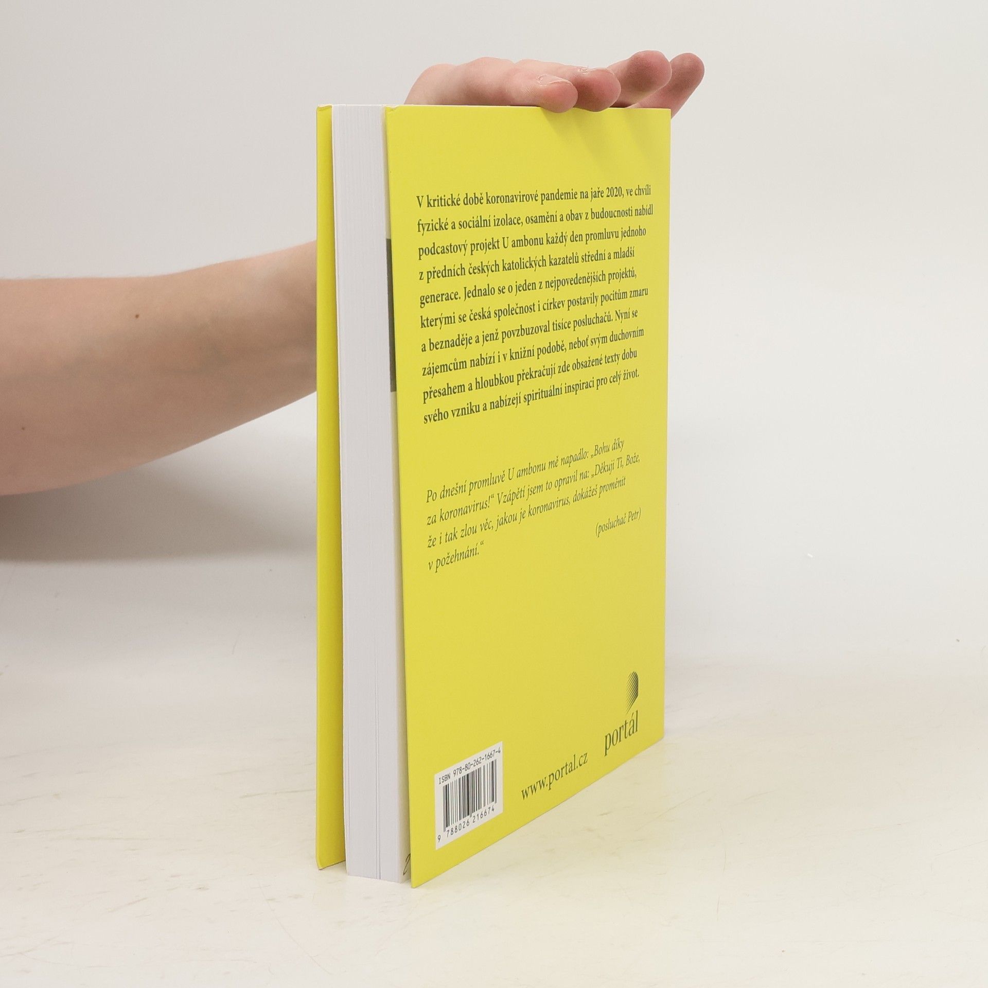 Od chvíle, kdy se kvůli koronavirové krizi uzavřely všechny kostely, odstartoval podcastový projekt U ambonu, v jehož rámci šest známých kněží každý den komentovalo evangelijní čtení. Vznikl tak unikátní soubor duchovních promluv, které nejen zajímavě vykládají text Písma a související témata, ale zachycují i nové přemýšlení o tom, jak v moderním světě žít křesťanství, jak se vyrovnávat s nečekanými a zásadními zvraty, které představovala například daná krize, jak vystoupit ze zabydleného prožívání víry směrem k větší dospělosti a autenticitě. Výběr z promluv z doby koronavirové je tak nejen dokumentem své doby, ale i výzvou k novému vykročení a dobře ukazuje, že každá krize je zároveň i šancí.