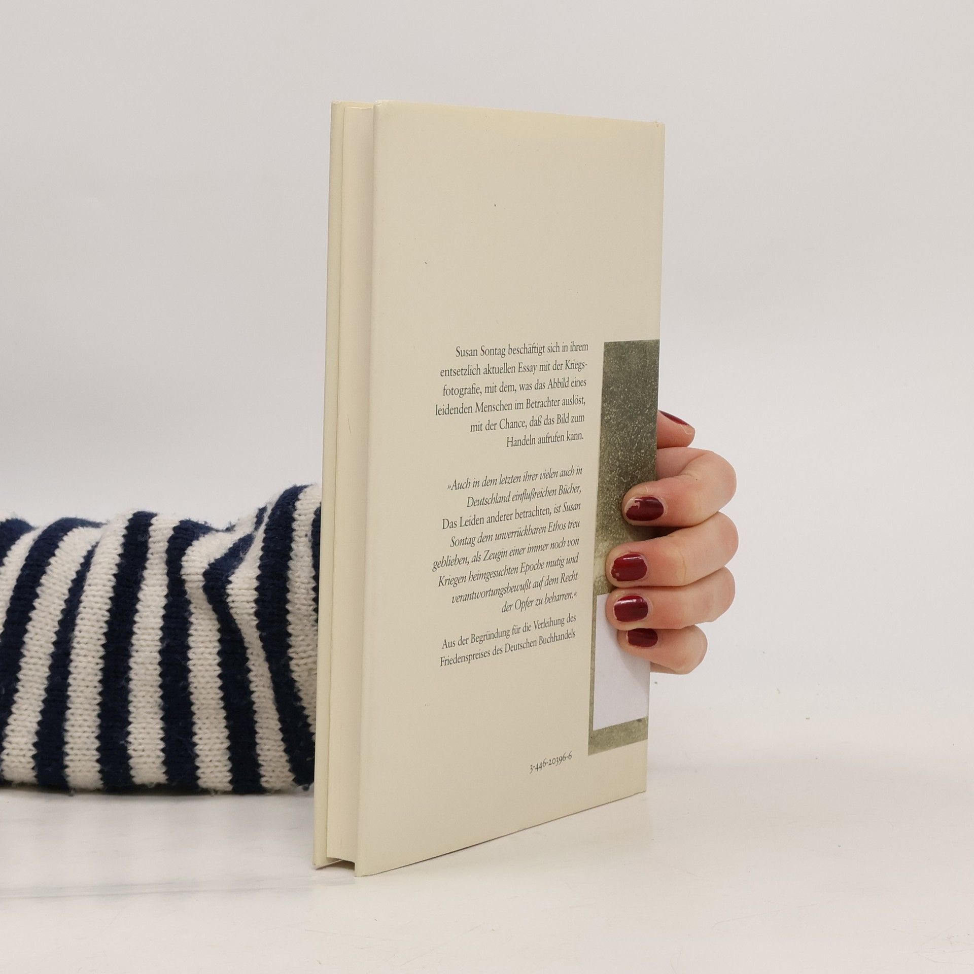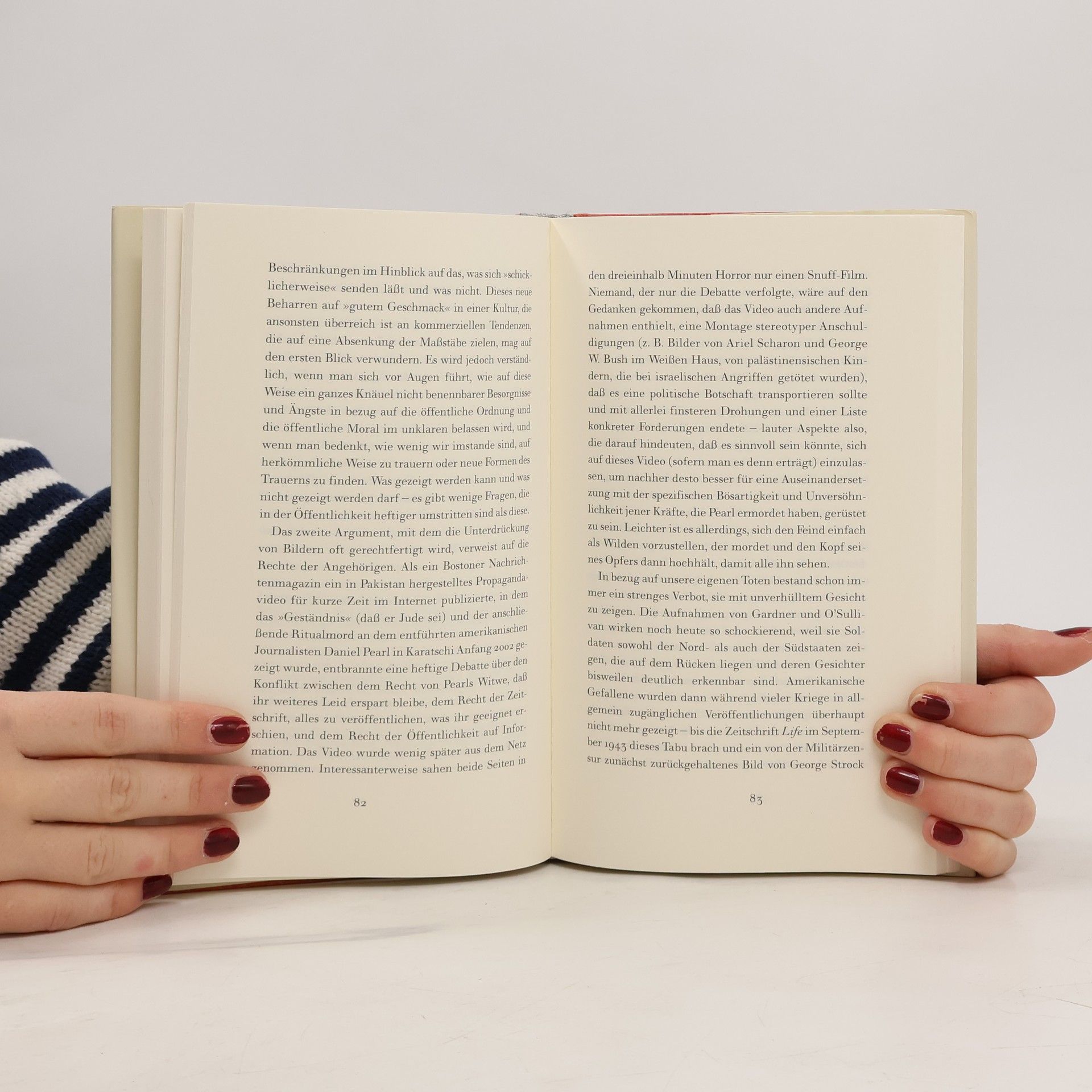Fünfundzwanzig Jahre nach ihrem Epoche machenden Essay „Über Fotografie“ beschäftigt sich Susan Sontag mit dem Thema Kriegsfotografie: Sie rekapituliert die historische Entwicklung, nennt die Vorläufer der Dokumentaristen des Krieges und revidiert ihre einstige Ansicht, dass der Mensch durch solche Bilder abstumpfe. Im Gegenteil: „Das Bild sagt: setz dem ein Ende, interveniere, handle. Und dies ist die entscheidende, die korrekte Reaktion.“
