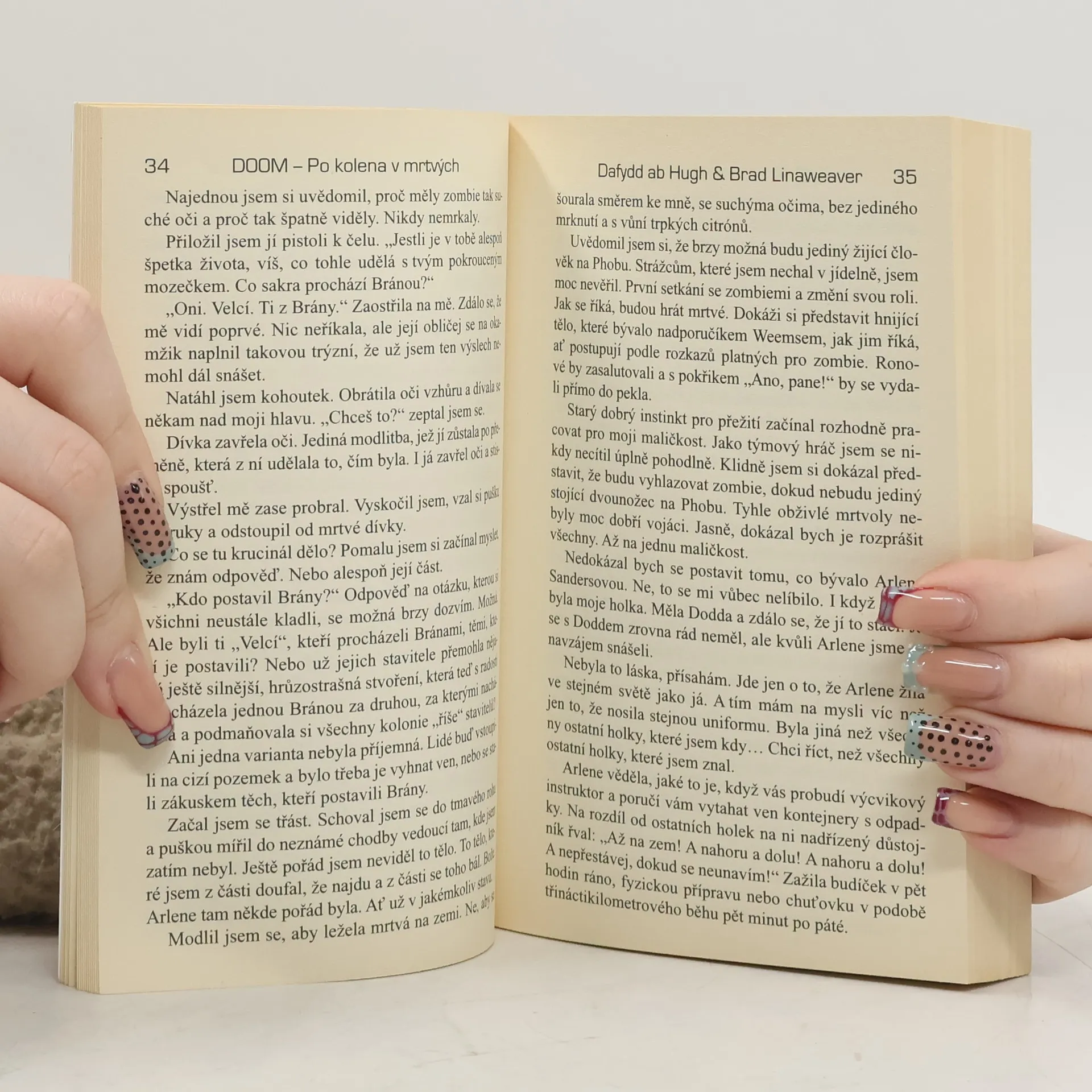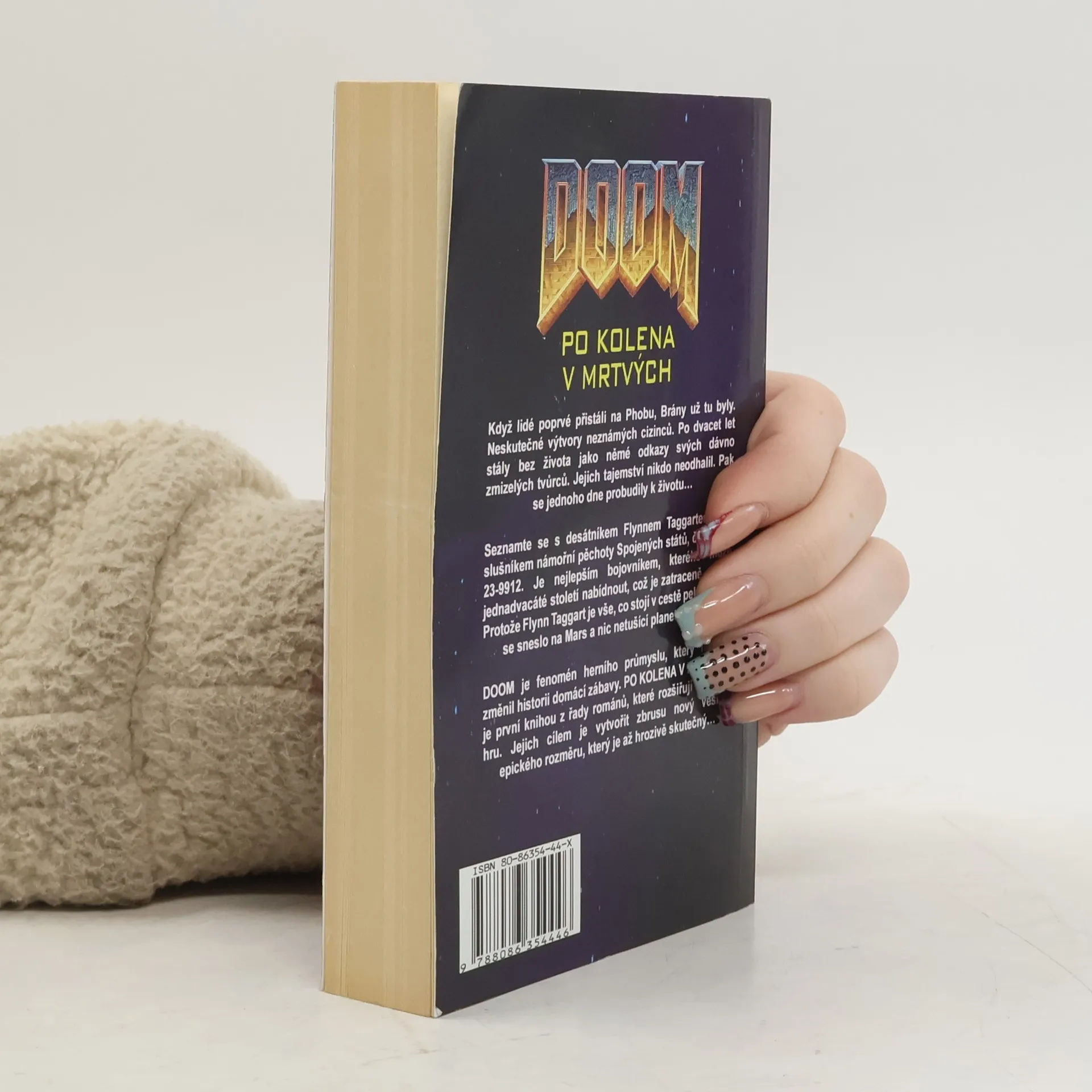 Když lidé poprvé přistáli na Phobu, Brány už tu byly. Neskutečné výtvory neznámých cizinců. Po dvacet let stály bez života jako němé odkazy svých dávno zmizelých tvůrců. Jejich tajemství nikdo neodhalil. Pak se jednoho dne probudily k životu… Seznamte se s desátníkem Flynnem Taggartem, příslušníkem námořní pěchoty Spojených států, číslo 888–23–9912. Je nejlepším bojovníkem, kterého může jednadvacáté století nabídnout, což je zatraceně dobře. Protože Flynn Taggart je vše, co stojí v cestě peklu, které se sneslo na Mars a nic netušící planetu Zemi… DOOM je fenomén herního průmyslu, který navždy změnil historii domácí zábavy. Po kolena v mrtvých je první knihou z řady románů, které rozšiřují původní hru. Jejich cílem je vytvořit zbrusu nový vesmír epického rozměru, který je až hrozivě skutečný…