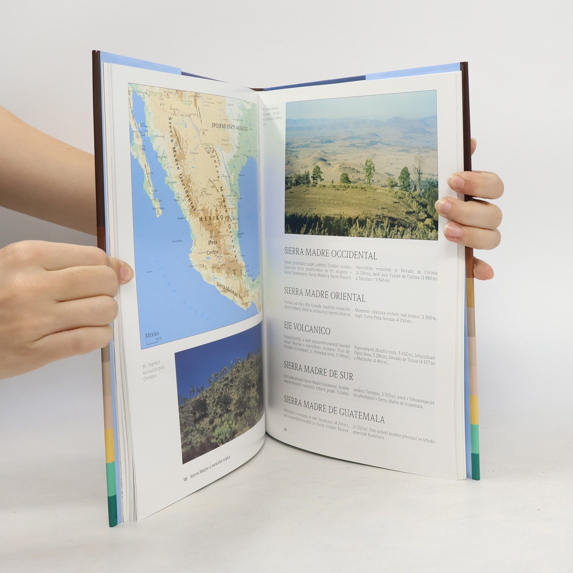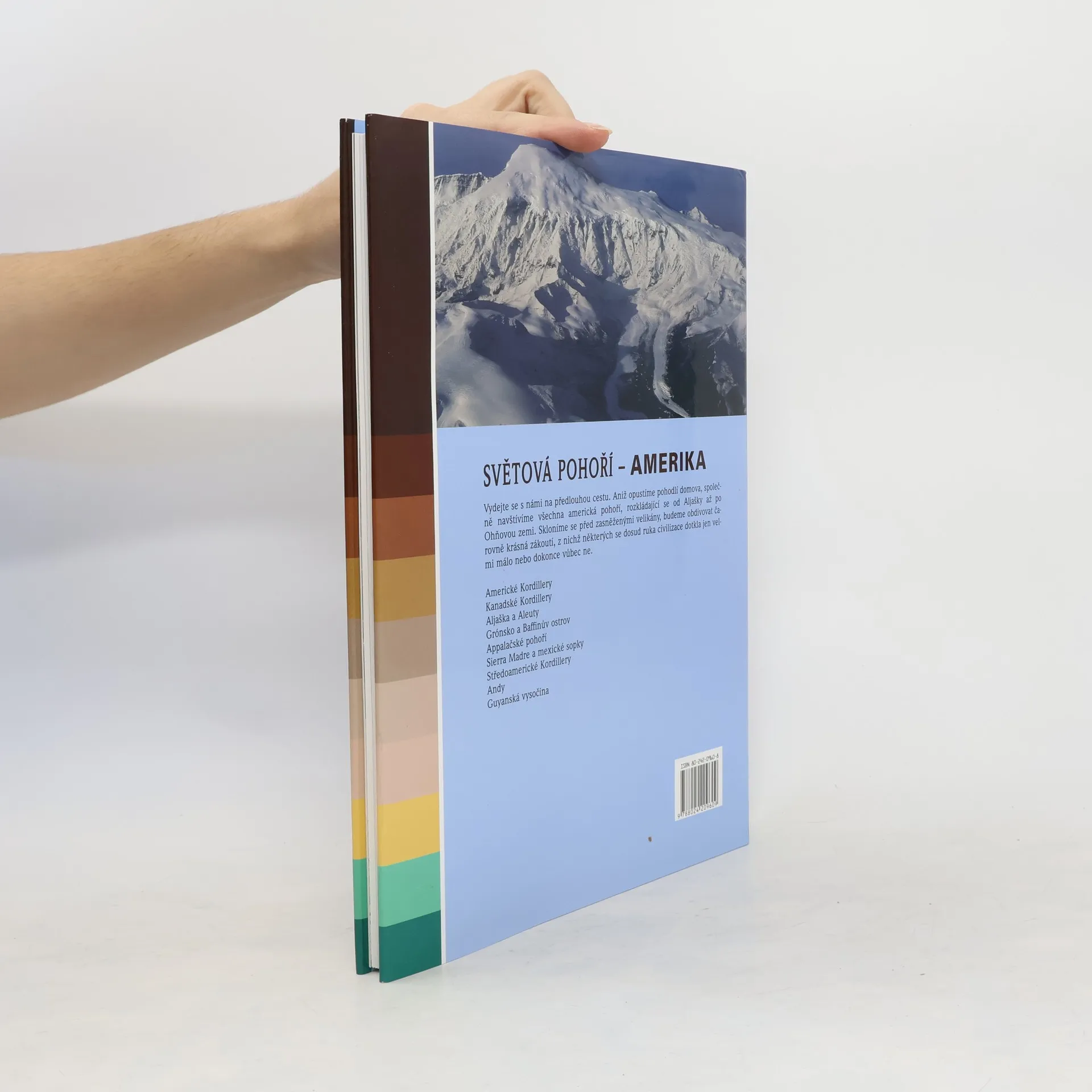 Přehledové i podrobné mapy o Turistické trasy o Alpinismus o Sport o Fauna a flóra o Podnebí V naší předlouhé výpravě s knihou navštívíme všechna americká pohoří, rozkládající se od Aljašky až po Ohňovou zemi. Skloníme se před zasněženými velikány, budeme obdivovat čarovná zákoutí, z nichž některých se ruka civilizace dosud nedotkla. Páteř Nového světa tvoří nejdelší pohoří planety Kordillery, v Jižní Americe nazývané Andy. Sahají od mrazivé Aljašky až do tropů. Navštívíme řadu sopek, mezi nimi nejvyšší vulkán světa Guallatiri. Zamíříme na ledem pokryté hory Baffinova ostrova a pak se ohřejeme na stolových horách Venezuely…. Knihu zpracovali lidé, kteří daná místa skutečně navštívili; zaměřili se na hlubší poznání kraje a na nové možnosti cestování a turistiky. Poutavý text provázejí originální a atraktivní fotografie. Publikace obsahuje i přehledové mapy horstev, podrobné mapky a nákresy hřebenovek s turistickými trasami.