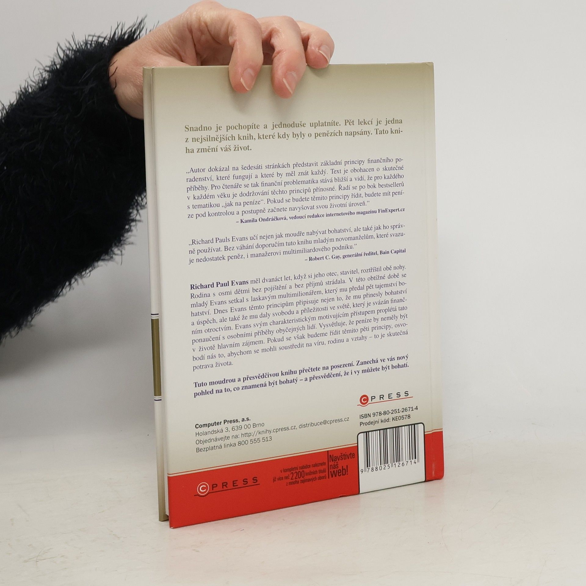 Pomocí pěti základních finančních principů vede autor čtenáře k tomu, aby dokázali zvýšit svou životní úroveň, dosáhnout finančního zdraví a třeba i finanční nezávislosti. Text je obohacen o skutečné příběhy. Pro čtenáře se tak finanční problematika stává bližší a vidí, že pro každého v každém věku je dodržování těchto principů přínosné. Pět lekcí lze snadno pochopit a jednoduše uplatnit Pomocí pěti základních finančních principů vede autor čtenáře k tomu, aby dokázali zvýšit svou životní úroveň, dosáhnout finančního zdraví a třeba i finanční nezávislosti. Text je obohacen o skutečné příběhy. Pro čtenáře se tak finanční problematika stává bližší a vidí, že pro každého v každém věku je dodržování těchto principů přínosné. 114s + 21 str. formuláře