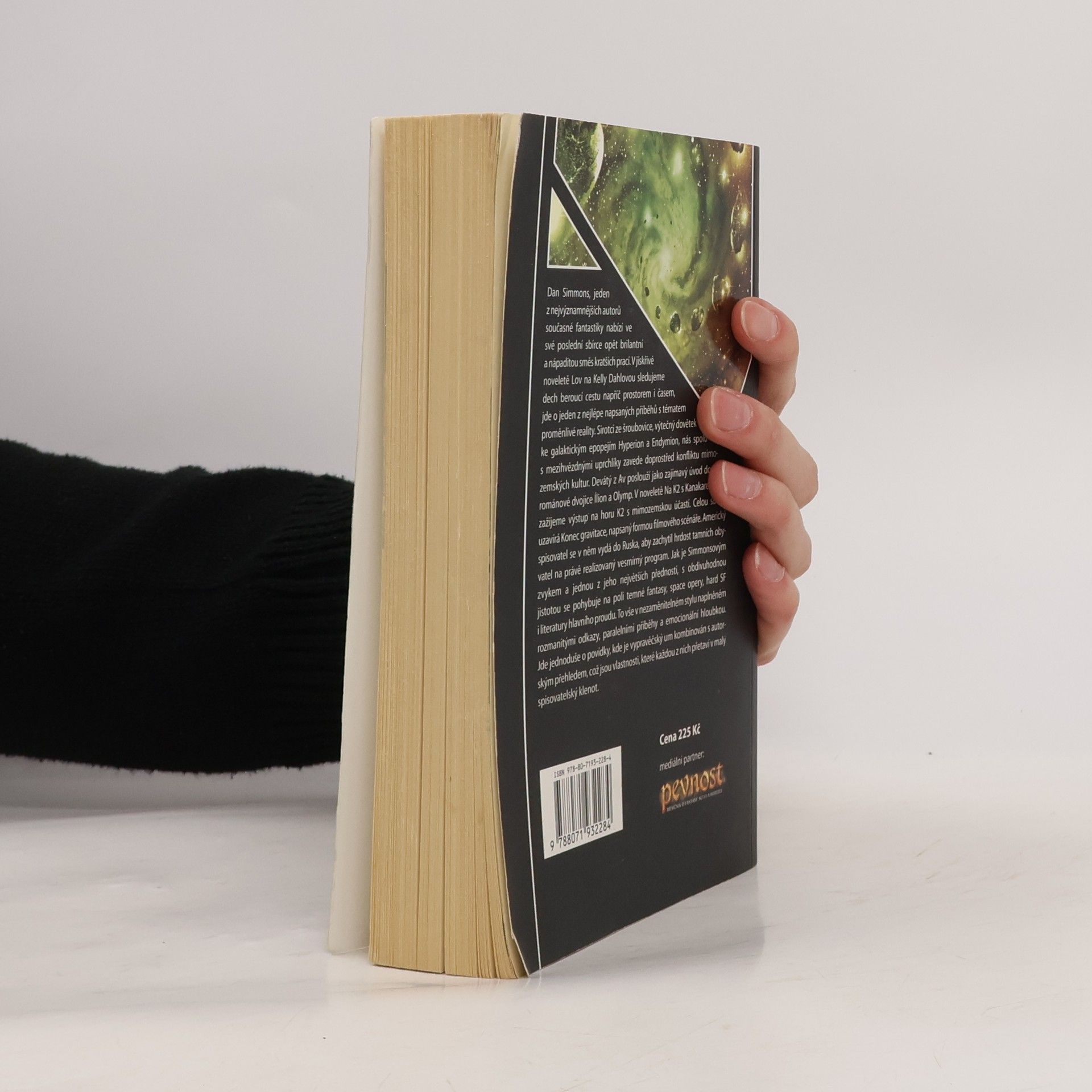 Dan Simmons, jeden z nejvýznamnějších autorů současné fantastiky nabízí ve své poslední sbírce opět brilantní a nápaditou směs kratších prací. V jiskřivé noveletě Lov na Kelly Dahlovou sledujeme dech beroucí cestu napříč prostorem i časem, jde o jeden z nejlépe napsaných příběhů s tématem proměnlivé reality. Sirotci ze Šroubovice, výtečný dovětek ke galaktickým epopejím Hyperion a Endymion, nás spolu s mezihvězdnými uprchlíky zavede doprostřed konfliktu mimozemských kultur. Devátý Av poslouží jako zajímavý úvod do světa románové dvojice Ílion a Olymp. V noveletě Na K2 s Kanakaredesem zažijeme výstup na horu K2 s mimozemskou účastí. Celou sbírku uzavírá Konec gravitace, napsaný formou filmového scénáře. Americký spisovatel se v něm vydá do Ruska, aby zachytil hrdost tamních obyvatel na právě realizovaný vesmírný program. Jak je Simmonsovým zvykem a jednou z jeho největších předností, s obdivuhodnou jistotou se pohybuje na poli temné fantasy, space opery, hard SF i literatury hlavního proudu. To vše v nezaměnitelném stylu naplněném rozmanitými odkazy, paralelními příběhy a emocionální hloubkou. Jde jednoduše o povídky, kde je vypravěčský um kombinován s autorským přehledem, což jsou vlastnosti, které každou z nich přetaví v malý spisovatelský klenot.