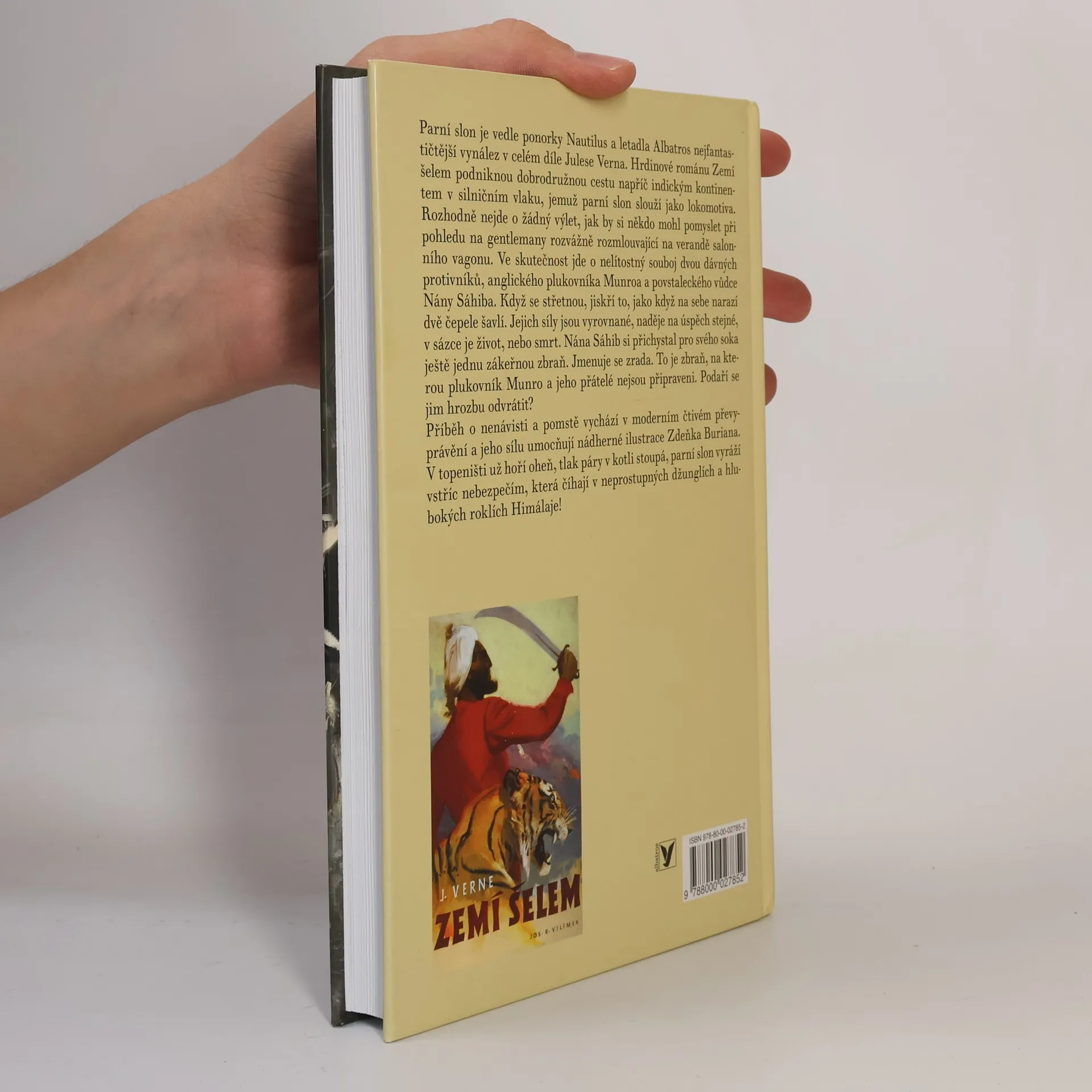 Podle románu Julese Vernea převyprávěl Ondřej Neff. Parní slon je vedle ponorky Nautilus a letadla Albatros nejfantastičtější vynález v celém díle Julese Verna. Hrdinové románu Zemí šelem podniknou dobrodružnou cestu napříč indickým kontinentem v silničním vlaku, jemuž parní slon slouží jako lokomotiva. Rozhodně nejde o žádný výlet, jak by si někdo mohl pomyslet při pohledu na gentlemany rozvážně rozmlouvající na verandě salonního vagonu. Ve skutečnosti jde o nelítostný souboj dvou dávných protivníků, anglického plukovníka Munroa a povstaleckého vůdce Nány Sáhiba. Když se střetnou, jiskří to, jako když na sebe narazí dvě čepele šavlí. Jejich síly jsou vyrovnané, naděje na úspěch stejné, v sázce je život, nebo smrt. Nána Sáhib si přichystal pro svého soka ještě jednu zákeřnou zbraň. Jmenuje se zrada. To je zbraň, na kterou plukovník Munro a jeho přátelé nejsou připraveni. Podaří se jim hrozbu odvrátit? Příběh o nenávisti a pomstě vychází v moderním čtivém převyprávění a jeho sílu umocňují nádherné ilustrace Zdeňka Buriana. V topeništi už hoří oheň, tlak páry v kotli stoupá, parní slon vyráží vstříc nebezpečím, která číhají v neprostupných džunglích a hlubokých roklích Himálaje!