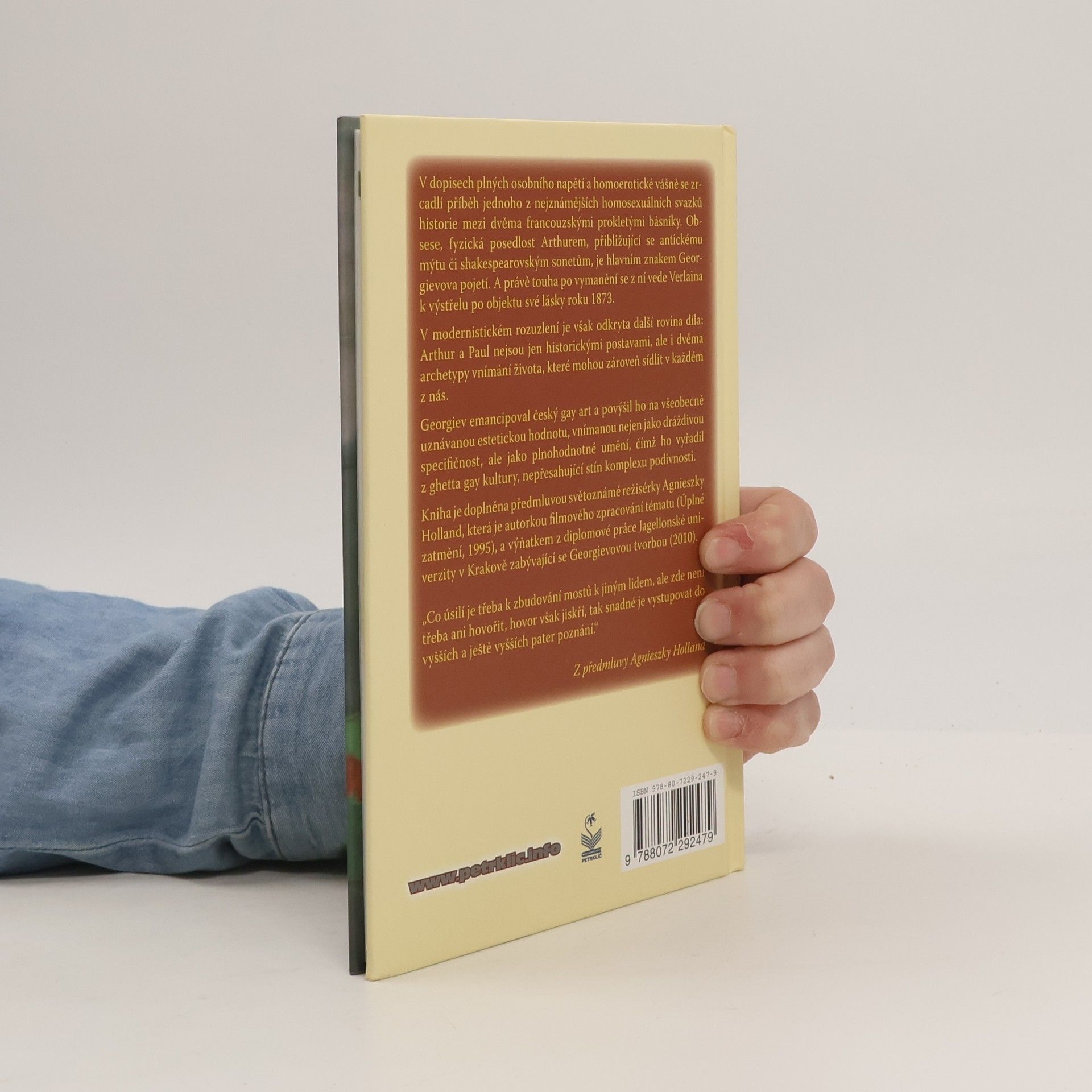 V dopisech plných osobního napětí a homoerotické vášně se zrcadlí příběh jednoho z nejznámějších homosexuálních svazků historie mezi dvěma francouzskými prokletými básníky. Obsese, fyzická posedlost Arthurem, přibližující se antickému mýtu či shakespearovským sonetům, je hlavním znakem Georgievova pojetí. A právě touha po vymanění se z ní vede Verlaina k výstřelu po objektu své lásky roku 1873.V modernistickém rozuzlení je však odkryta další rovina díla: Arthur a Paul nejsou jen historickými postavami, ale i dvěma archetypy vnímání života, které mohou zároveň sídlit v každém z nás.Georgiev emancipoval český gay art a povýšil ho na všeobecně uznávanou estetickou hodnotu, vnímanou nejen jako dráždivou specifičnost, ale jako plnohodnotné umění, čímž ho vyřadil z ghetta gay kultury, nepřesahující stín komplexu podivnosti.Kniha je doplněna předmluvou světoznámé režisérky Agnieszky Holland, která je autorkou filmového zpracování tématu (Úplné zatmění, 1995), a výňatkem z diplomové práce Jagellonské univerzity v Krakově zabývající se Georgievovou tvorbou (2010).