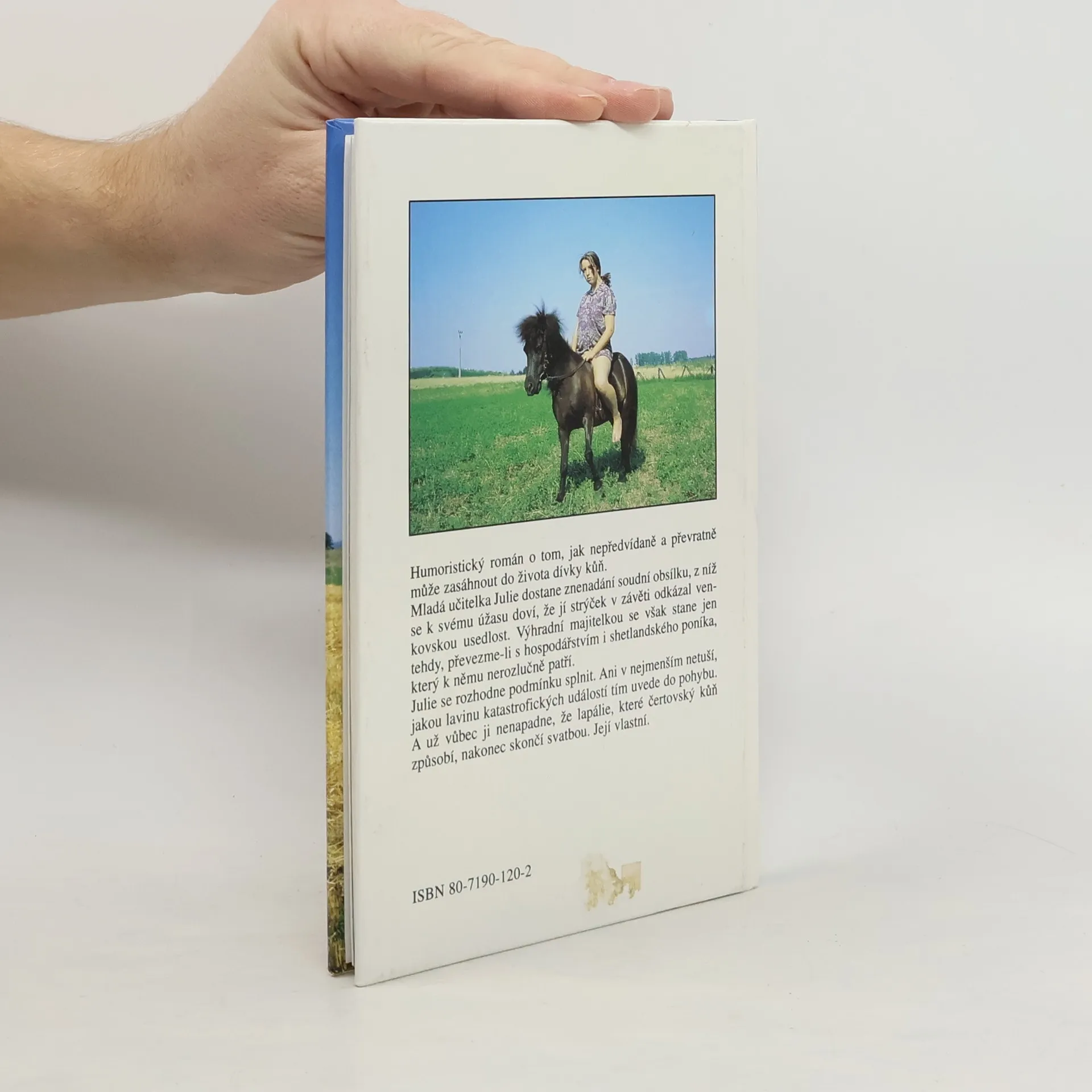 Humoristický román o tom, jak nepředvídaně a převratně může zasáhnout do života dvky kůň. Mladá učitelka Julie dostane znenadání soudní obsílku, z níž se k svému úžasu dozví, že jí strýček v závěti odkázal venkovskou usedlost. Výhradní majitelkou se však stane jen tehdy, převezme-li s hospodářstvím i shetlandského poníka, který k němu nerozlučně patří. Julie se rozhodně podmínku splnit. Ani v nejmenším netuší, jakou lavinu katastrofických událostí tím uvede do pohybu. A už vůbec jí nenapadne, že lapálie, které čertovsk kůň způsobí, nakonec skončí svatbou. Její vlastní.