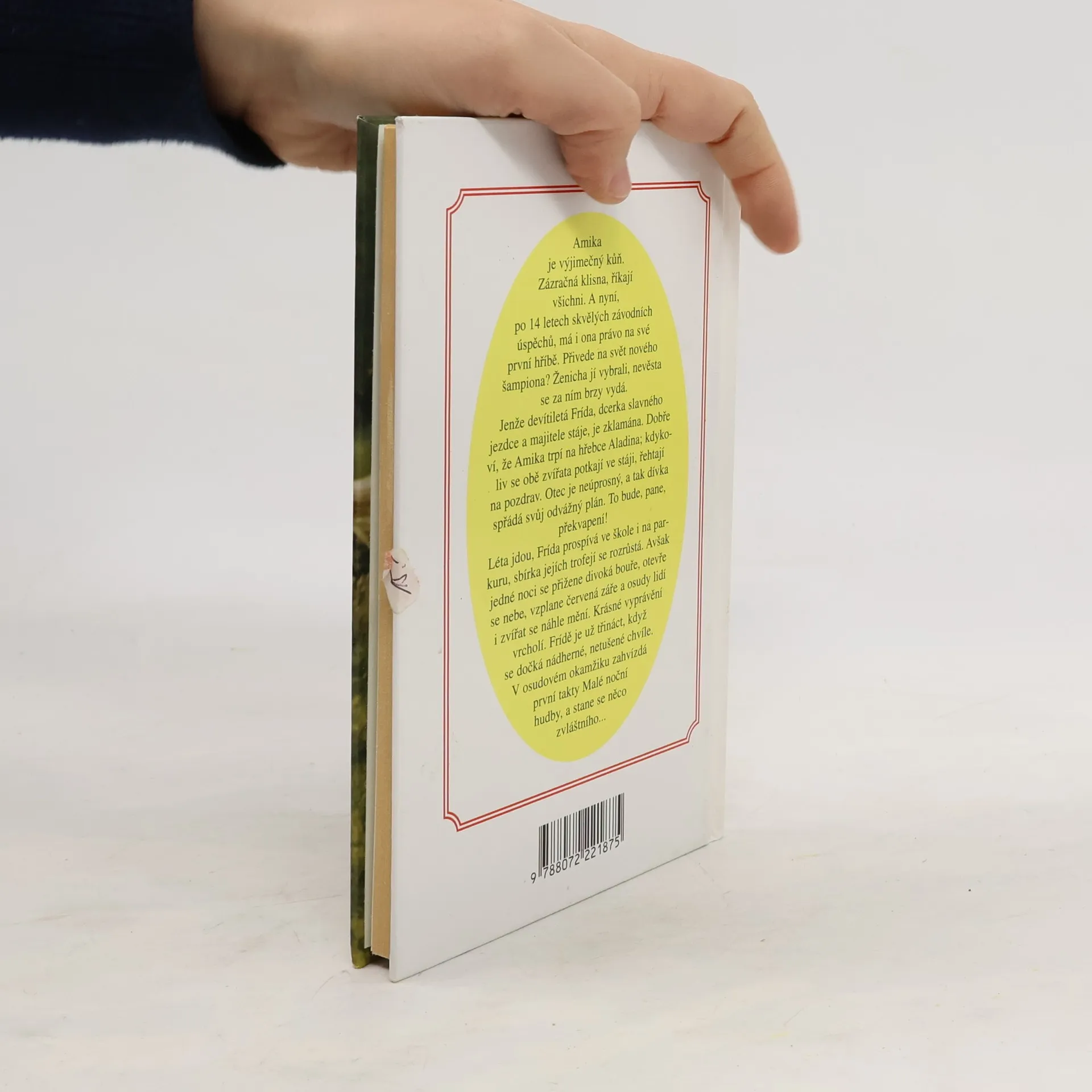 Příběh dívky a stájových koní vypráví především o závodech, tréninku a práci ve stájích. Otec malé Frídy je známý chovatel a soutěžní jezdec a tak není divu, že se dívka neustále motá kolem koní a účastní se i prvních soutěží. Život je krásný a bezstarostný až do hrůzné noci, kdy do pohody domova zasáhnou živly. Knížka je určena především děvčatům kolem 10 let. Autorka ohlašuje několik dalších pokračování.