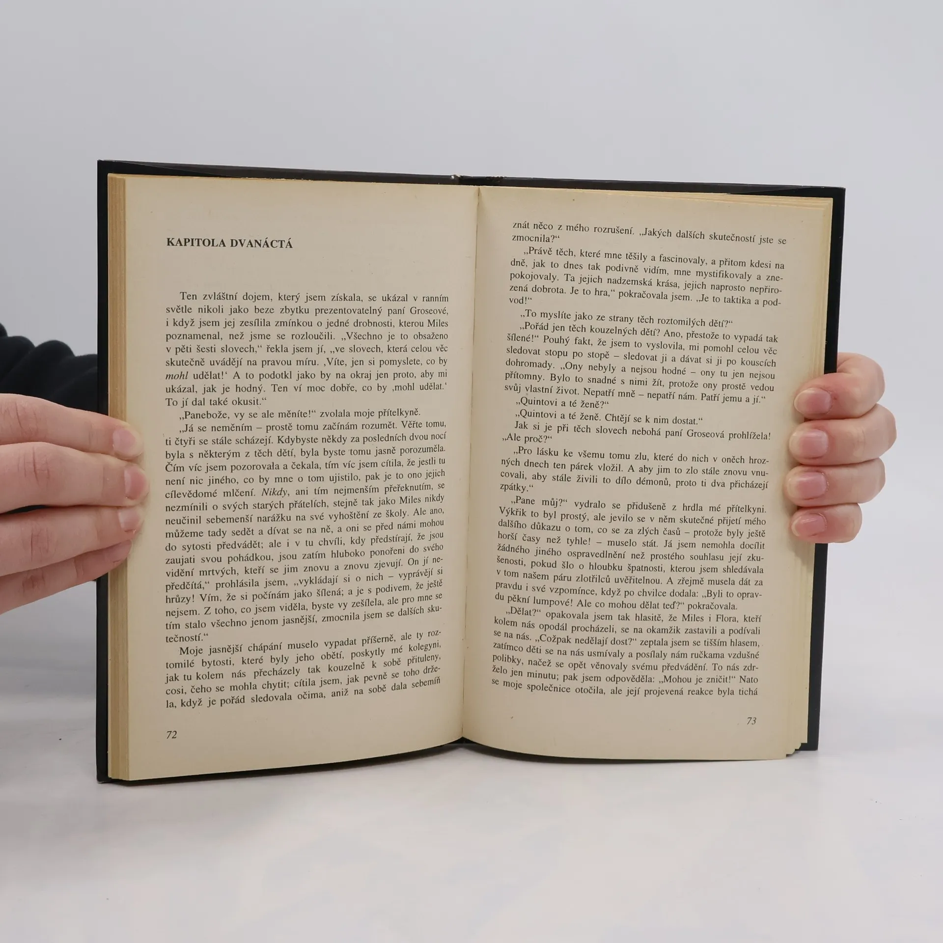 Guvernantka osiřelých sourozenců zjistí, že pravý život jejích svěřenců se odehrává ve spojení s již mrtvými osobami, sluhou a bývalou vychovatelkou. I ona se s nimi setkává, chce před přízraky děti ochránit...