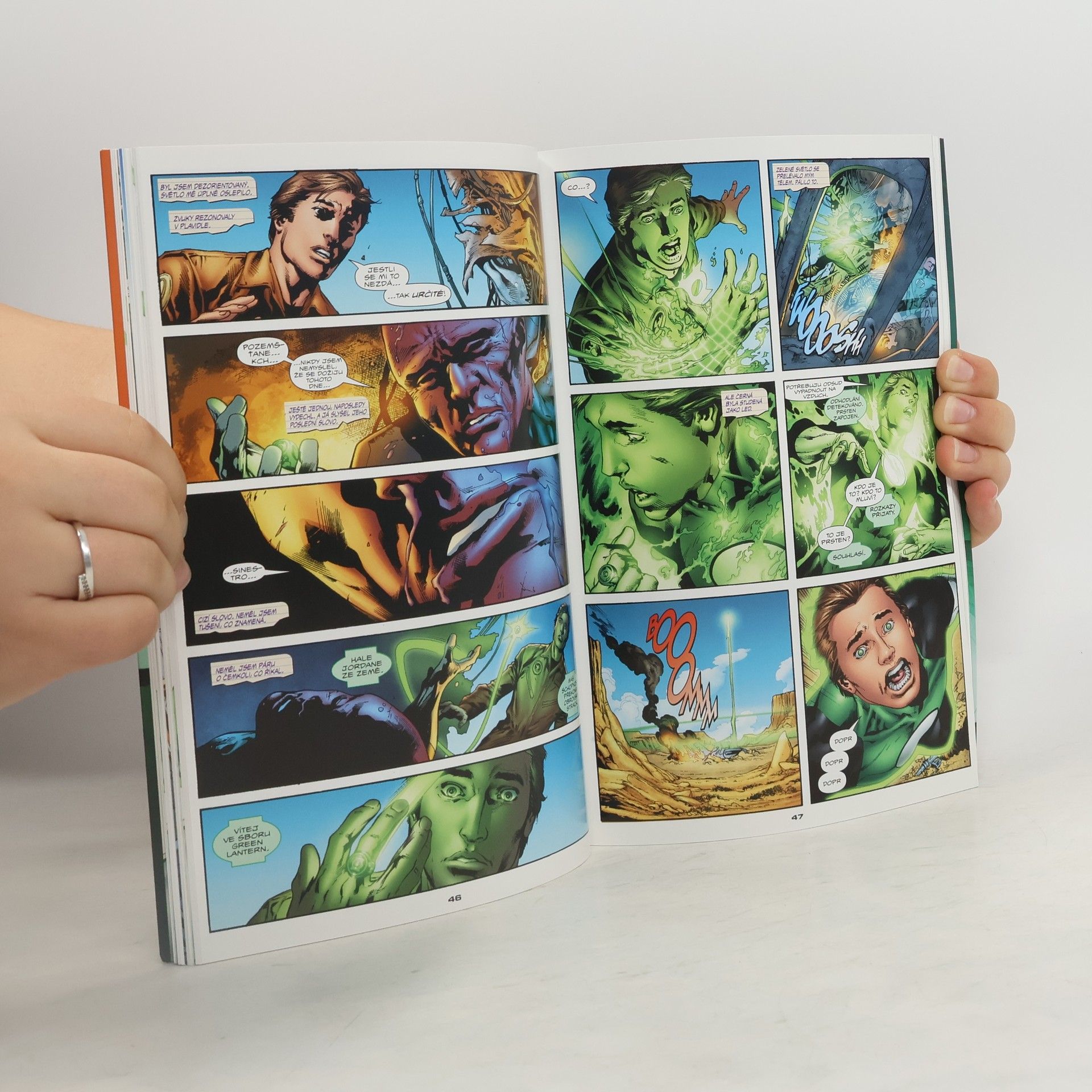 Poprvé se českým čtenářům dostává do rukou Green Lantern - jedna z nejslavnějších postav universa nakladatelství DC. Ochránce země i vesmíru s všemocným prstenem síly. Odhalte i vy jeho tajemství původu! Předtím, než se stal největším z Green Lanternů... A ještě předtím, než se znovuzrodil jako nejmocnější ochránce univerza, nebyl Hal Jordan víc než prachsprostý testovací pilot bez letadla s mizivými vyhlídkami na návrat do vzduchu - až do okamžiku, kdy mu umírající mimozemšťan Abin Sur předal Prsten moci, nejsilnější zbraň vesmíru. Nad známým příběhem Hala Jordana se ake vznášejí nejasnosti. Na cestě k jejich objasnění se musí utkat s vražedným monstrem, které zná temnou stránku Strážců vesmíru a proroctví o konci všeho živého v něm. Než se Hal postaví věštbě a odhalí záhadu Nejčernější noci, musí nejprve odhalit pravdu a poznat své tajemství původu.
