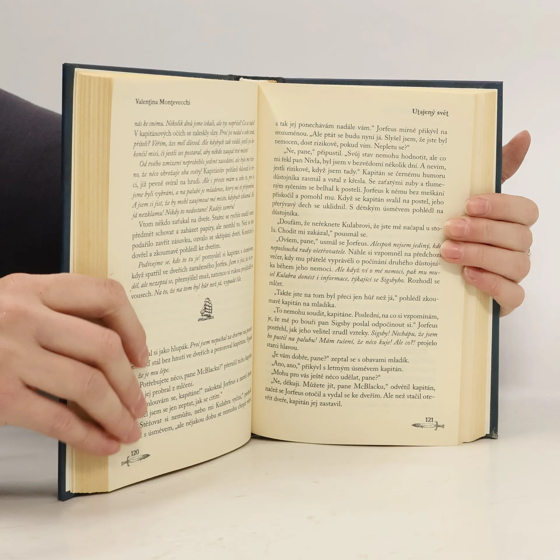 Dvaadvacetiletý mladík Jorfeus McBlack se tajně chystá na plavbu do neznáma. Na poslední procházce městem potkává věštce, jenž ho obdaří nejen zajímavou, ale také znepokojivou věštbou. Jorfeus se dokonce ještě před vyplutím přesvědčuje, že ho nebezpečí a tajemno budou provázet na všech jeho cestách. Jako první důstojník a posléze kapitán lodi Rebarunda musí čelit nejen ničivé bouři, ale i pirátům, zradě a tajemstvím, jež měla zůstat navždy skryta. Obstojí coby kapitán? Zachrání svou posádku i Knihu světů, která má nevyčíslitelnou cenu? Dokáže se vyrovnat s tím, kdo byl jeho otec a kam osud zavál jeho bratra, o němž neměl až donedávna tušení? A dopluje až tam, kde se jeden svět setkává s druhým, utajeným? To vše se dočtete v prvotině teprve šestnáctileté česko-italské spisovatelky Valentiny Montevecchi. Utajený svět, při jehož čtení si nikoli náhodou vzpomenete třeba na Piráty z Karibiku, vychází jako první svazek zamýšlené série Kniha světů. 1. vydání.