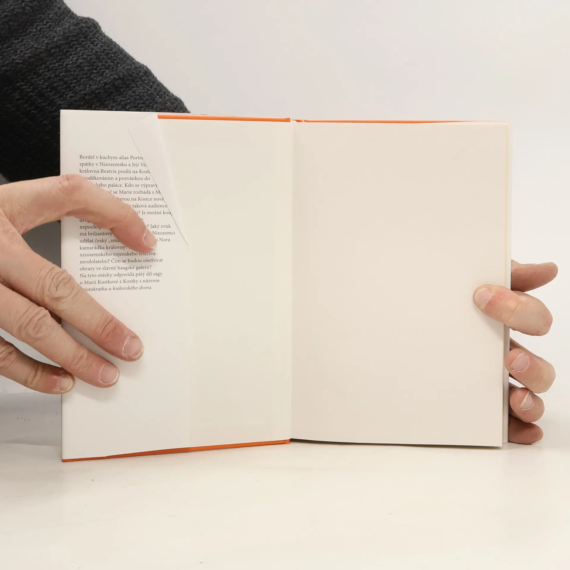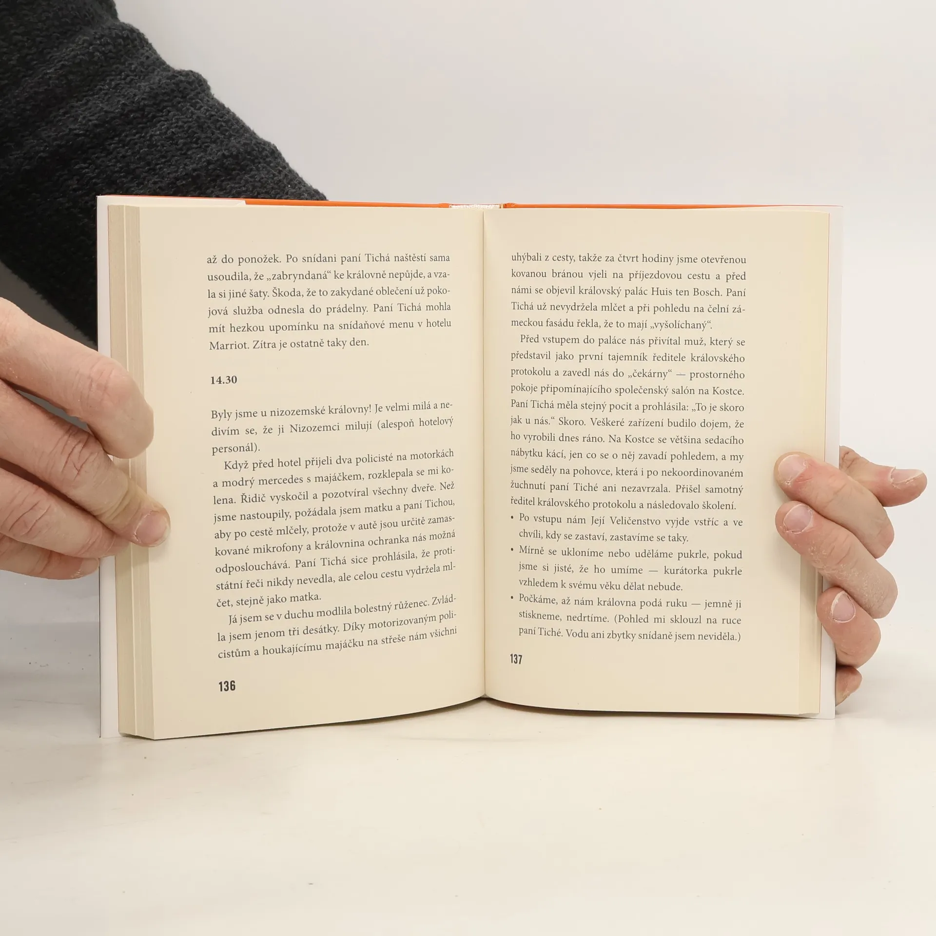 Již v pátém dílu ze série mimořádně úspěšných humoristických románů o "poslední aristokratce" mimo jiné dojde k následujícím událostem: Marie Kostková se rozzuří na Maxe Launa, zorganizuje výpravu do Nizozemského království, dostane briliantové šperky nesmírné hodnoty, objeví v sobě vášeň pro nakupování, v doprovodu své matky a paní Tiché odletí do Haagu, kde se setká s královnou Beatrix, omylem navštíví obchod s marihuanou, zažije oslnivý úspěch na recepci v královském paláci a potká sympatického mladého muže. Paní Tichá poprvé poletí letadlem a Jejímu Veličenstvu Beatrix se při audienci představí jako "nějaká Tichá." ViVien hraběnka Kostková zastaví přísun Prozacu a dočká se ocenění jako dvojnice princezny Diany. Zámecký zahradník překoná úzkost ze smrti a začne toužit po lásce. Kastelán Josef zůstane stejný.