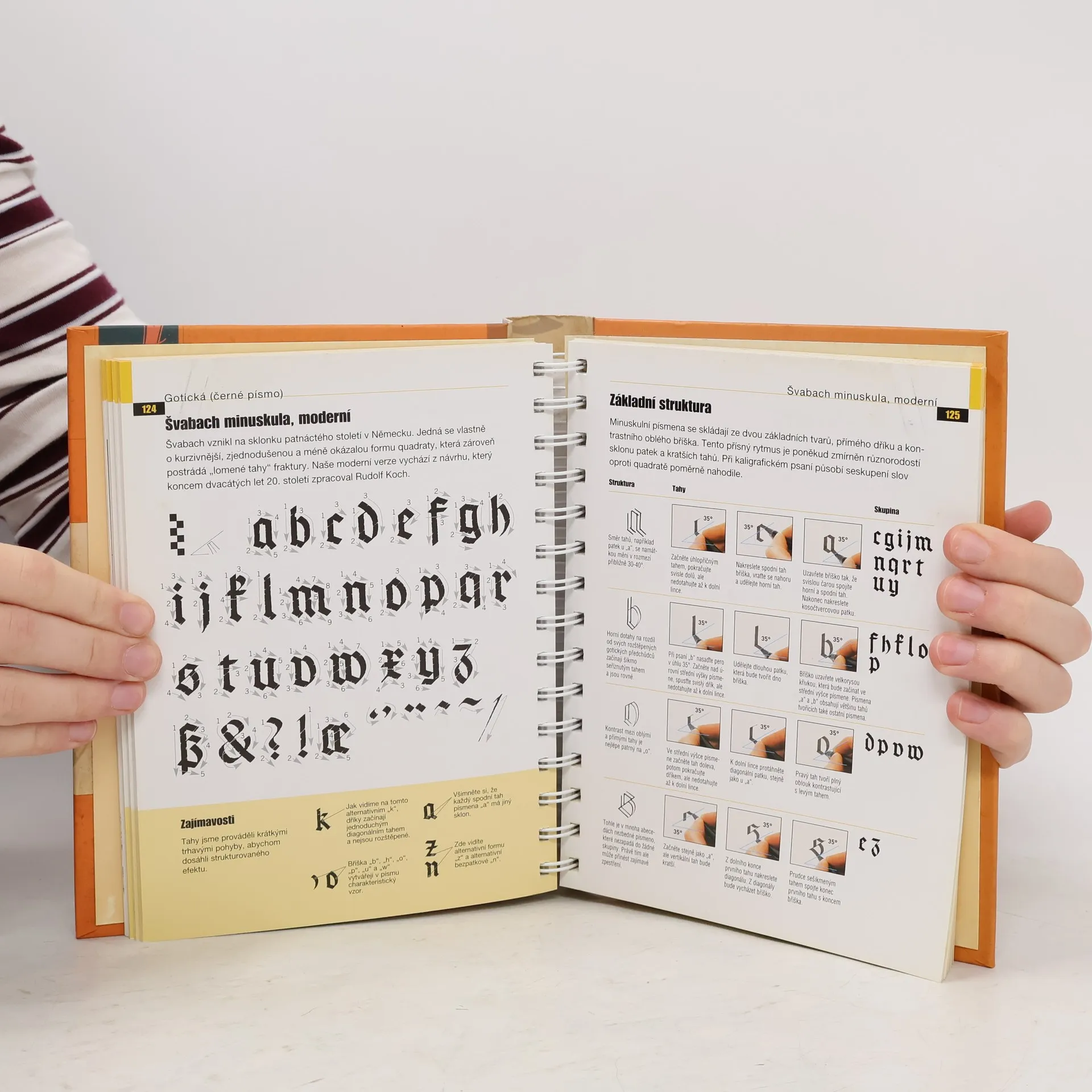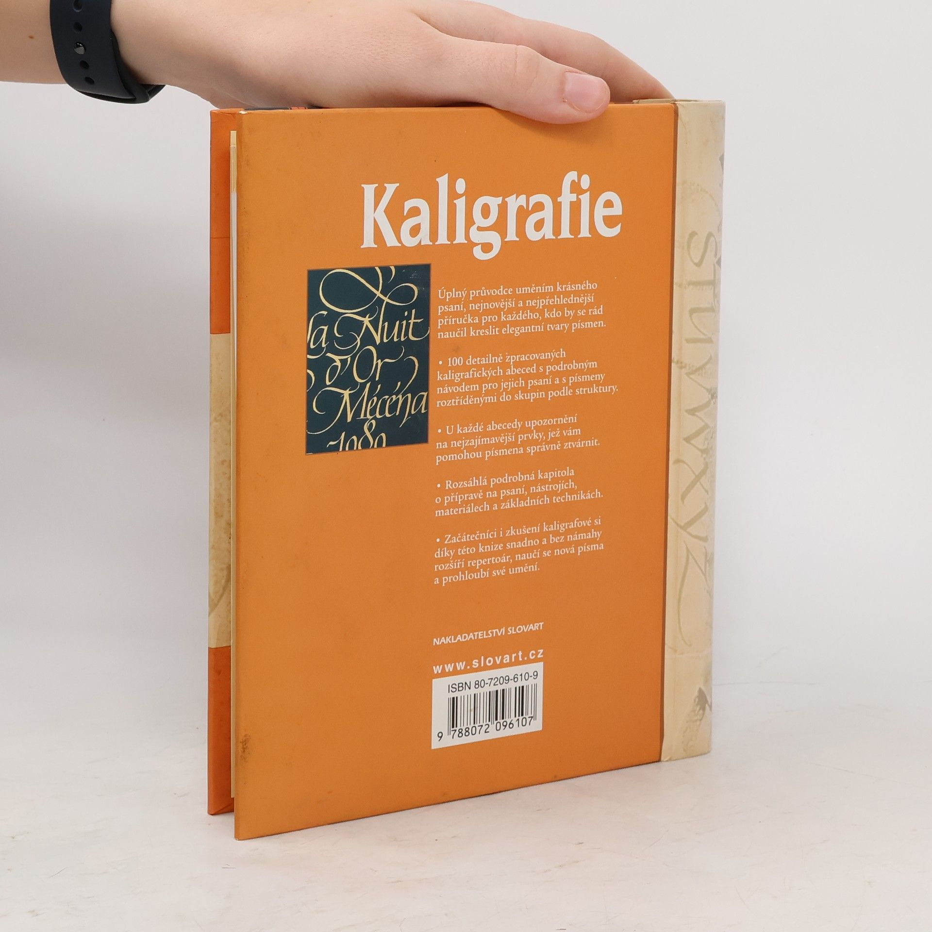 Úplný průvodce uměním krásného psaní, nejnovější a nejpřehlednější příručka pro každého, kdo by se rád naučil kreslit elegantní tvary písmen. * 100 detailně zpracovaných kaligrafických abeced s podrobným návodem pro jejich psaní a s písmeny roztříděnými do skupin podle struktury. * U každé abecedy upozornění na nejzajímavější prvky, jež vám pomohou písmena správně ztvárnit. * Rozsáhlá podrobná kapitola o přípravě na psaní, nástrojích, materiálech a základních technikách. * Začátečníci i zkušení kaligrafové si díky této knize snadno a bez námahy rozšíří repertoár, naučí se nová písma a prohloubí své umění. Praktická kniha, která zůstane ležet před vámi na zvolené straně - uvnitř je totiž ve formě kroužkového bloku; zvenčí působí jako krásná kniha v tvrdých deskách.