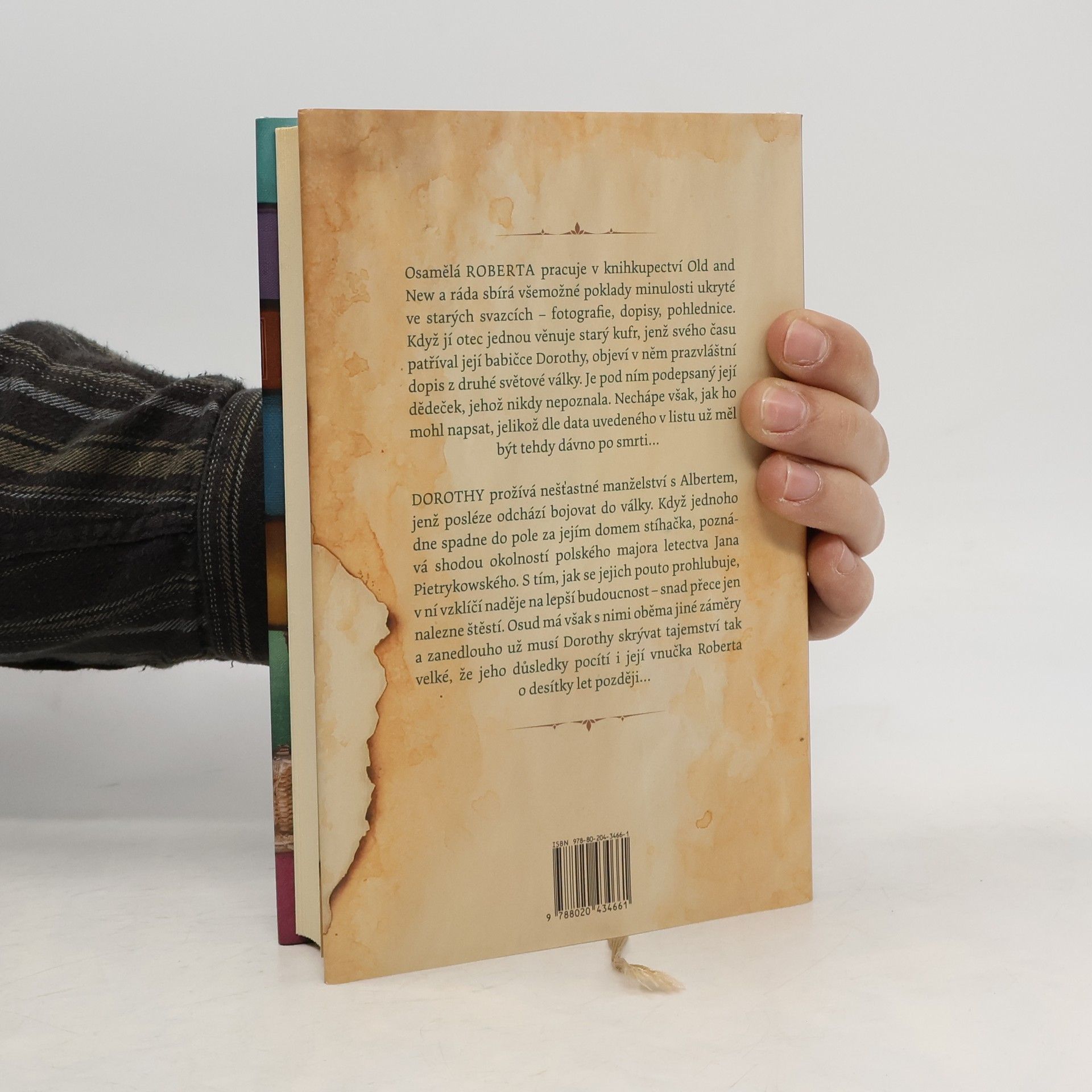 Osudový příběh o rodinných tajemstvích, spřízněných duších a promeškaných příležitostech Osamělá Roberta pracuje v knihkupectví Old and New a ráda sbírá všemožné poklady minulosti ukryté ve starých svazcích – fotografie, dopisy, pohlednice. Když jí otec jednou věnuje starý kufr, jenž svého času patříval její babičce, objeví v něm prazvláštní dopis z druhé světové války. Je pod ním podepsaný její dědeček, jehož nikdy nepoznala – nejde jí však do hlavy, jak ho mohl napsat, jelikož dle data uvedeného v listu už měl být tehdy dávno po smrti… Dorothy prožívá nešťastné manželství s Albertem, jenž posléze odchází bojovat do války. Když jednoho dne spadne do pole za jejím domem stíhačka, poznává shodou okolností polského majora letectva Jana Pietrykowského a s tím, jak se jejich pouto prohlubuje, v ní vzklíčí naděje na lepší budoucnost – snad přece jen nalezne štěstí. Osud má však s nimi oběma jiné záměry a zanedlouho už musí Dorothy skrývat tajemství tak velké, že jeho důsledky pocítí i její vnučka Roberta o desítky let později…