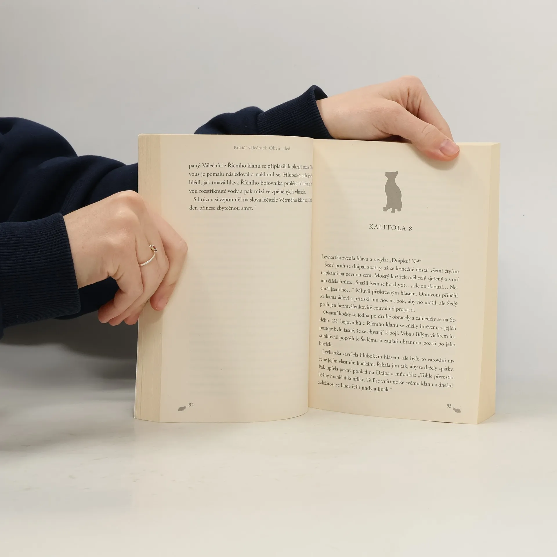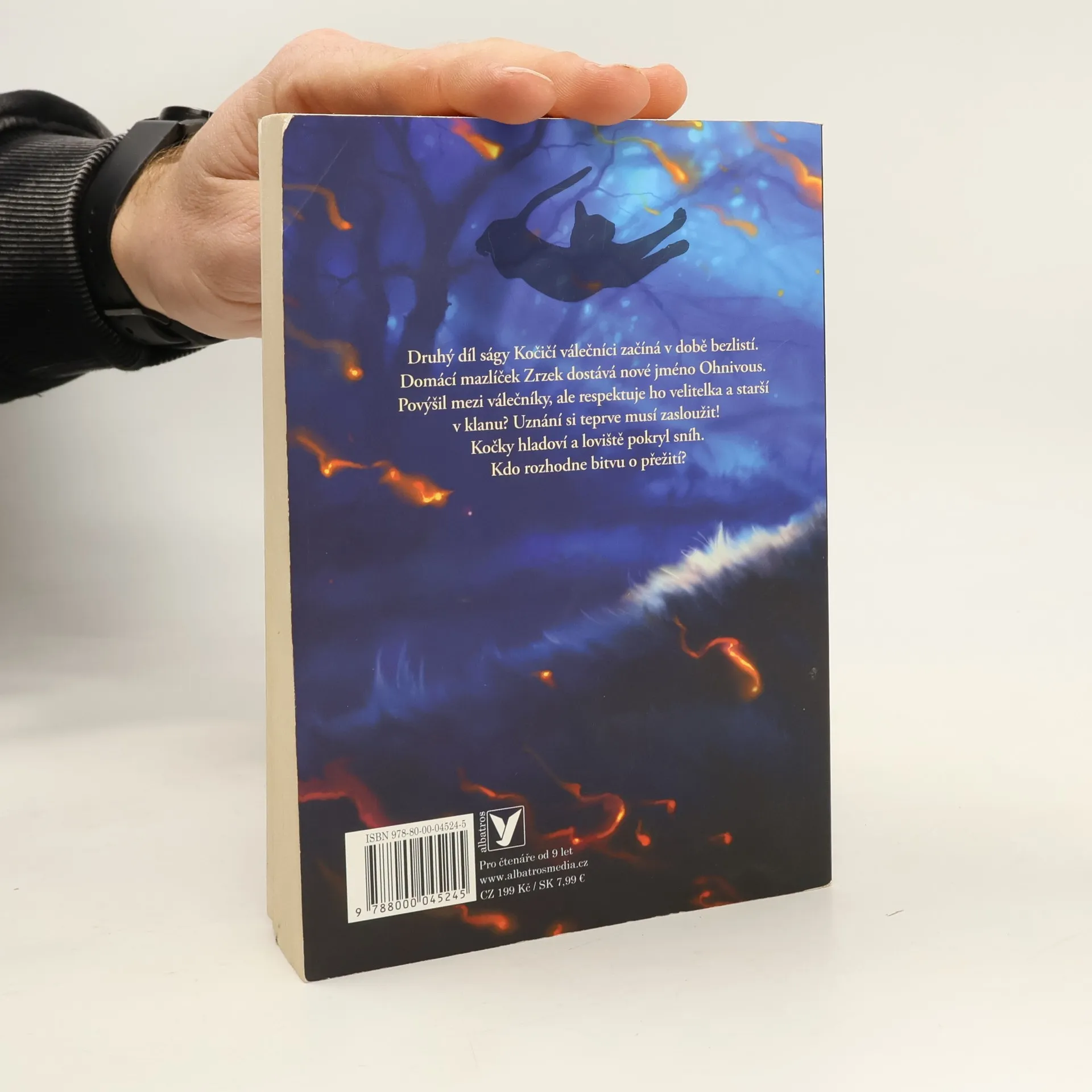 Druhý díl rozsáhlé ságy Kočičí válečníci začíná v době bezlistí. Domácí mazlíček Zrzek dostává nové jméno Ohnivous. Povýšil mezi válečníky, ale respektuje ho velitelka a starší v klanu? Uznání si teprve musí vysloužit! Kočky hladoví a loviště pokryl sníh. Kdo rozhodne bitvu o přežití?