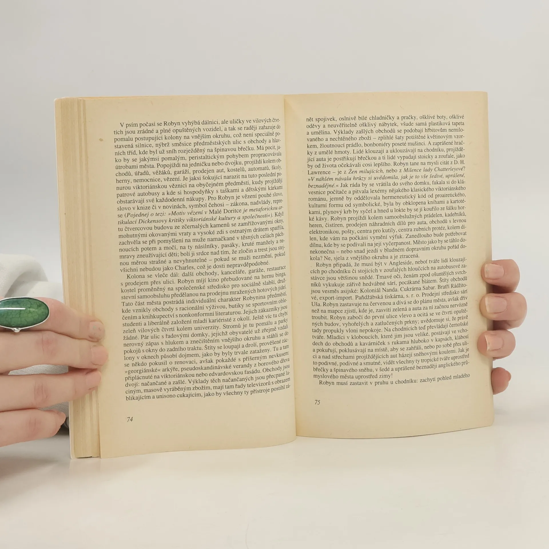 I have just started the book; what I can appreciate though from the very beginning is the rhythm of the narration, subtle work with the dialogue and the undertone of irony which the author employs. (Knížku jsem teprve začala číst; co však oceňuji hned od počátku, je tempo vyprávění, důmyslná stavba dialogu a ironický podtón, který autor používá.)