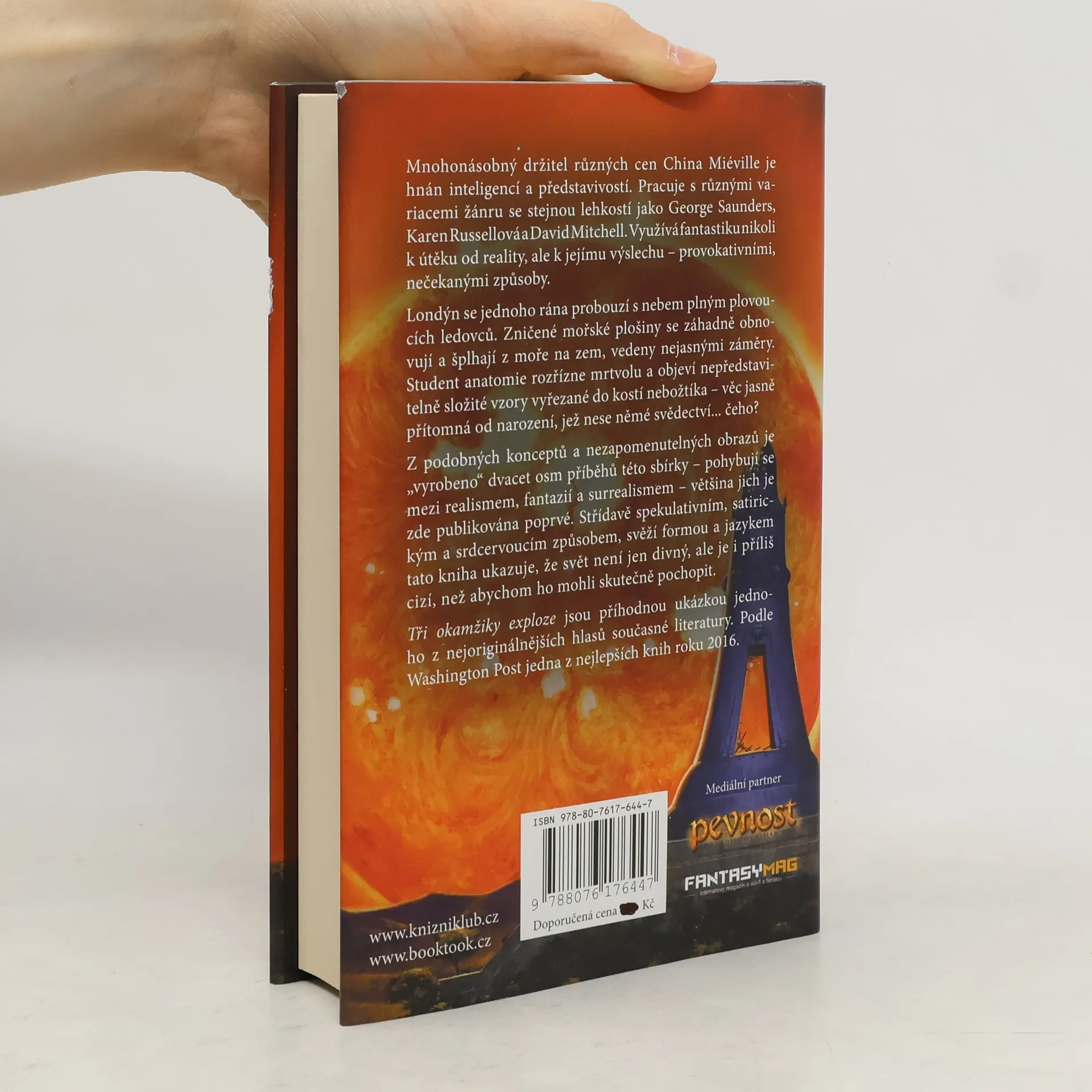 Jednoho rána se Londýn probudí a nebe je plné vznášejících se ledovců. Student anatomie zjišťuje, že v kostech každého z nás je od narození vyřezaný tajemný vzor. Na souš se dostávají ropné plošiny poháněné podivuhodným, zběsilým účelem… Osmadvacet příběhů mistra new weird, z nichž většina zde vychází zcela poprvé. Satira, horor, sci-fi, komedie… fantazii Chiny Miévilla se meze nekladou!