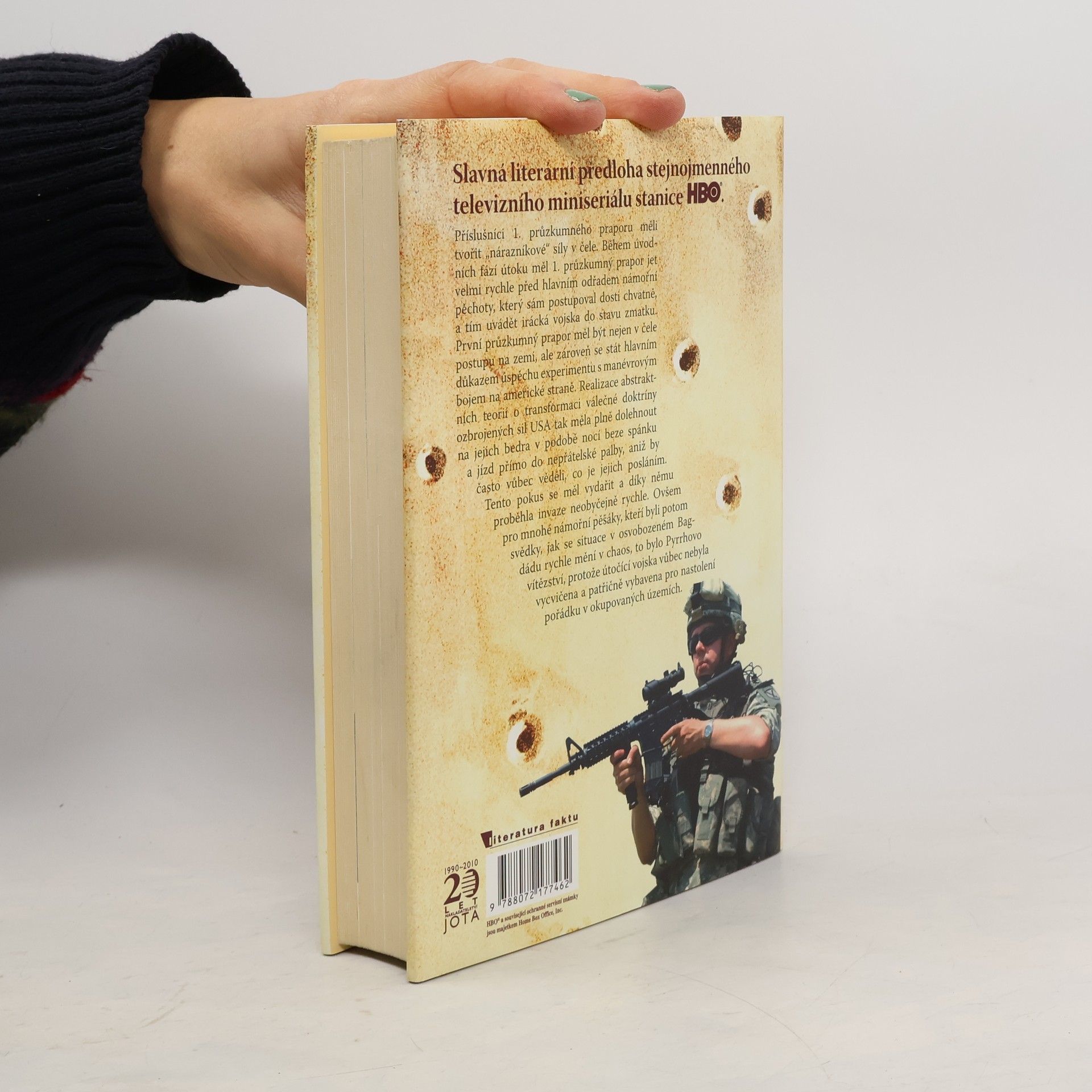 Slavná literární předloha úspěšného televizního seriálu stanice HBO, který si našel mnoho příznivců i mezi českými diváky… U zrodu knihy, jež se ve Spojených státech stala událostí, bylo odhodlání amerického novináře Evana Wrighta účastnit se invaze do Iráku v roce 2003 po boku příslušníků průzkumného praporu námořní pěchoty USA. Jako válečný reportér s nimi v první linii prodělal strastiplnou cestu až do Bagdádu. Nejdříve v článcích pro časopis Rolling Stone a později v této knize podal pronikavé svědectví o nové podobě bleskové války i o mariňácích, kteří v ní nasazovali své životy. Píše o nich zároveň s obdivem i se syrovou otevřeností. Fascinuje ho jejich odhodlání, zdatnost, smysl pro kamarádskou solidaritu, ale vnímá také jejich opuštěnost, nezralost i brutalitu.