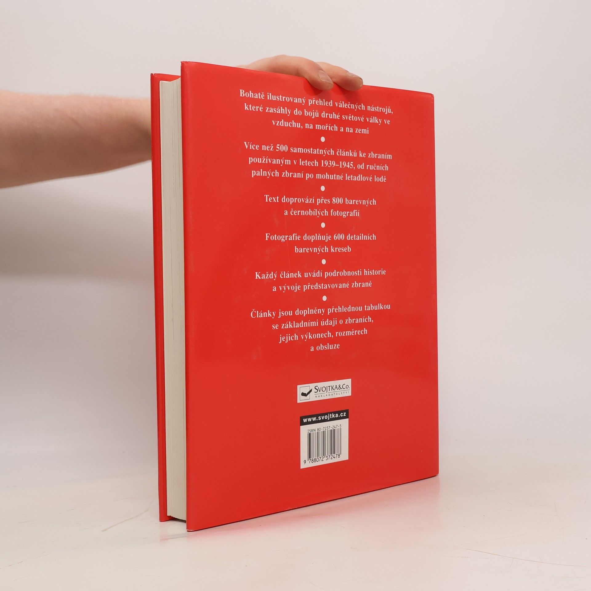 Kniha nabízí ojedinělý ilustrovaný přehled válečných zbraní a strojů, které zasáhly do bojů druhé světové války ve vzduchu, na mořích a na zemi. Text doprovází přes 800 barevných a černobílých fotografií a 600 detailních barevných kreseb.