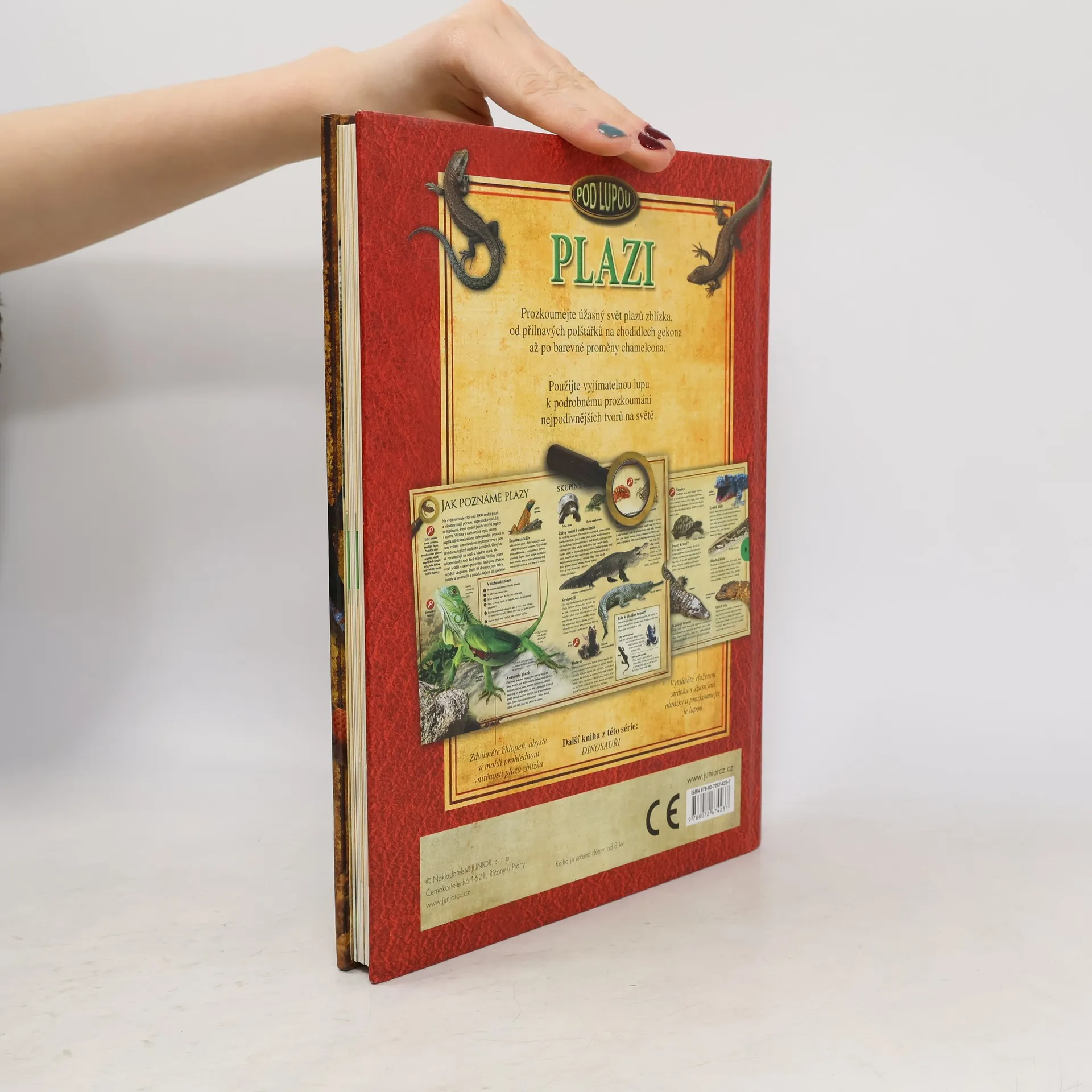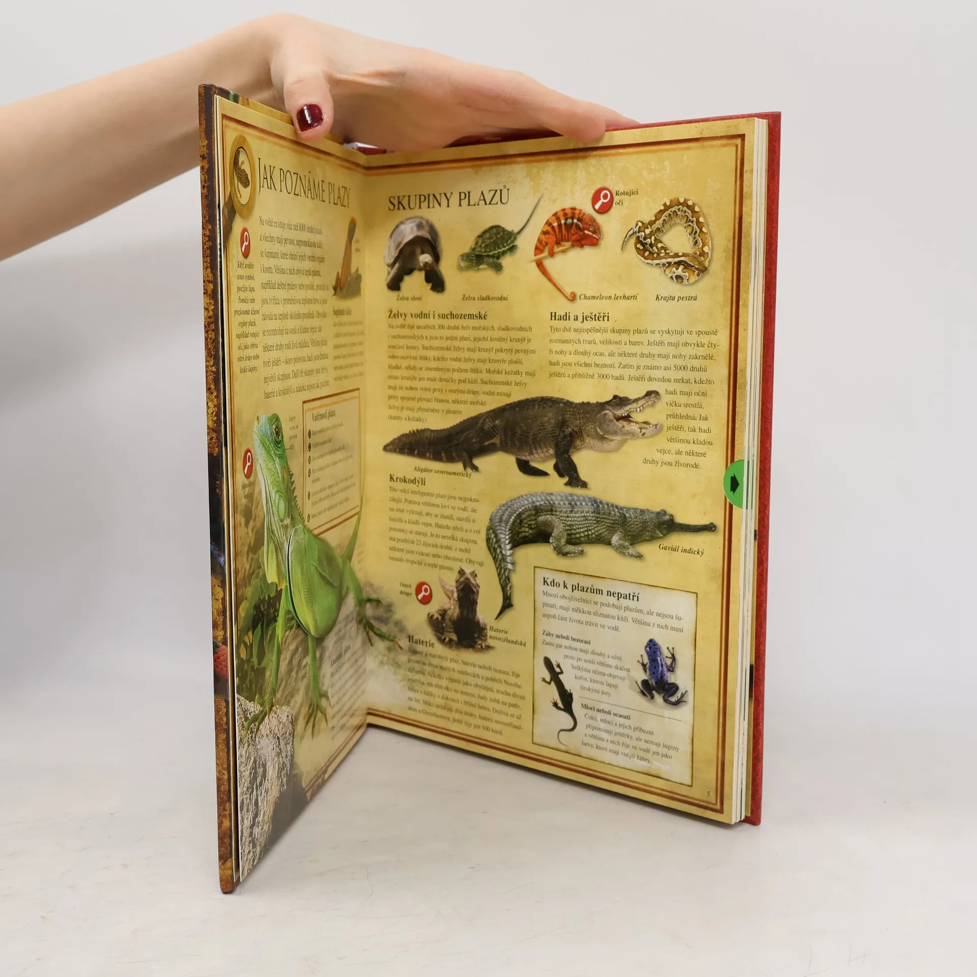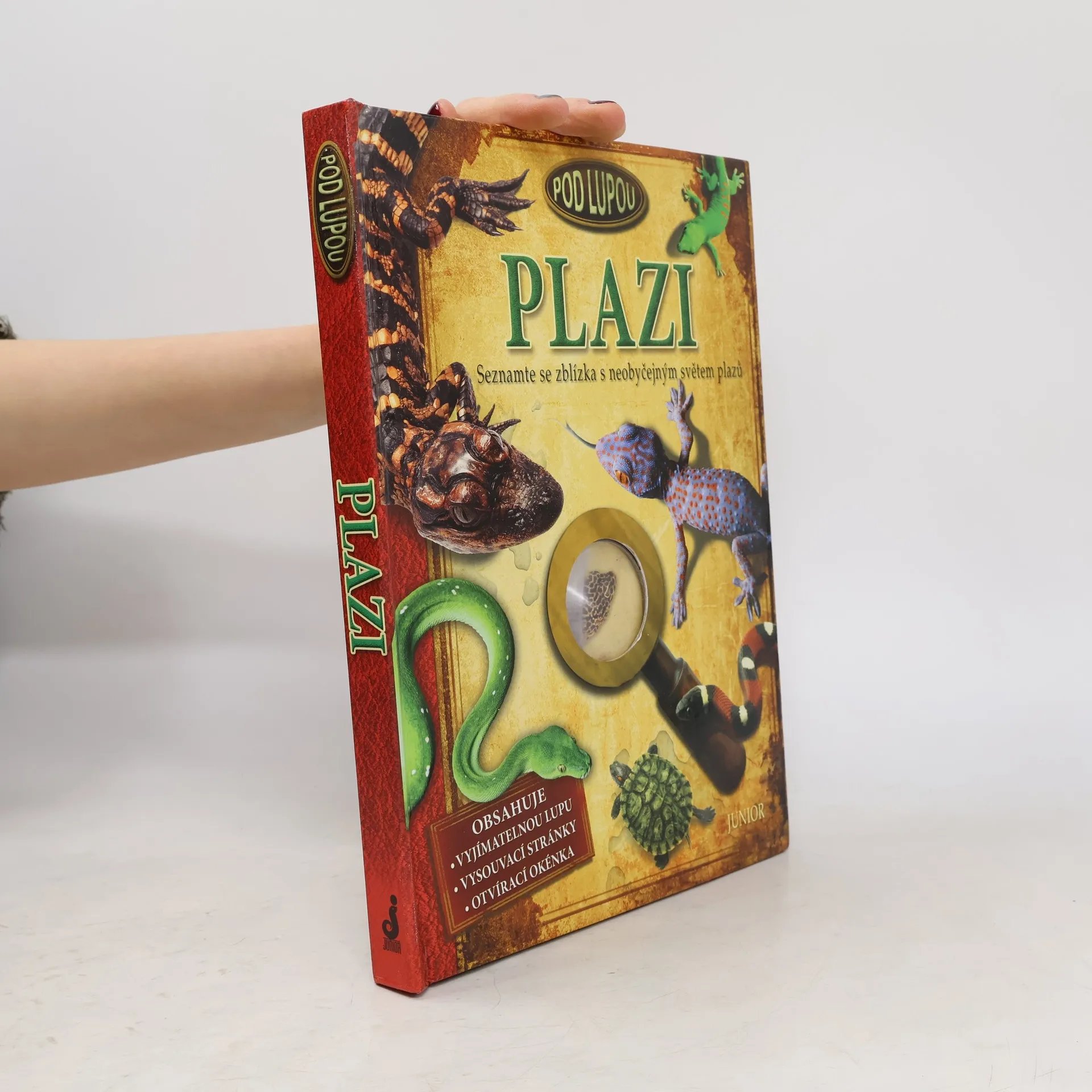 Prozkoumejte úžasný svět plazů zblízka od přilnavých polštářků na chodidlech gekona až po barevné proměny chameleona. Použijte vyjímatelnou lupu k podrobnému prozkoumání nejpodivnějších tvorů na světě.