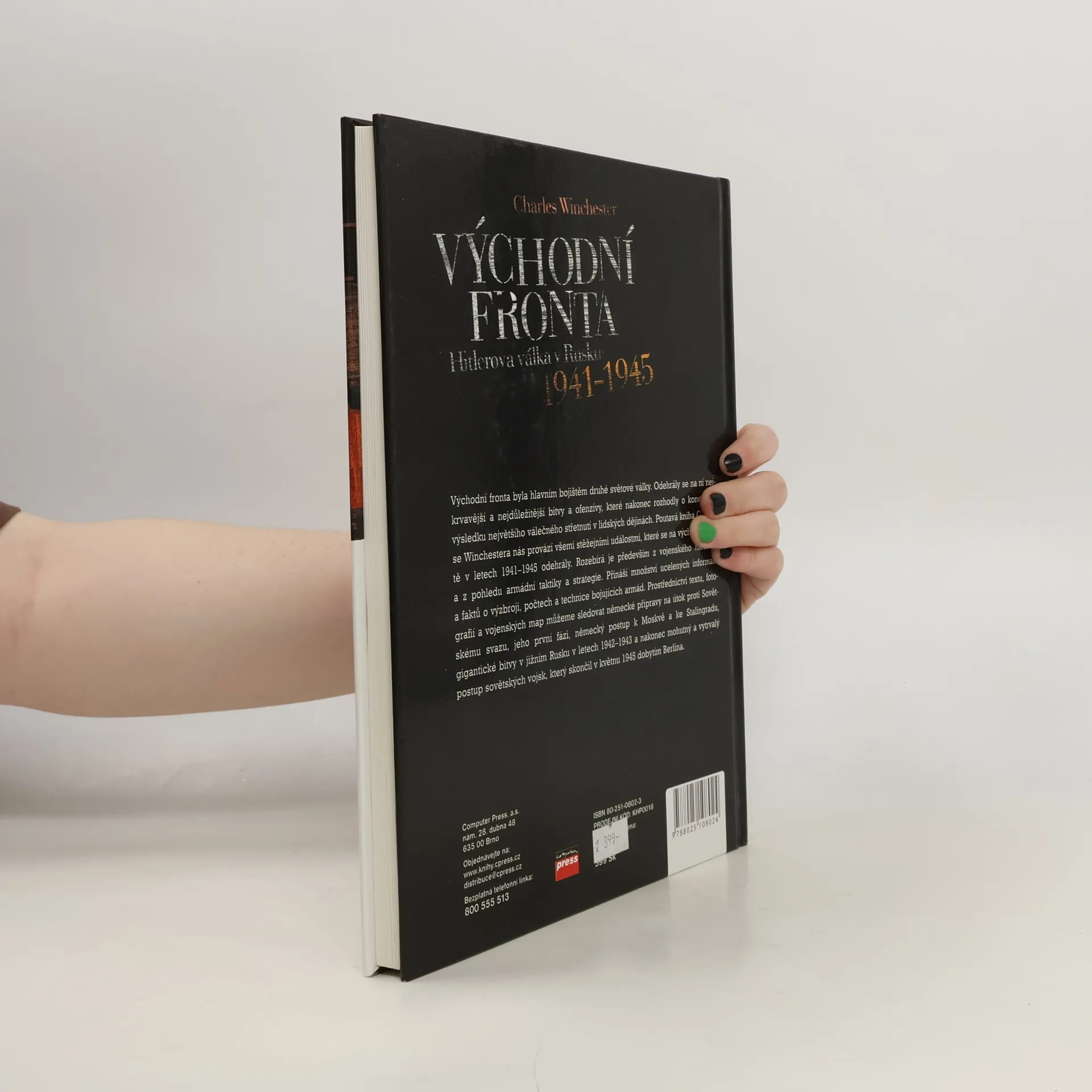 Východní fronta byl hlavním bojištěm druhé světové války. Odehrály se na ní nejkrvavější a nejdůležitější bitvy a ofenzívy, které nakonec rozhodly o konečném výsledku největšího válečného střetnutí v lidských dějinách. Poutavá kniha Charlese Winchestera nás provází všemi stěžejními událostmi, které se na východní frontě v letech 1941-45 odehrály. Rozebírá je především z vojenského hlediska a z pohledu armádní taktiky a strategie. Přináší množství ucelených informací a faktů o výzbroji, počtech a technice bojujících armád. Prostřednictví textu, fotografií a vojenských map můžeme sledovat německé přípravy na útok proti Sovětskému svazu, jeho první fázi, německý postup k Moskvě a ke Stalingradu, gigantické bitvy v jižním Rusku v letech 1942-43 a nakonec mohutný a vytrvalý postup sovětských vojsk, který skončil v květnu 1945 dobytím Berlína.