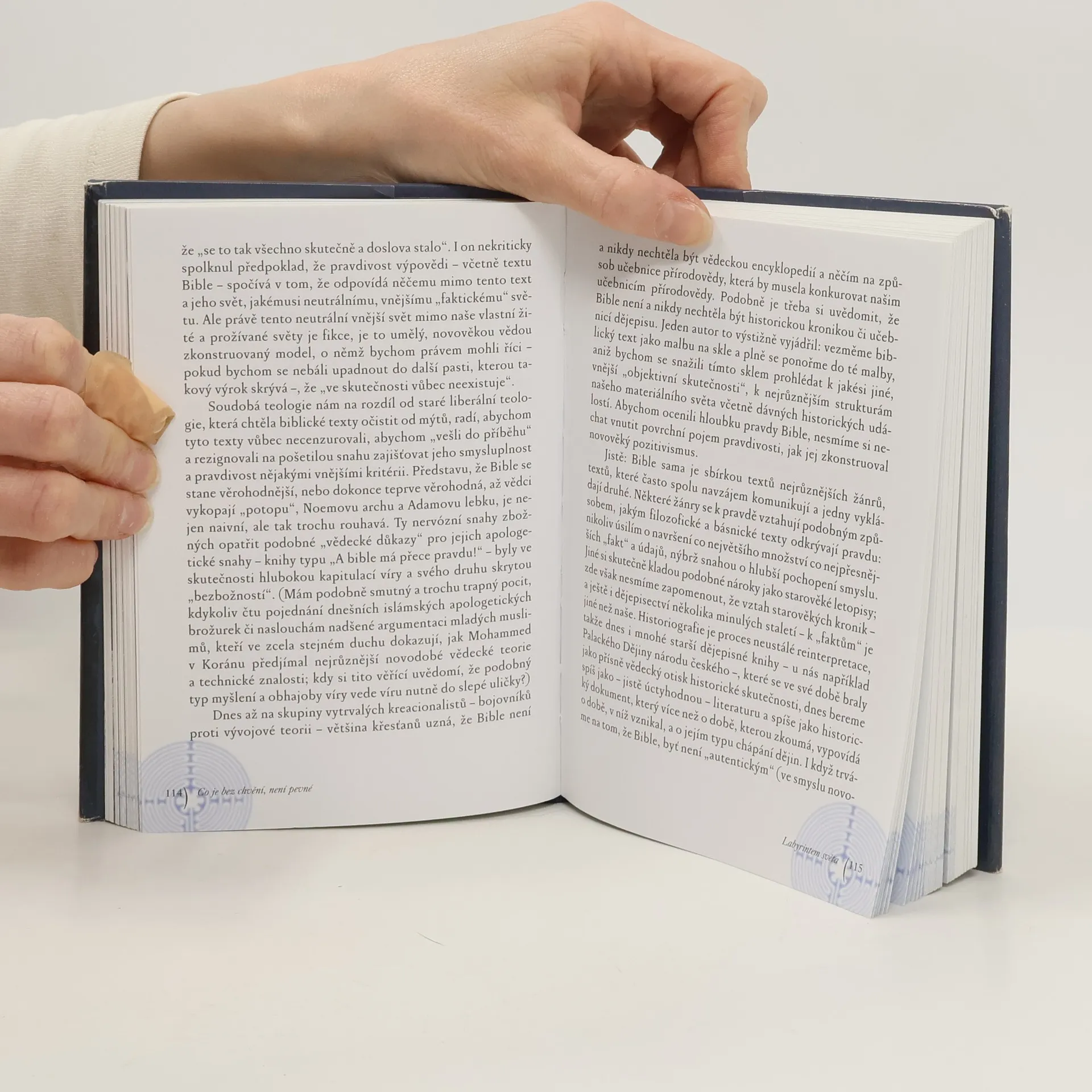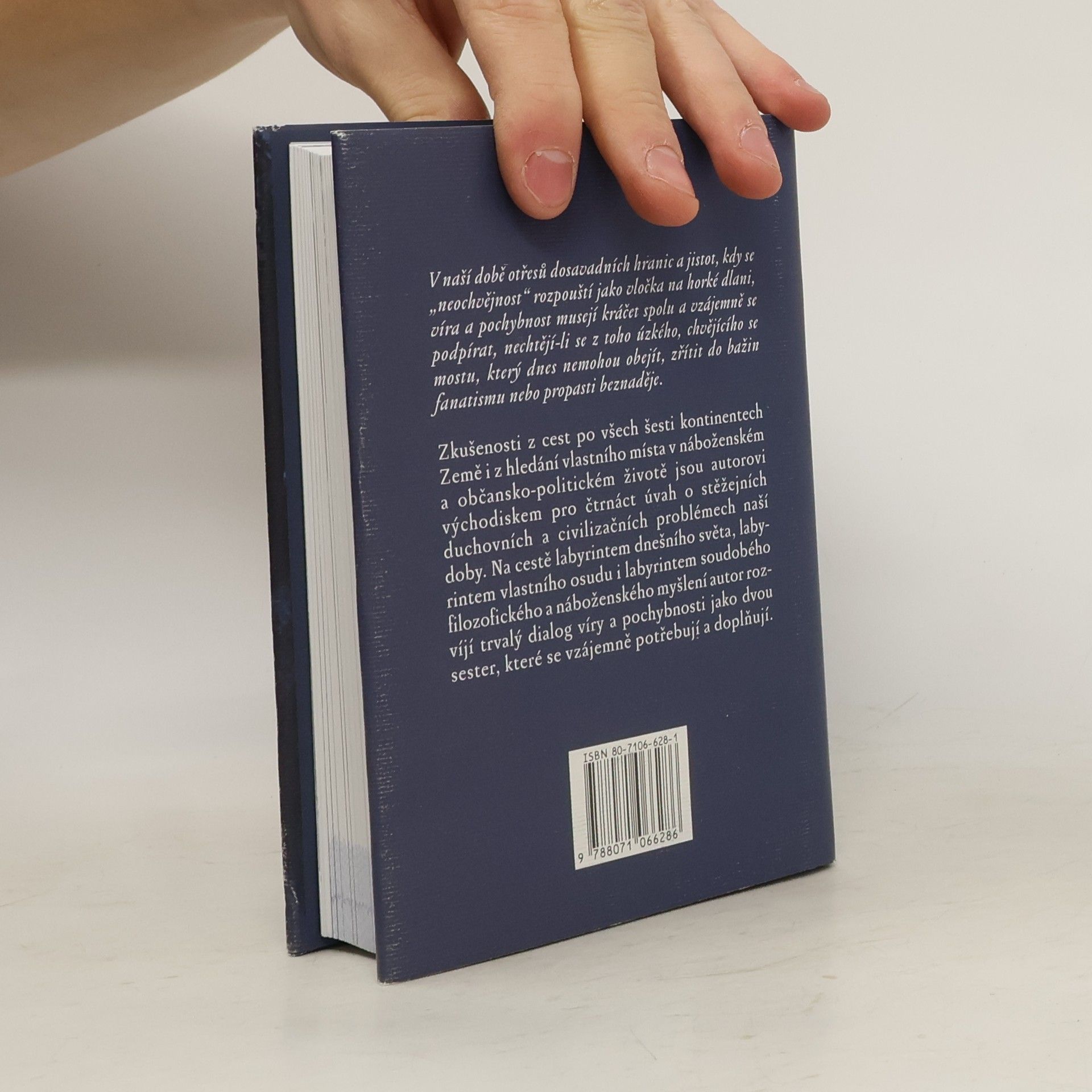 Zkušenosti z cest po všech šesti kontinentech Země i z hledání vlastního místa v náboženském a občansko-politickém životě jsou autorovi východiskem pro čtrnáct úvah o stěžejních duchovních a civilizačních problémech naší doby. Na cestě labyrintem dnešního světa, labyrintem vlastního osudu i labyrintem soudobého filozofického a náboženského myšlení autor rozvíjí trvalý dialog víry a pochybnosti jako dvou sester, které se vzájemně potřebují a doplňují.