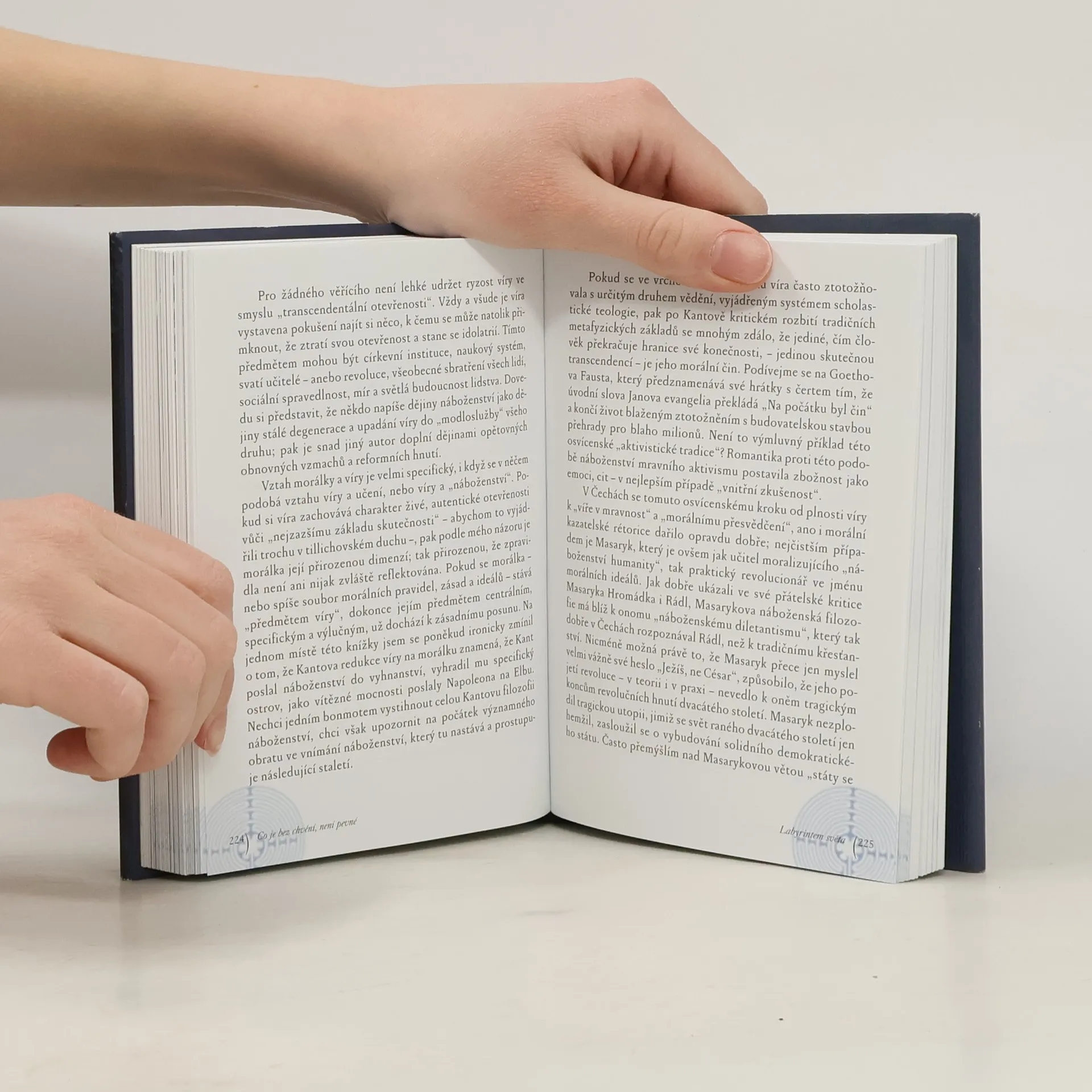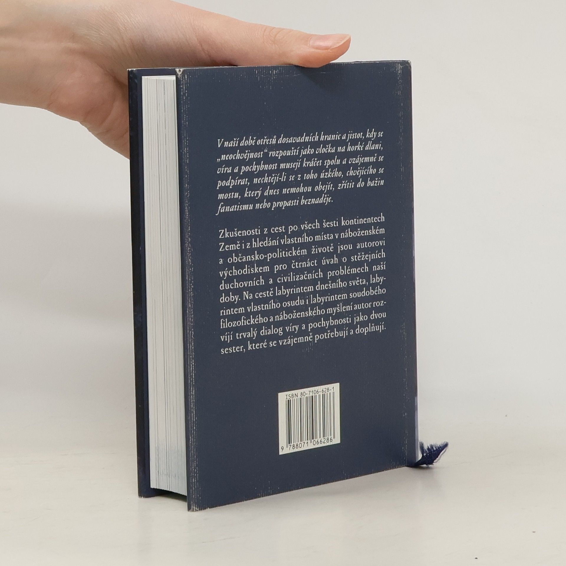 Zkušenosti z cest po všech šesti kontinentech Země i z hledání vlastního místa v náboženském a občansko-politickém životě jsou autorovi východiskem pro čtrnáct úvah o stěžejních duchovních a civilizačních problémech naší doby. Na cestě labyrintem dnešního světa, labyrintem vlastního osudu i labyrintem soudobého filozofického a náboženského myšlení autor rozvíjí trvalý dialog víry a pochybnosti jako dvou sester, které se vzájemně potřebují a doplňují.