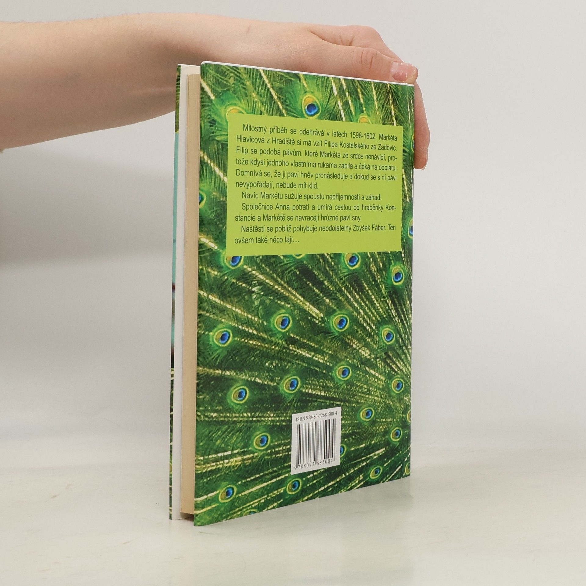 Milostný příběh se odehrává v letech 1598-1602. Markéta Hlavicová z Hradiště si má vzít Filipa Kostelského ze Zadovic. Filip se podobá pávům, které Markéta ze srdce nenávidí, protože kdysi jednoho vlastníma rukama zabila a čeká na odplatu. Domnívá se, že ji paví hněv pronásleduje a dokud se s ní pávi nevypořádají, nebude mít klid. Navíc Markétu sužuje spoustu nepříjemností a záhad. Společnice Anna potratí a umírá cestou od hraběnky Konstancie a Markétě se navracejí hrůzné paví sny. Naštěstí se poblíž pohybuje neodolatelný Zbyšek Fáber. Ten ovšem také něco tají....