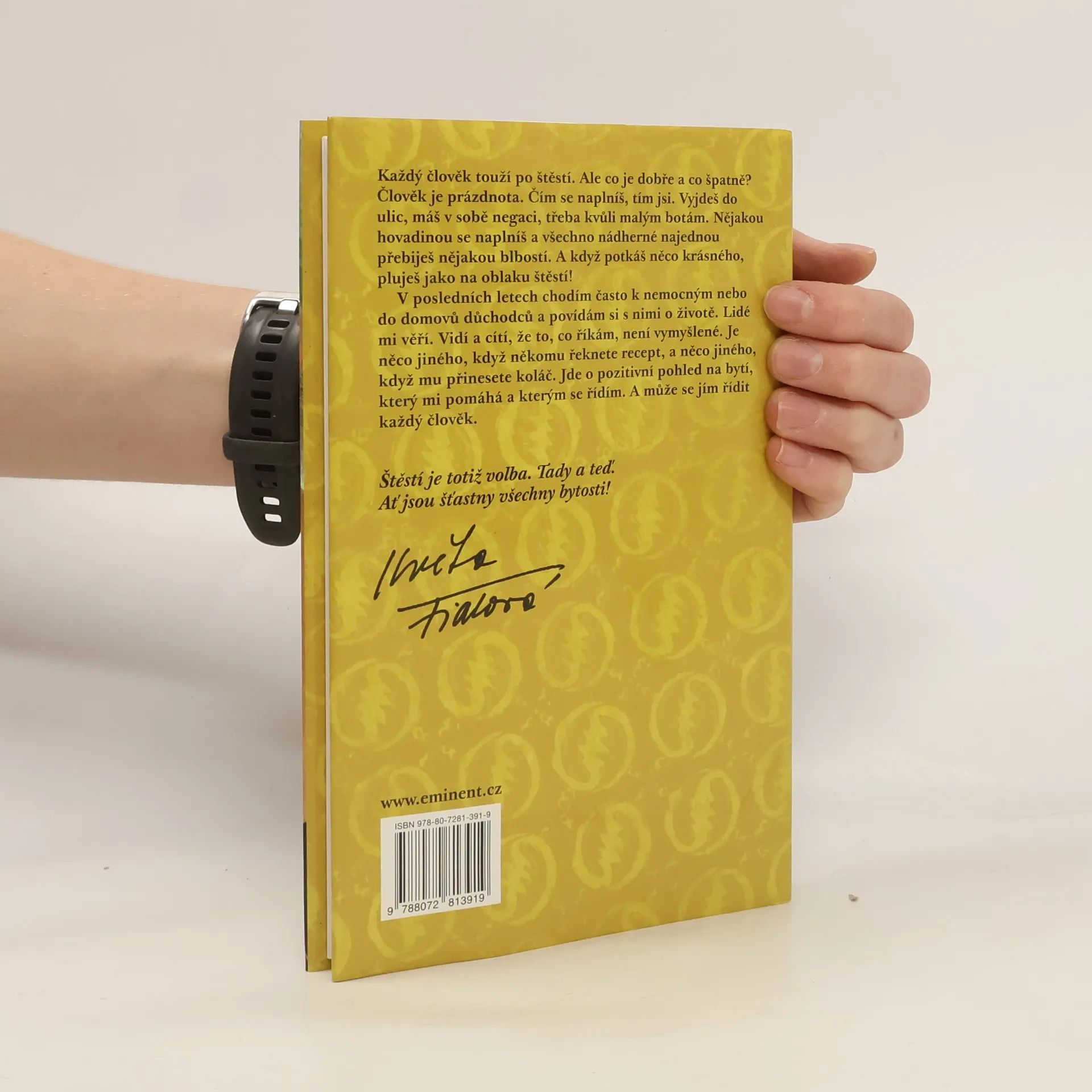 Každý člověk touží po štěstí. Ale co je dobré a co špatné? Člověk je prázdnota. Čím se naplníš, tím jsi. Vyjdeš do ulic, máš v sobě negaci, třeba kvůli malým botám. Nějakou hovadinou se naplníš a všechno nádherné najednou přebiješ nějakou blbostí. A když potkáš něco krásného, pluješ jako na oblaku štěstí! V posledních letech chodím často k nemocným nebo do domovů důchodců a povídám si s nimi o životě. Lidé mi věří. Vidí a cítí, že to, co říkám, není vymyšlené. Je něco jiného, když někomu řeknete recept, a něco jiného, když mu přinesete koláč. Jde o pozitivní pohled na bytí, který mi pomáhá a kterým se řídím. A může se jím řídit každý člověk. Štěstí je totiž volba. Tady a teď. Ať jsou šťastny všechny bytosti! To přeje vám i sobě Květa Fialová. Kniha je doplněna horoskopem od Pavla Turnovského.