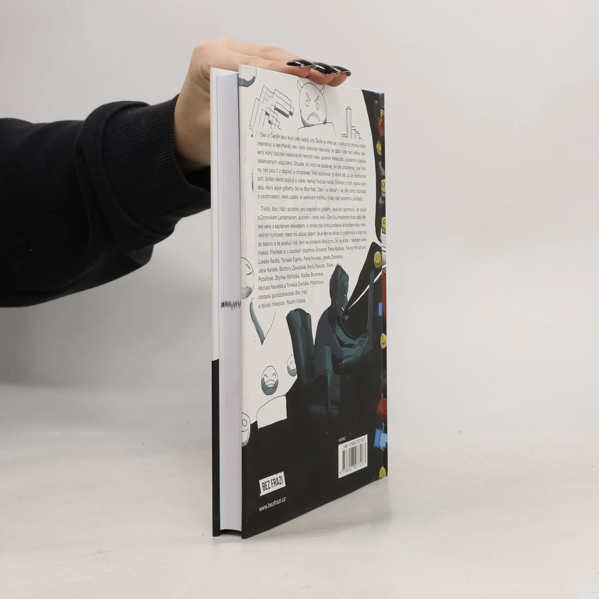 Příběhy Bez frází pro děti přinášejí osudy výjimečných českých sportovců, které vypráví oblíbený spisovatel Dominik Landsman tak, aby jim rozuměli i školáci. Hlavní postavy, Dan a Čeněk, jsou kluci, kteří se potýkají s nudou ve škole, a když je rodiče nevyhánějí ven, tráví čas sledováním herních videí a sněním o kariéře youtuberů. Čeněk se ale dozvídá o sportovcích, kteří se snaží uspět v reálném světě, a to mu pomáhá pochopit, že existují i jiní hrdinové než ti z obrazovek. Kniha, plná Landsmanova nekorektního humoru, ukazuje dětem, že je důležité občas se hýbat a usilovat o své sny. Bez frází spojilo síly s Dominikem Landsmanem a výsledkem je dílo, které motivuje k aktivnímu životnímu stylu. Formát „klasických“ Bez frází zahrnuje 210 stran, na kterých Dan a Čeněk řeší příběhy sportovců jako Vladimír Šmicera, Petr Korbel, Tereza Kmochová a další. Předmluvu napsal spoluzakladatel Bez frází Radim Vrbata. Kniha je určena pro děti, které se chtějí inspirovat úspěchy sportovců a naučit se, že tvrdá práce a odhodlání mohou vést k úspěchu.