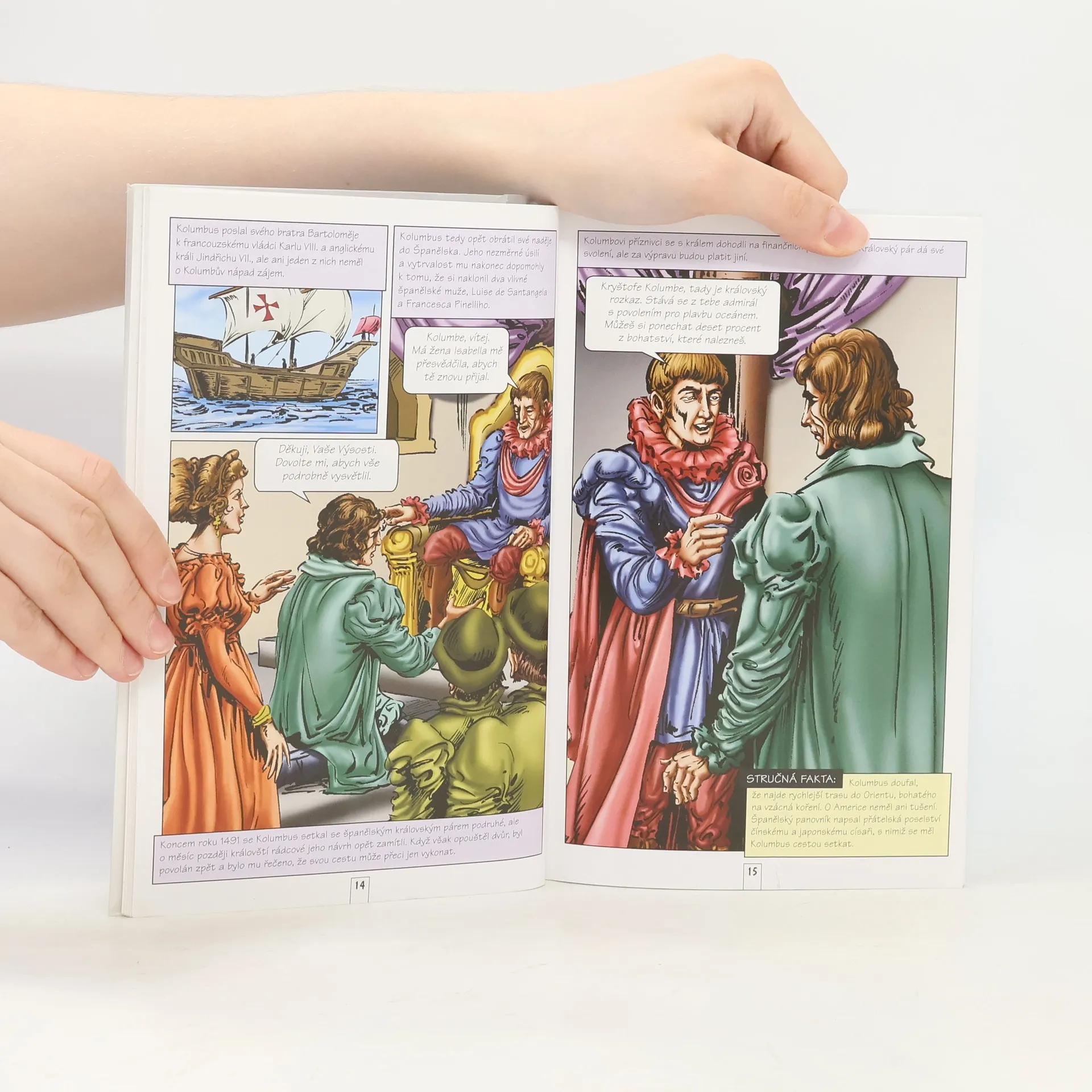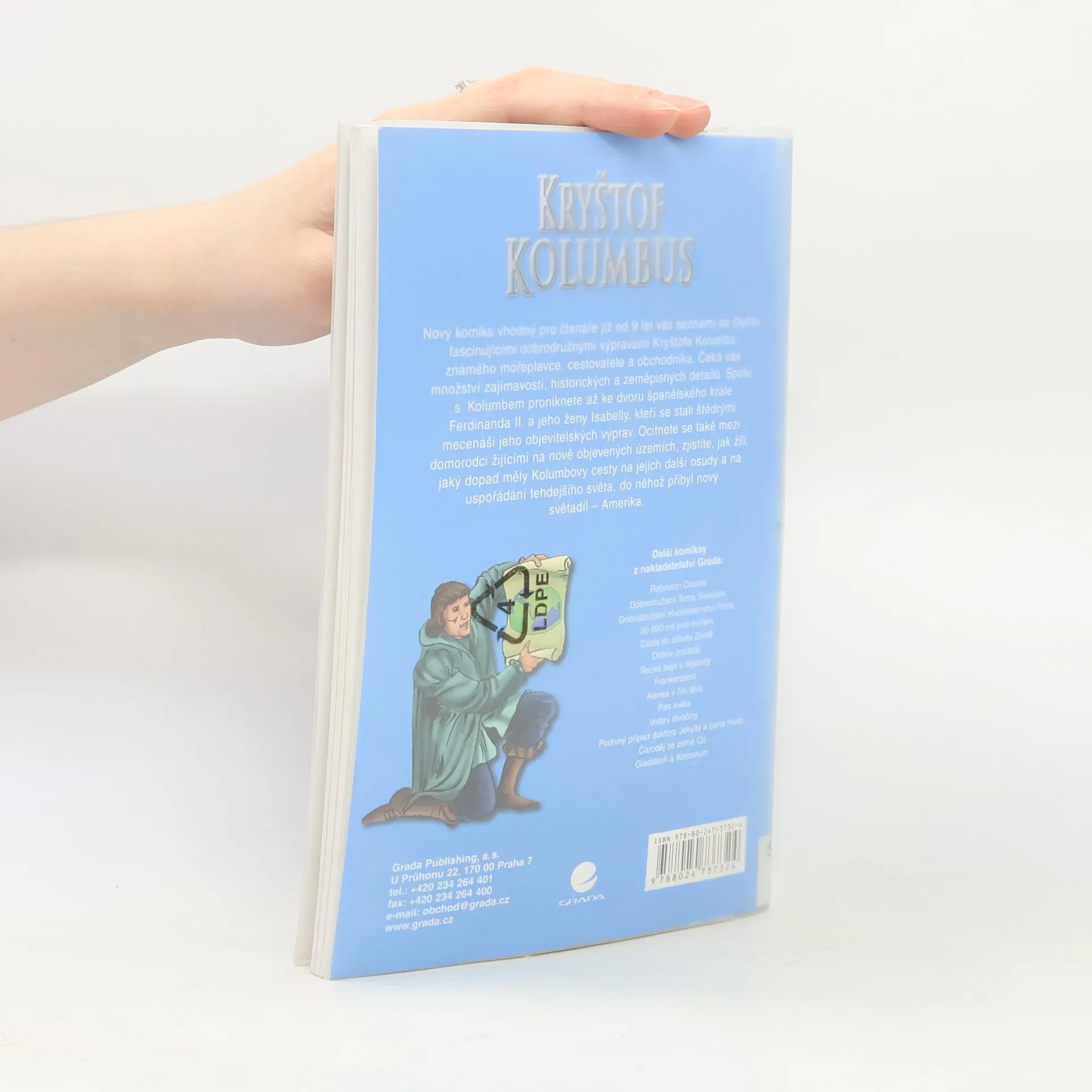 Nový komiks vhodný pro čtenáře již od 9 let vás seznámí se čtyřmi fascinujícími dobrodružnými výpravami Kryštofa Kolumba, známého mořeplavce, cestovatele a obchodníka. Čeká vás množství zajímavostí, historických a zeměpisných detailů. Spolu s Kolumbem proniknete až ke dvoru španělského krále Ferdinanda II. a jeho ženy Isabelly, kteří se stali štědrými mecenáši jeho objevitelských výprav. Ocitnete se také mezi domorodci žijícími na nově objevených územích, zjistíte, jak žili, jaký dopad měly Kolumbovy cesty na jejich další osudy a na uspořádání tehdejšího světa, do něhož přibyl nový světadíl - Amerika.