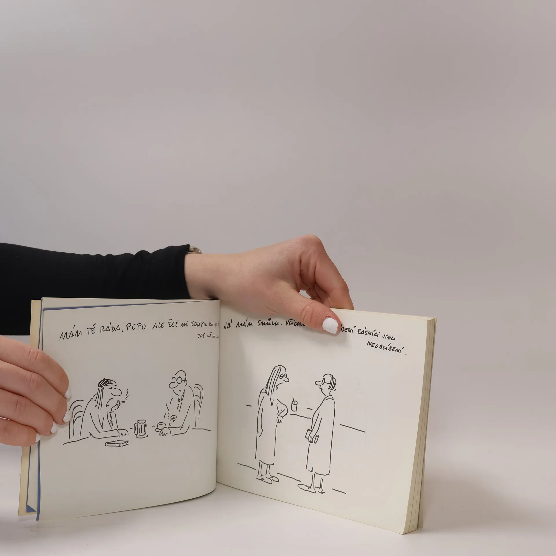 Kniha kreslených vtipů Vladimíra Jiránka, členěná do 3 tématických okruhů: 1) Literární kavárna 2) Velká společnost 3) Knížka pro snílky