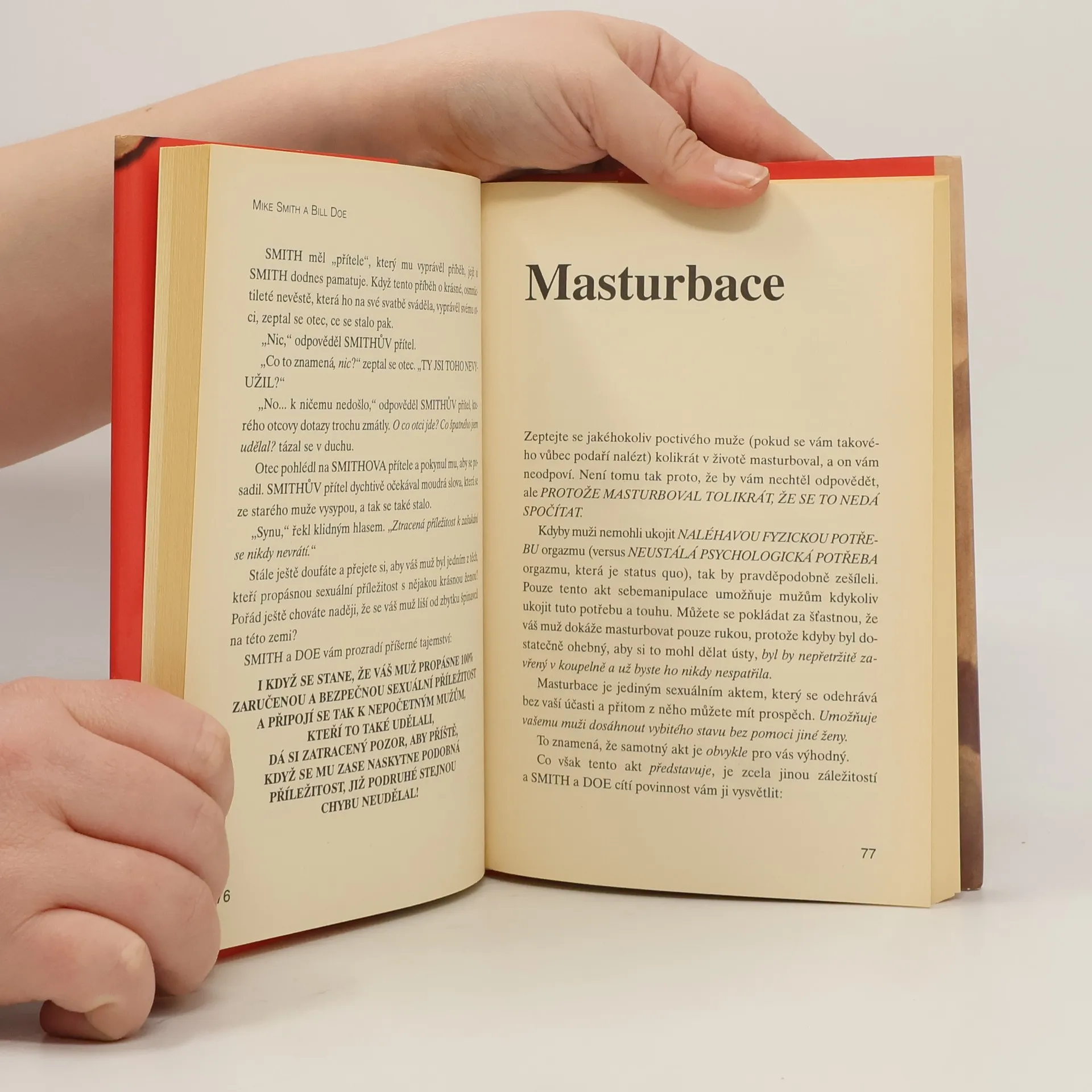 Jste-li žena, která se nechce dozvědět o mužích ve svém životě pravdu, pak tuto knihu okamžitě odložte. Ať vás ani nenapadne začít ji číst. Jestliže jste ale žena, která věří, že v poznání je síla a že varování předem je varování předem, pak jsou zde Smith a Doe, aby vám poprvé poskytli ničím nepřikrášlený, poctivý a nefalšovaný vhled do mysli zvířecího samce. Seznámíte se s jeho sexuální fantazií ( skutečnou ), tajnostmi , které si zachovává, a lžemi, které říká, když se jedná o sex, lásku a věrnost, a také s tím, co může a nemůže ženám ve svém životě poskytnout. Jak Smith a Doe odhalili : " Naše sexuální fantazie je vším, čím byste si přáli, aby nebyla. Naše nejhlubší touhy jsou temnější, než vaše nejtemnější obavy. Naše vlhké sny jsou vašimi nejhoršími nočními můrami." Toto je kniha, o které si muži mYslí, že by ji ženy vůbec neměly dostat do ruky.
