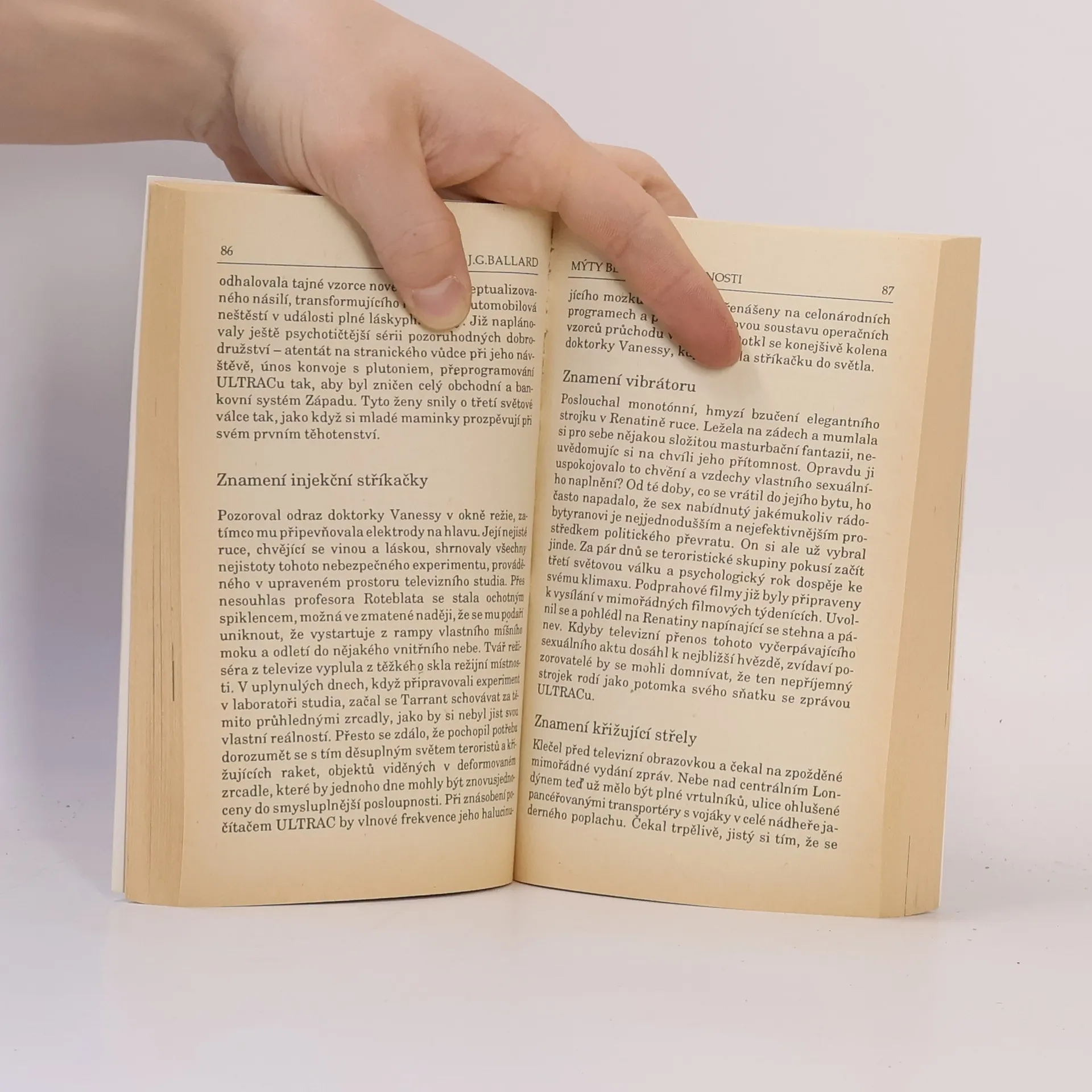 Sci-fi povídky zkoumá duševní a fyzický rozklad člověka v technologií ovládané společnosti. Mýty blízké budoucnosti (1982) jsou druhým českým překladem J. G. Ballarda, po Říši slunce (1984). James Graham Ballard, narozený v roce 1930 v Šanghaji, vzpomíná na bizarní život britské komunity, kde jeho otec pracoval. První knihu napsal v jedenácti letech, inspirován hrou bridž. Po třech letech v japonském internačním táboře se vrátil do Anglie, kde mu život připadal nudný. Po neúspěšných studiích medicíny a angličtiny se začal věnovat experimentální próze a později prodeji encyklopedií. Po výcviku v královském letectvu objevil science fiction, která přehodnotila jeho pohled na literaturu. Po návratu do Británie se oženil a začal publikovat povídky, přičemž první byla přijata v roce 1956. Tragédie ztráty manželky a péče o děti ho přivedla k plnému věnování se psaní. Ballardova spolupráce s časopisem Ambit a jeho experimenty s literárními formami ukazují jeho inovativní přístup. Věří, že science fiction je autentická literatura dvacátého století, reagující na transformaci vědy a techniky, a že současnost je pro spisovatele obdobím největší morální naléhavosti. Jeho výroky o literatuře odrážejí jeho skepticismus a kritický pohled na lidskou existenci.