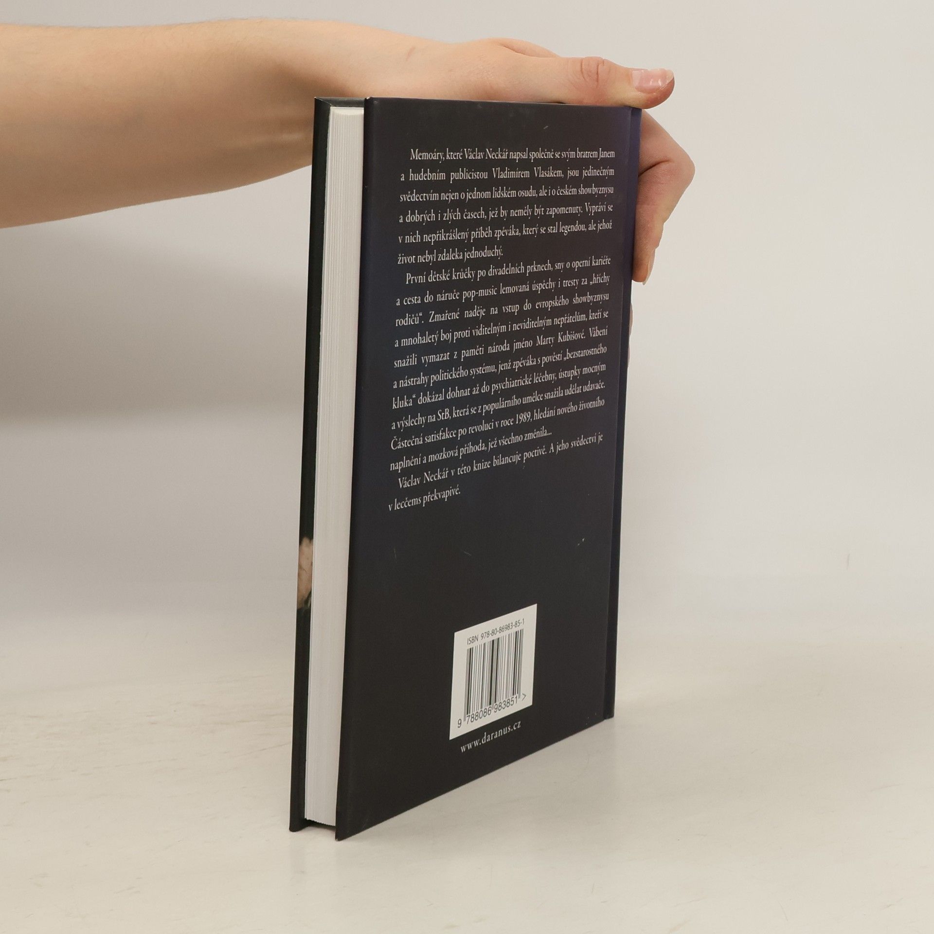 Václav Neckář není jen legenda české pop-music, ale také muž s nebezpečnou, takřka rainmanovskou pamětí. Uchovává v hlavě neuvěřitelné množství dat, jmen, telefonních čísel, a především událostí, které vždy dokázal komentovat s brilancí vypravěče dumasovského ražení. V roce 2002 prodělal mozkovou příhodu, jež naštěstí všechna ta data, jména a události nevymazala, jen je uzamkla ve Václavově mozku jako v černé skříňce. Když se pokoušel vyprávět, těžce hledal slova, artikulovat myšlenky mu občas pomáhal bratr Jan. A tehdy přišel nápad napsat tuhle knížku. Vznikala několik let. Během nich se hudební publicista Vladimír Vlasák setkával s Václavem i jeho bratrem Janem, naslouchal jejich vyprávění a zároveň pátral v archivech. Výsledkem jsou jedinečné memoáry, v nichž je zpěvákův pohled na sebe sama konfrontován s hlasy té které doby a lidí, kteří ho během kariéry provázeli. Je to unikátní svědectví nejen o jednom lidském osudu, ale i o českém showbyznysu a dobrých i zlých časech, jež by neměly být zapomenuty. Kniha je doprovozena bohatou fotografickou výbavou.