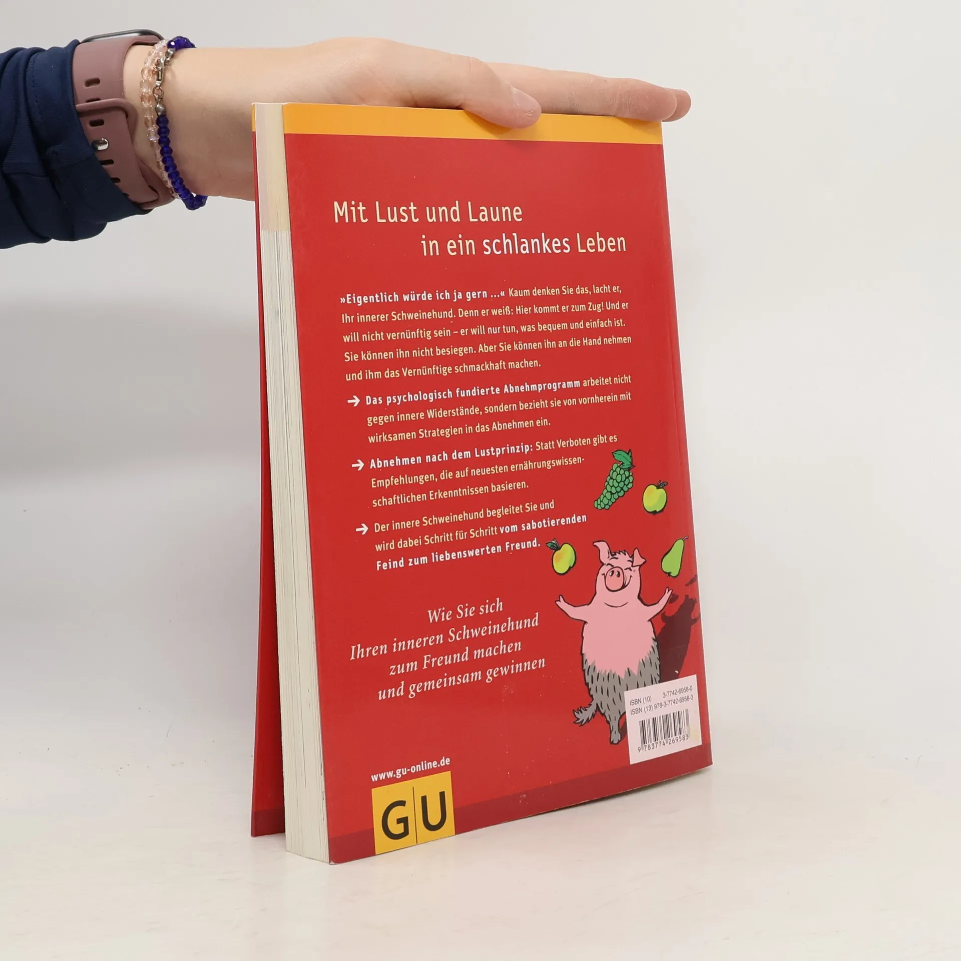 Abnehmen ist für viele Menschen ein ständig aktuelles Thema. Aber wie oft sie auch versuchen, dieses Problem in den Griff zu bekommen: der „innere Schweinehund“ lässt alles scheitern.Dieser GU-Ratgeber bietet ein psychologisch fundiertes Abnehmprogramm, das nicht gegen innere Widerstände arbeitet, sondern sie von vornherein berücksichtigt, ernst nimmt und mit wirksamen Strategien in das Abnehm-Programm einbezieht. Zahlreiche ratgeberische Elemente - wie Tests und Checklisten unterstützen die erfolgreiche Umsetzung des neuen Lebensstils. Das Abnehmen funktioniert nach dem Lustprinzip: Statt Verboten gibt es Empfehlungen und wirksame Strategien - bis das gesunde Leben schließlich nicht nur dem Menschen, sondern auch seinem inneren Schweinehund richtig Spaß macht. Der „innere Schweinehund“ begleitet den Leser durch alle Phasen der Veränderung und - in Wort und Bild - durch sämtliche Kapitel.