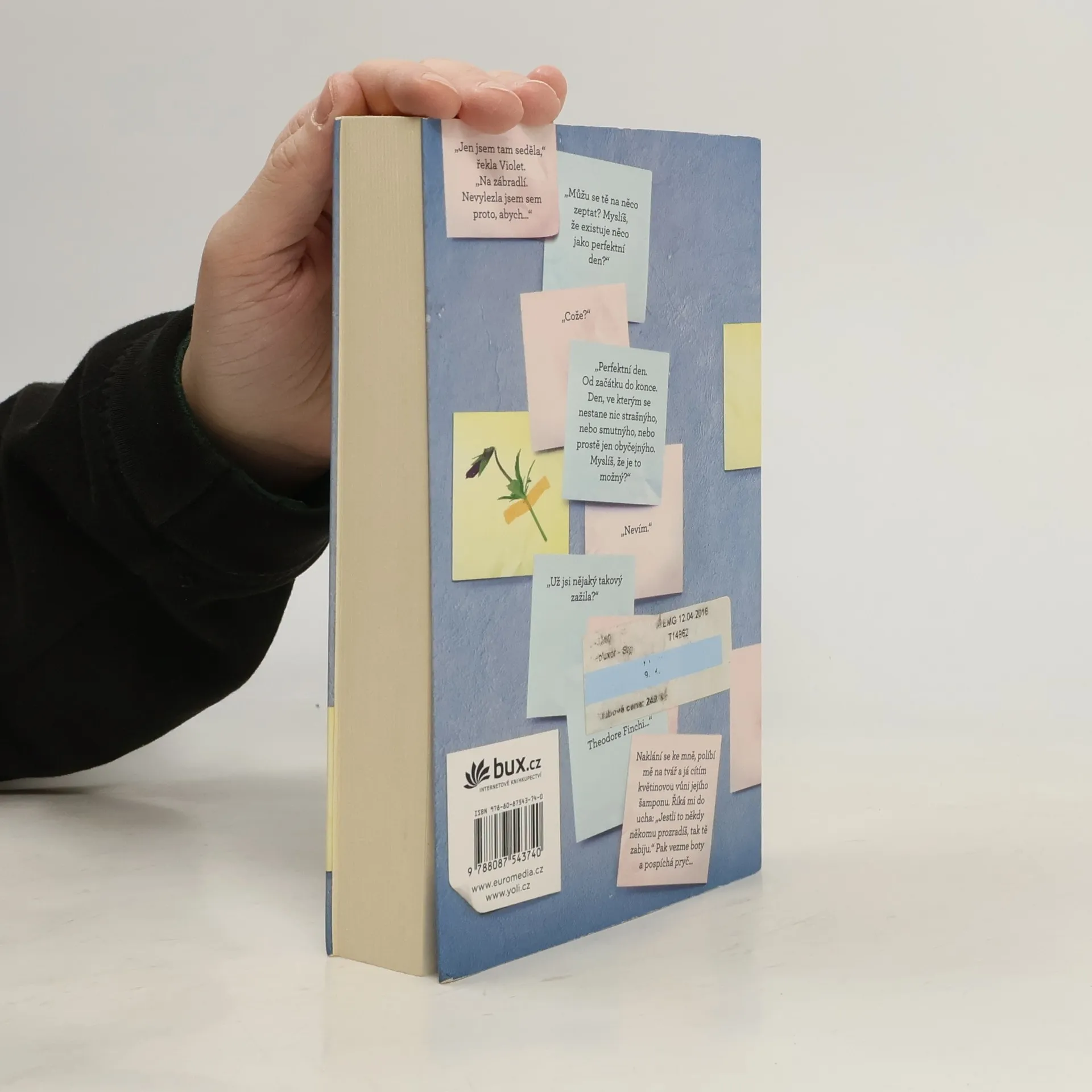 Strhující příběh o hledání a (ne)nalézání, o lidských předsudcích a první lásce. Theodora Finche fascinuje smrt. Violet Markeyová zase žije pro budoucnost – těší se na den, kdy dokončí střední školu a bude moct opustit rodné městečko, které jí připomíná nedávnou tragickou smrt sestry. Když se ti dva potkají na římse školní zvonice, není ale docela jasné, kdo koho vlastně bude zachraňovat. Finch je obyčejný kluk, až na to, že trpí bipolární poruchou. Violet je obyčejná holka, až na to, že Finchovi přijde úplně neobyčejná. Ty dva svede dohromady školní projekt, jehož cílem je objevovat „krásy Indiany“, a oba při tom učiní zajímavé objevy...