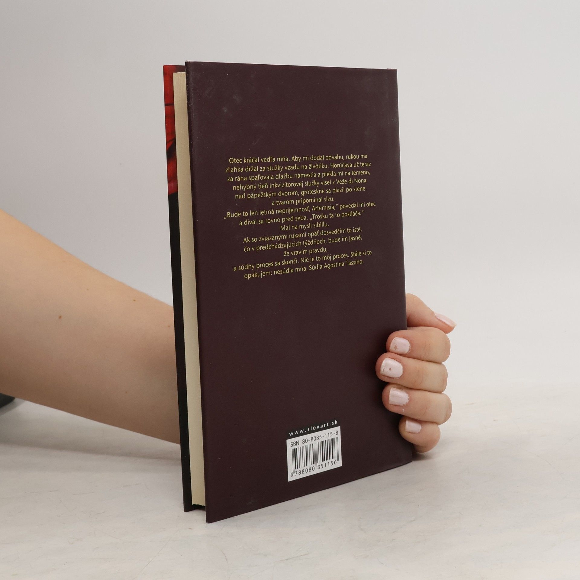 Rím, 14. mája 1612. V súdnej dvorane pápežského stolca sa začína proces s Agostinom Tossim, maliarom, ktorý znásilnil osemnásťročnú Artemisiu, dcéru maliara Orazia Gentileschiho. Cirkevní hodnostári však nie sú naklonení dať za pravdu žene v spore proti mužovi. Kniha je portrétom nezávislej ženy oslobodenej od konvencií doby a zároveň obrazom talianskej umeleckej spoločnosti 17. storočia. Artemisia Gentileschi ako jedna z mála žien dosiahla svojím umením úspech už za života a Susan Vreeland rovnako úspešne spracovala jej fascinujúcu cestu talentu, naplnenú úsilím a hľadaním pravd
