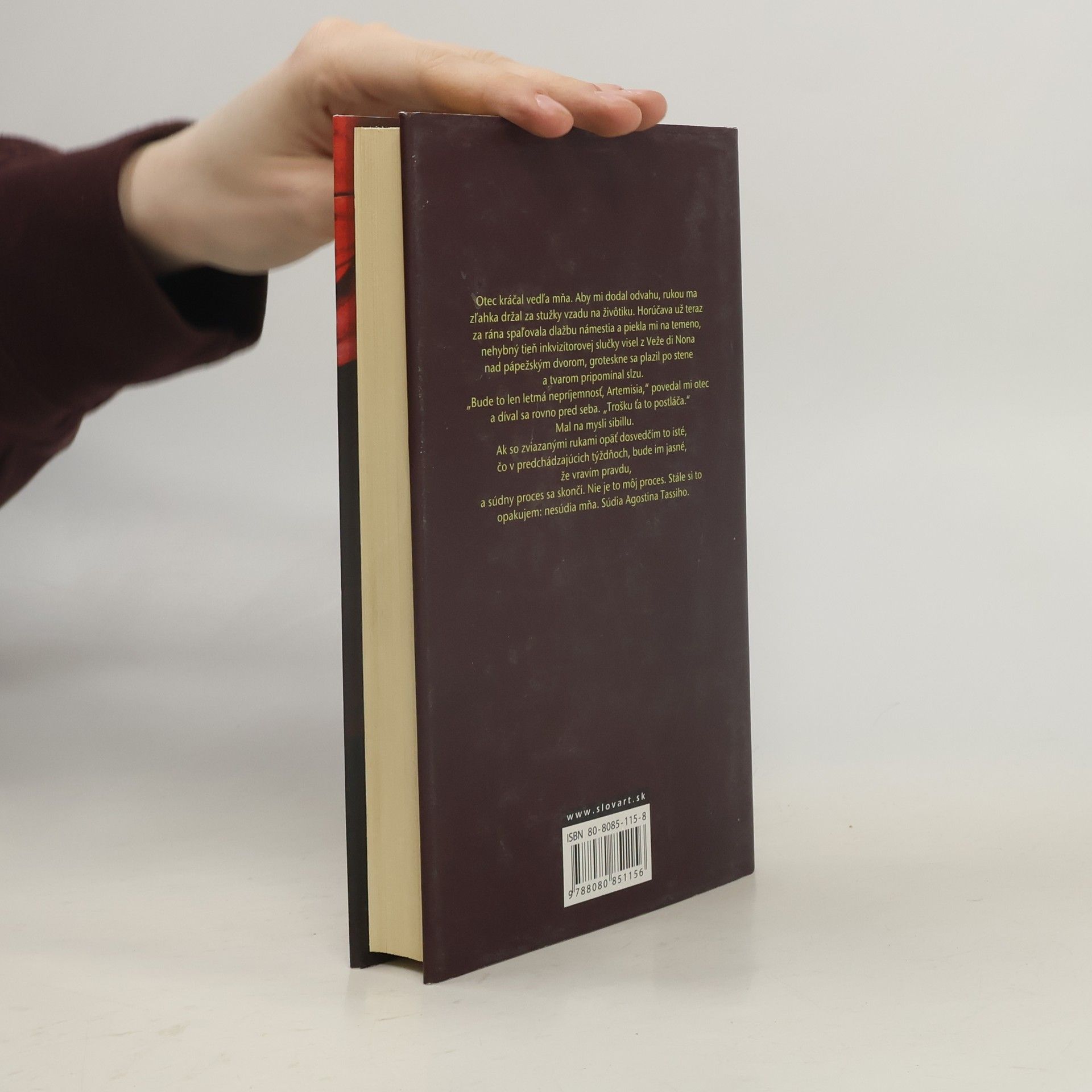 Rím, 14. mája 1612. V súdnej dvorane pápežského stolca sa začína proces s Agostinom Tossim, maliarom, ktorý znásilnil osemnásťročnú Artemisiu, dcéru maliara Orazia Gentileschiho. Cirkevní hodnostári však nie sú naklonení dať za pravdu žene v spore proti mužovi. Kniha je portrétom nezávislej ženy oslobodenej od konvencií doby a zároveň obrazom talianskej umeleckej spoločnosti 17. storočia. Artemisia Gentileschi ako jedna z mála žien dosiahla svojím umením úspech už za života a Susan Vreeland rovnako úspešne spracovala jej fascinujúcu cestu talentu, naplnenú úsilím a hľadaním pravd
