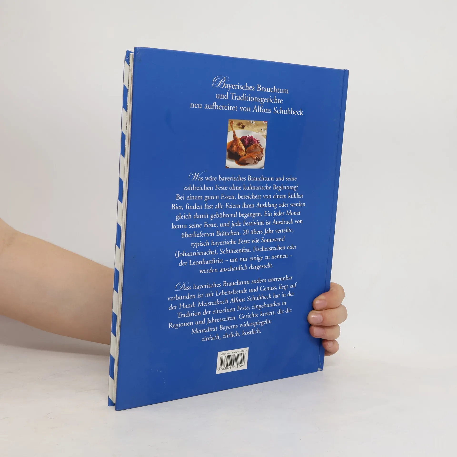 Tradition mit Sterneniveau Untrennbar verbunden mit dem bayerischen Brauchtum sind seine Festivitäten, die sich mit großer Feierfreude das gesamte Jahr hindurchziehen. Ein jeder Monat feiert seine Feste, und jedes davon ist Ausdruck von überlieferten Bräuchen. Dass bayerisches Brauchtum zudem untrennbar verbunden ist mit Lebensfreude und Genuss, liegt auf der Hand: Sternekoch Alfons Schuhbeck hat in der Tradition der Feste, eingebunden in Regionen und Jahreszeiten, Gerichte kreiert, die die Mentalität Bayerns eindrücklich widerspiegeln. • Ein einzigartiges Kochbuch des Sternekochs, berühmt durch hervorragende Küche, viele Auszeichnungen und Fernsehsendungen • Meisterkoch Alfons Schuhbeck ist es gelungen, bayerische Tradition und Kochkunst perfekt miteinander zu verbinden • Alfons Schuhbeck ist auch weit über die Grenzen Bayerns bekannt und vermittelt auf überzeugende Weise Lebensfreude und Genuß Alfons Schuhbeck und seine Auszeichnungen: 1 Michelin-Stern 18 Punkte von Gault Millau und 3 Hauben 2 Kochmützen von Varta 3 Kochlöffel vom Aral Schlemmer-Atlas 4 Feinschmecker-Punkte Serie »Schuhbecks« (früher »Genießen erlaubt) seit 1993 sonntags im Bayerischen Fernsehen Seit 1992 wöchentliche Sendung in Bayern 3 (Freitag und Sonntag) »Rezepte, Tipps und Tricks von Alfons Schuhbeck«